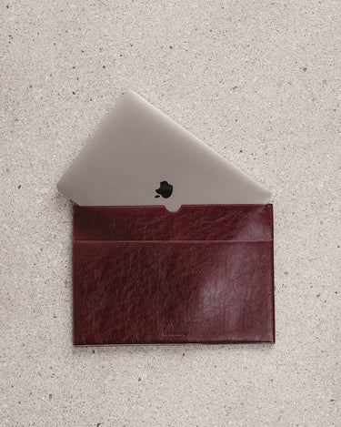 Crafted from crinkle patent vegan leather, this laptop sleeve is sleek, durable, and designed to protect your tech without compromising on style. Thoughtfully detailed with a central compartment that fits 16-inch laptops and two exterior sleeves for documents or essentials, Brooke Burgundy Patent keeps everything organised and within easy reach.