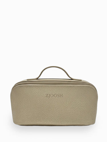 Organize your everyday essentials with a touch of elegance. This charming cosmetic bag, crafted from high-quality, textured vegan leather, brings a sophisticated yet relaxed feel to your daily routine.