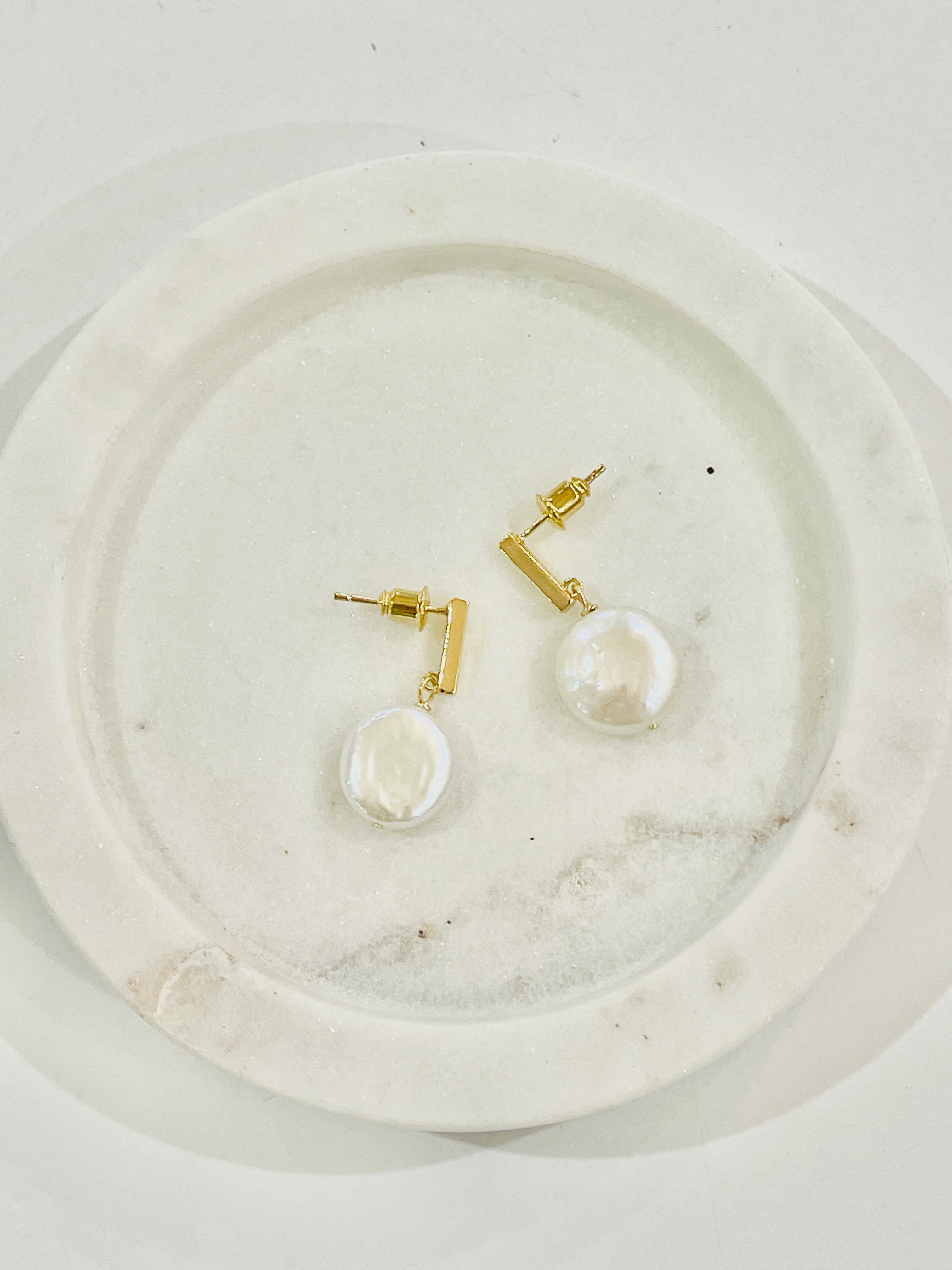 A flat disc genuine freshwater pearl set on a simple fine drop. A timeless classic you'll wear over and over again.
