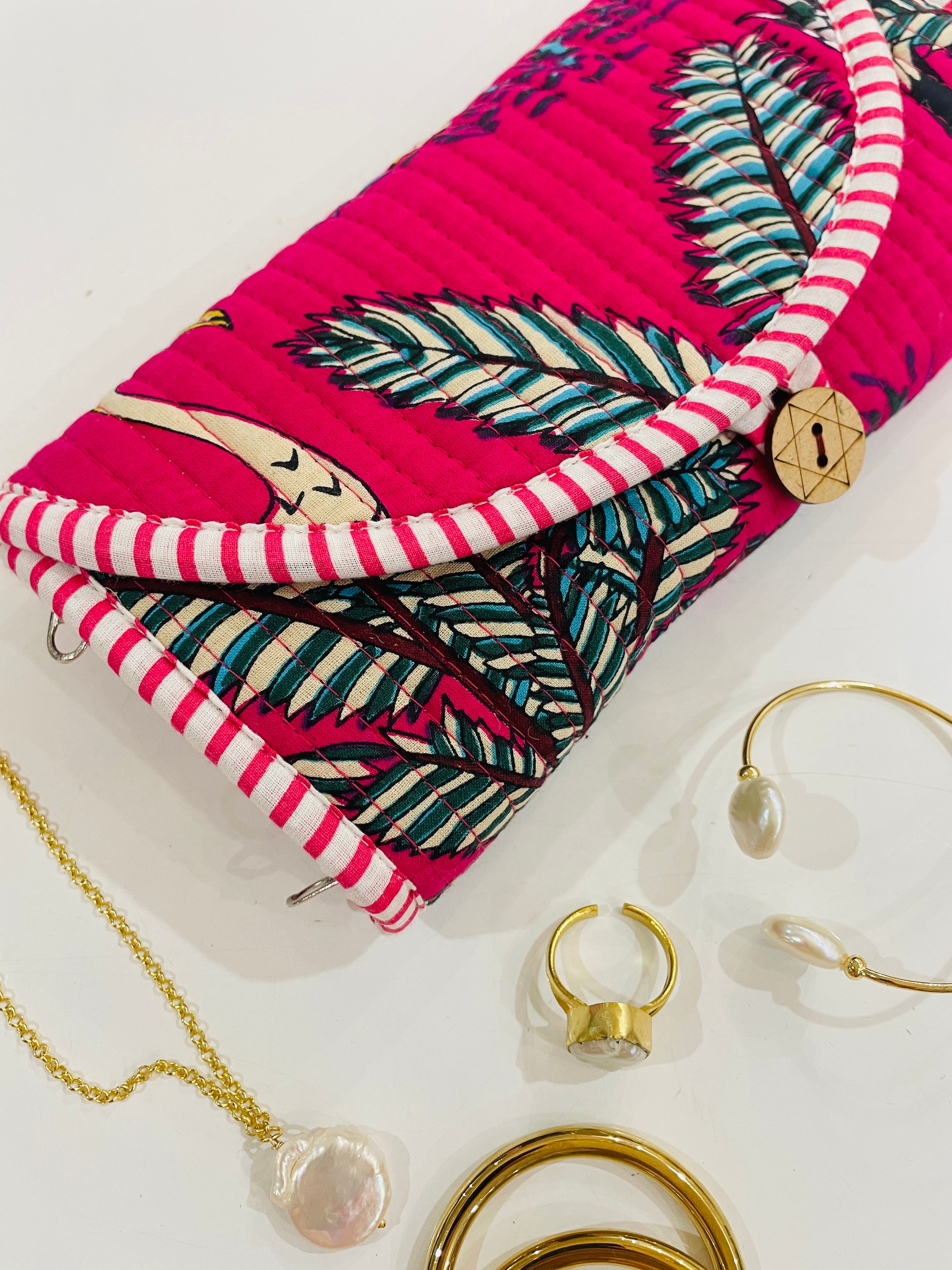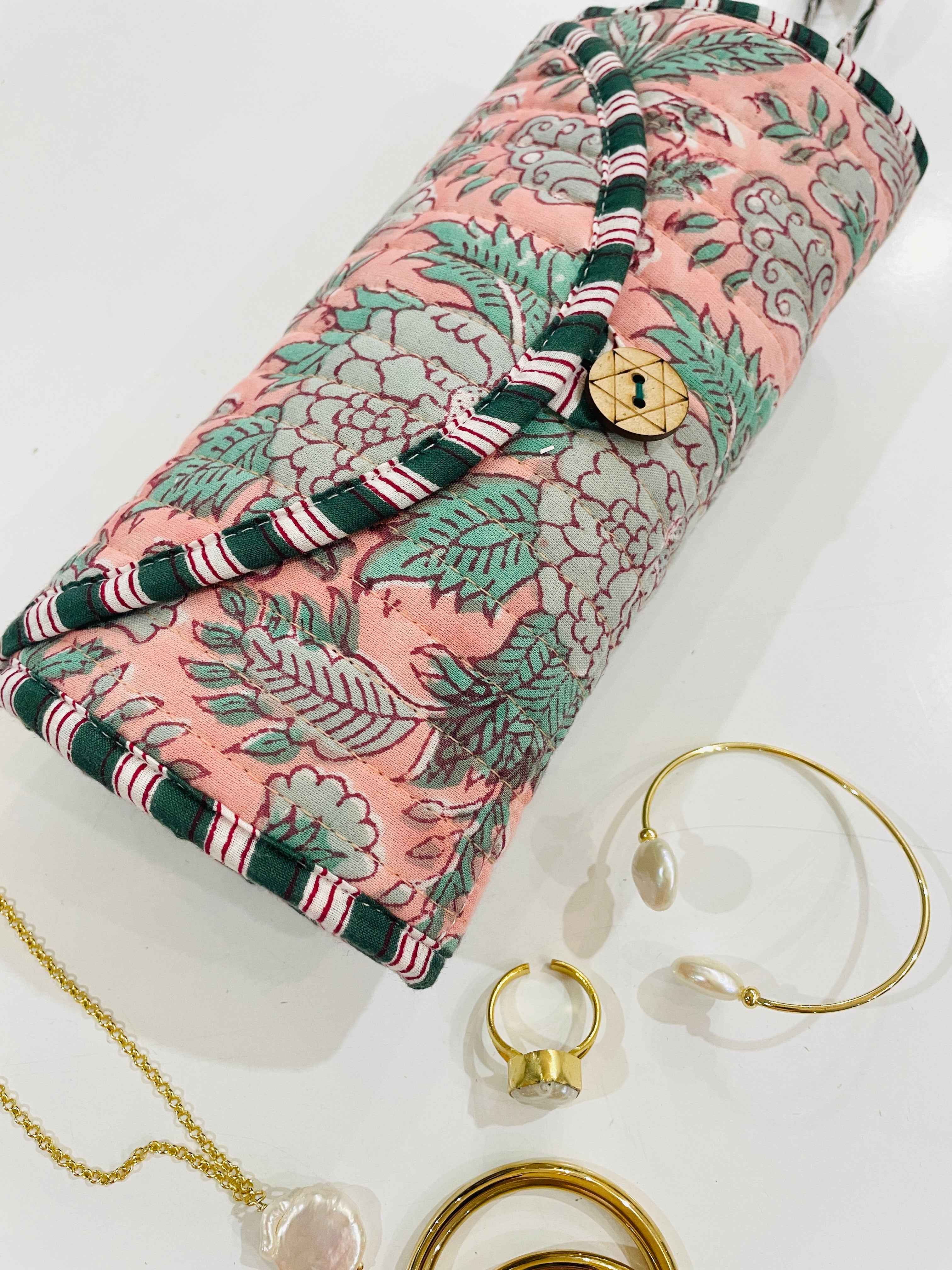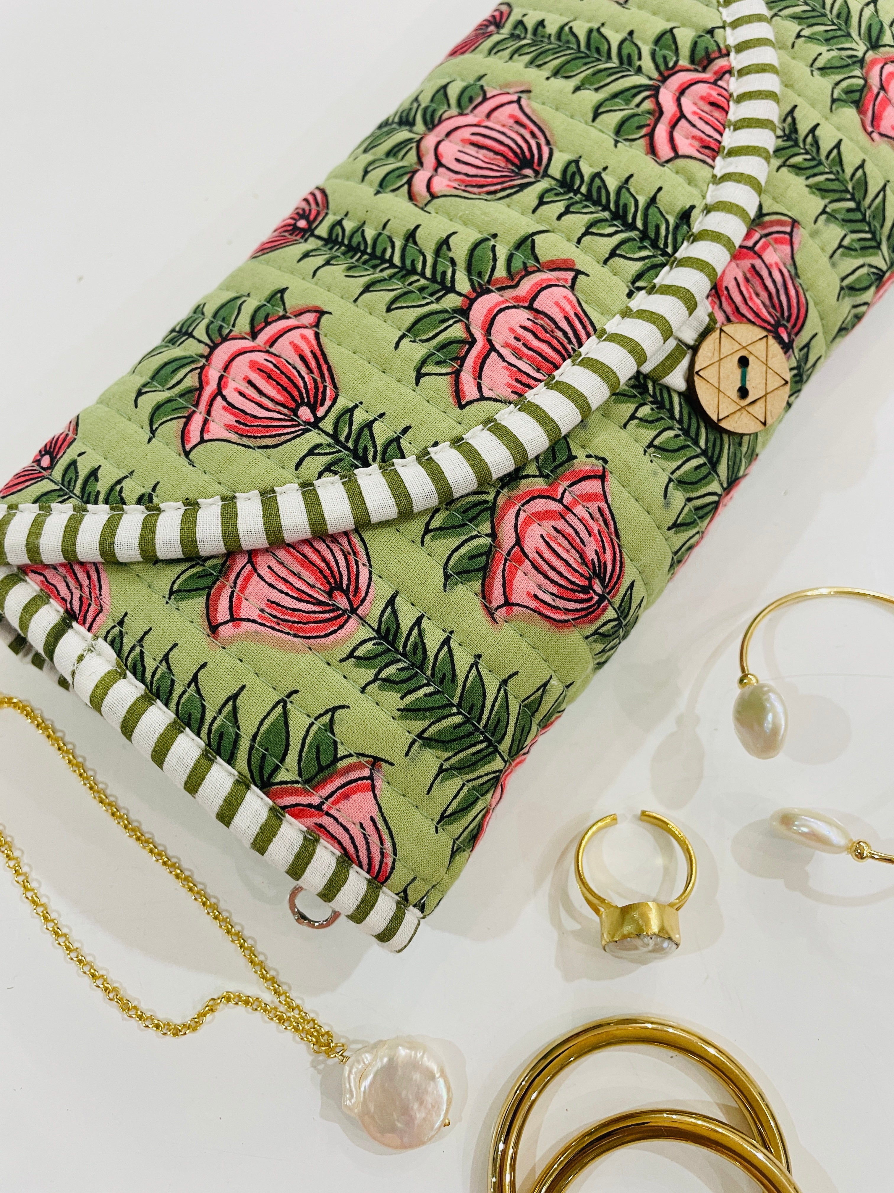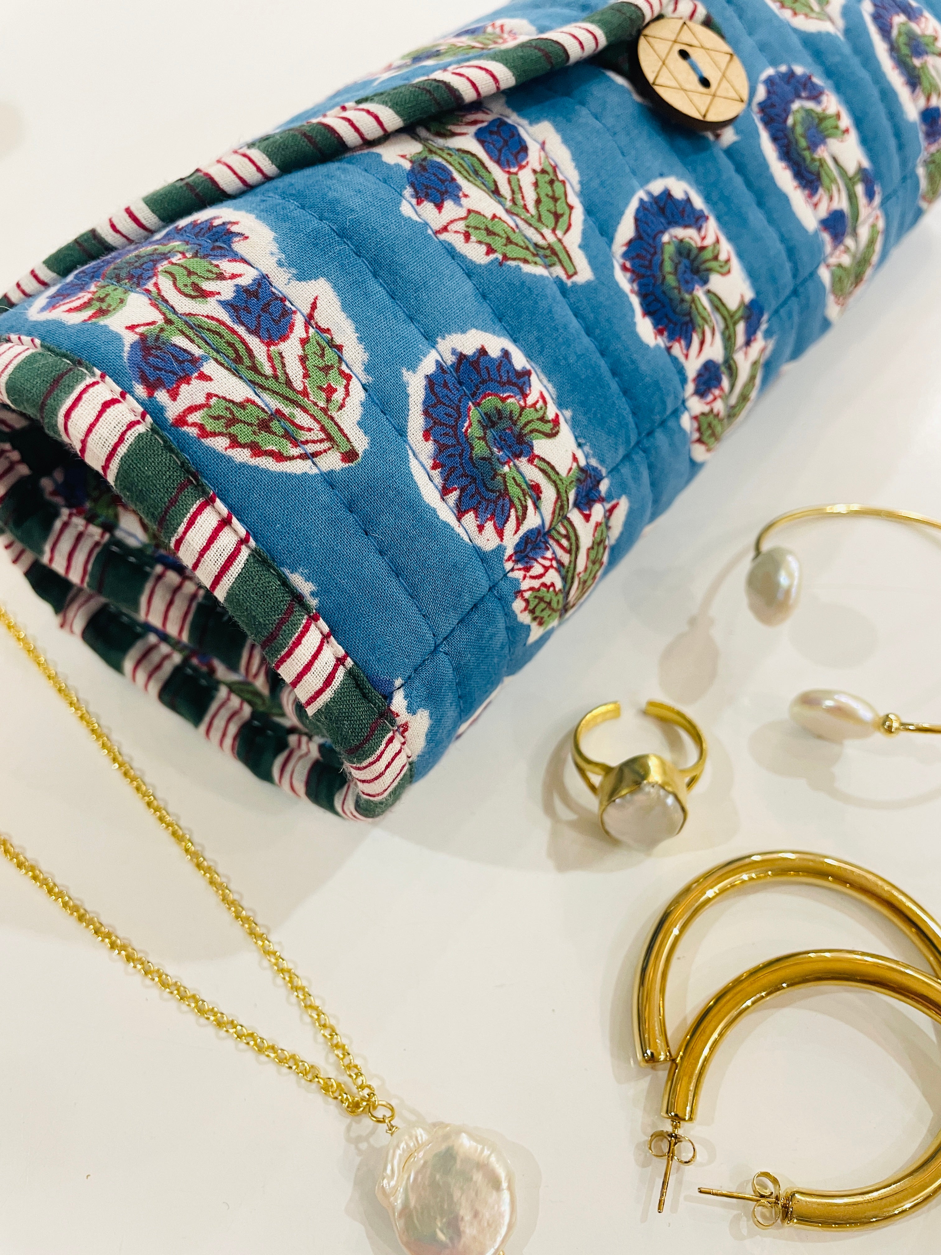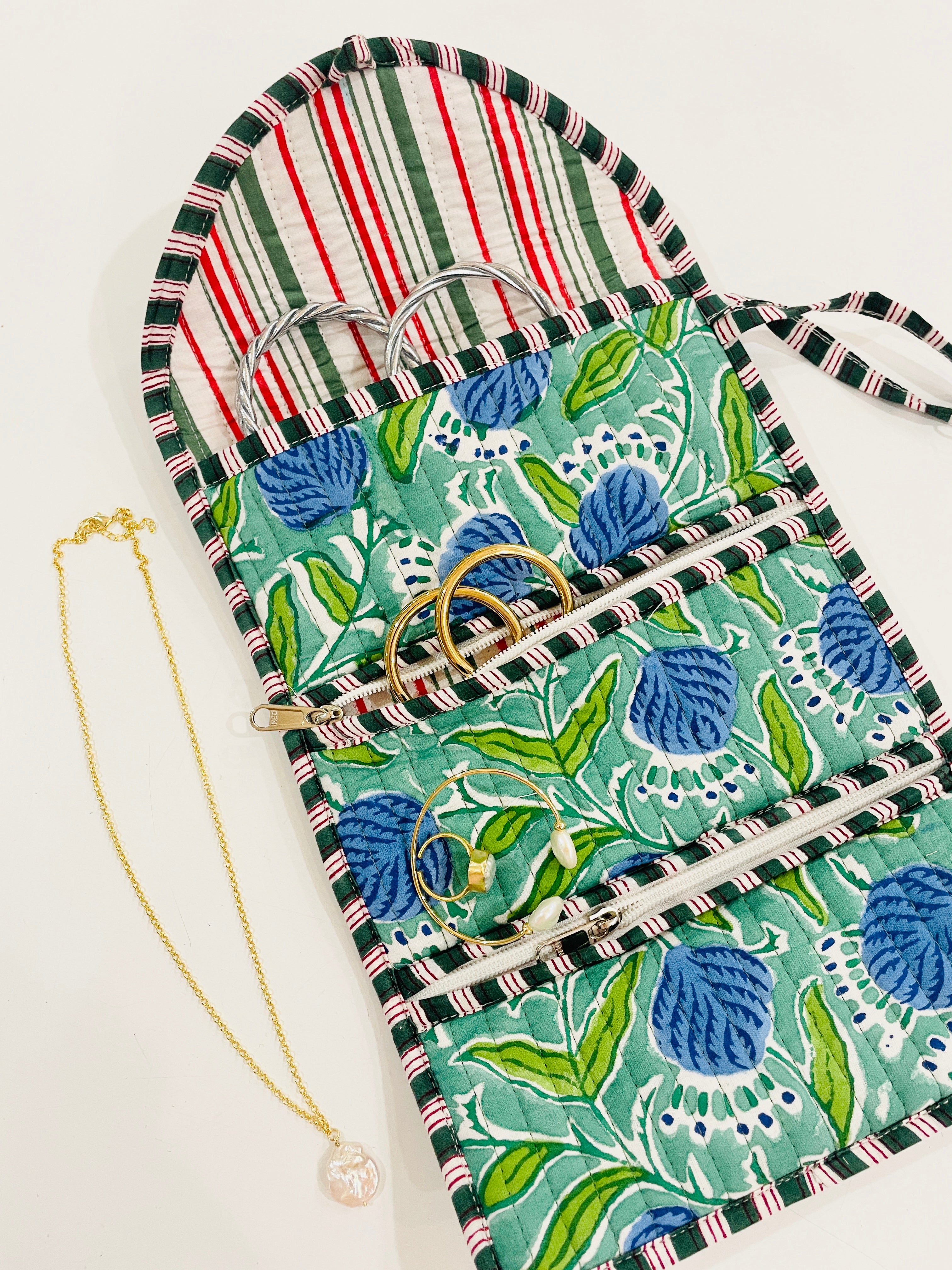Travel with all your favourite pieces securely tucked away in this protective jewellery roll.