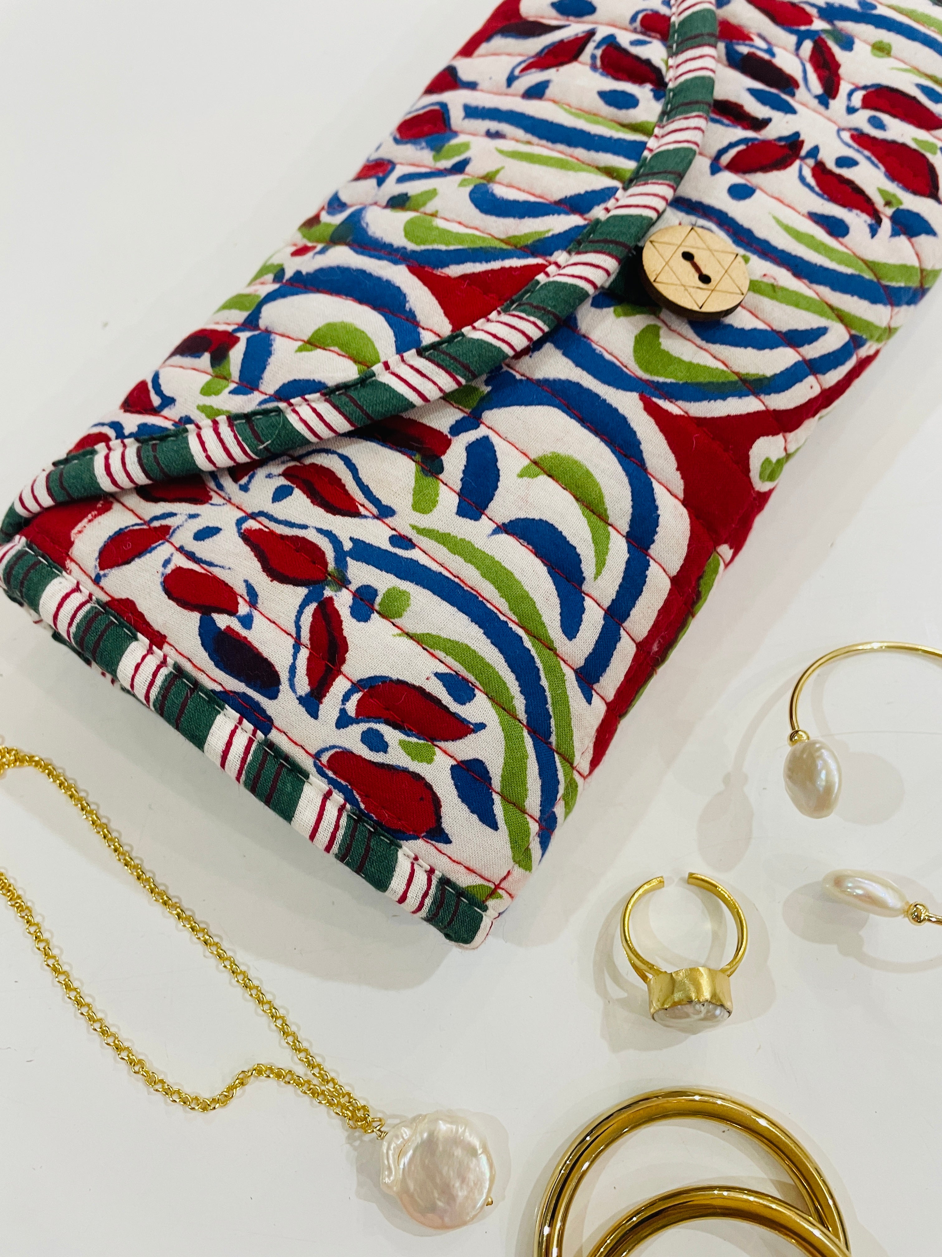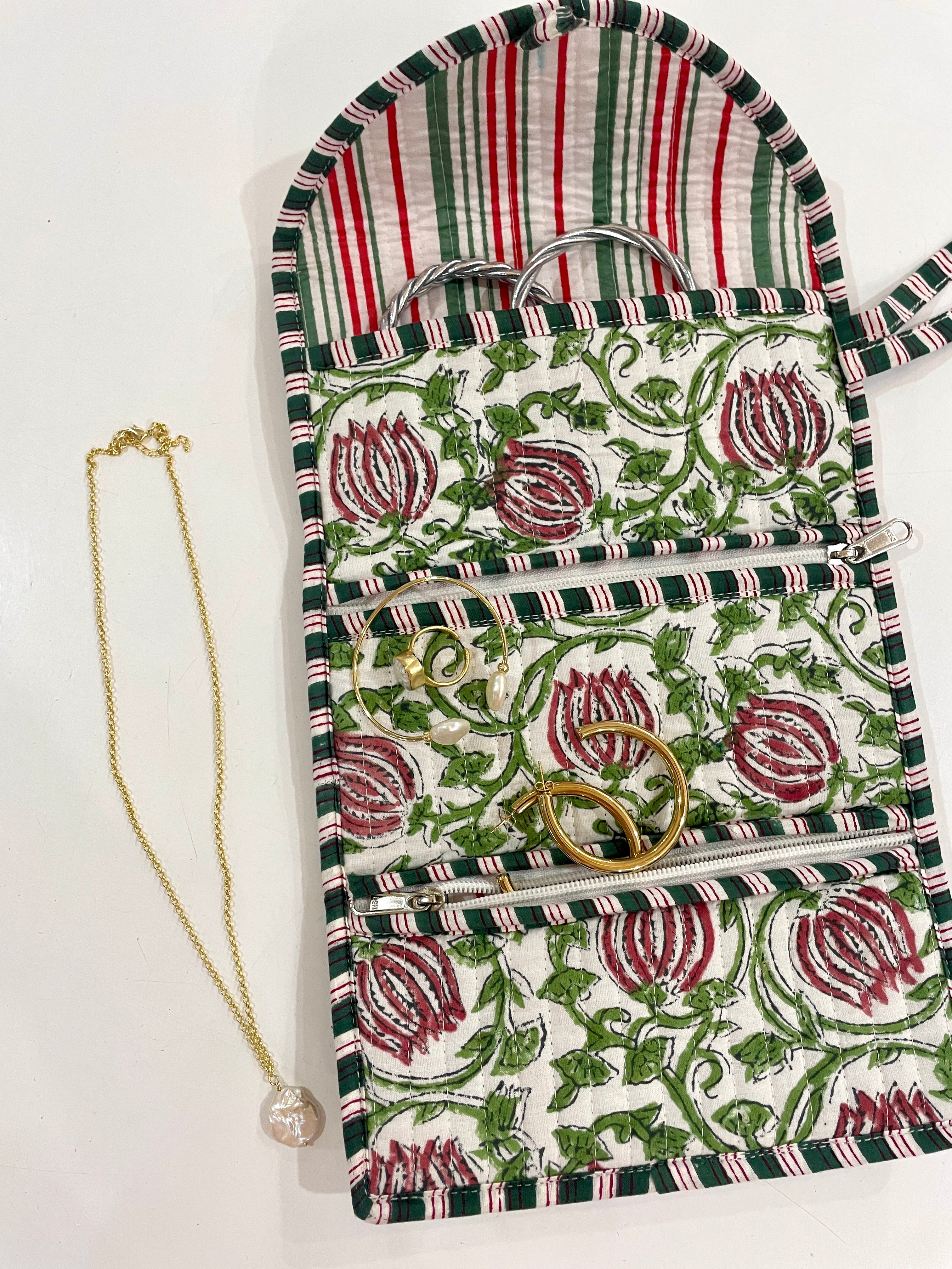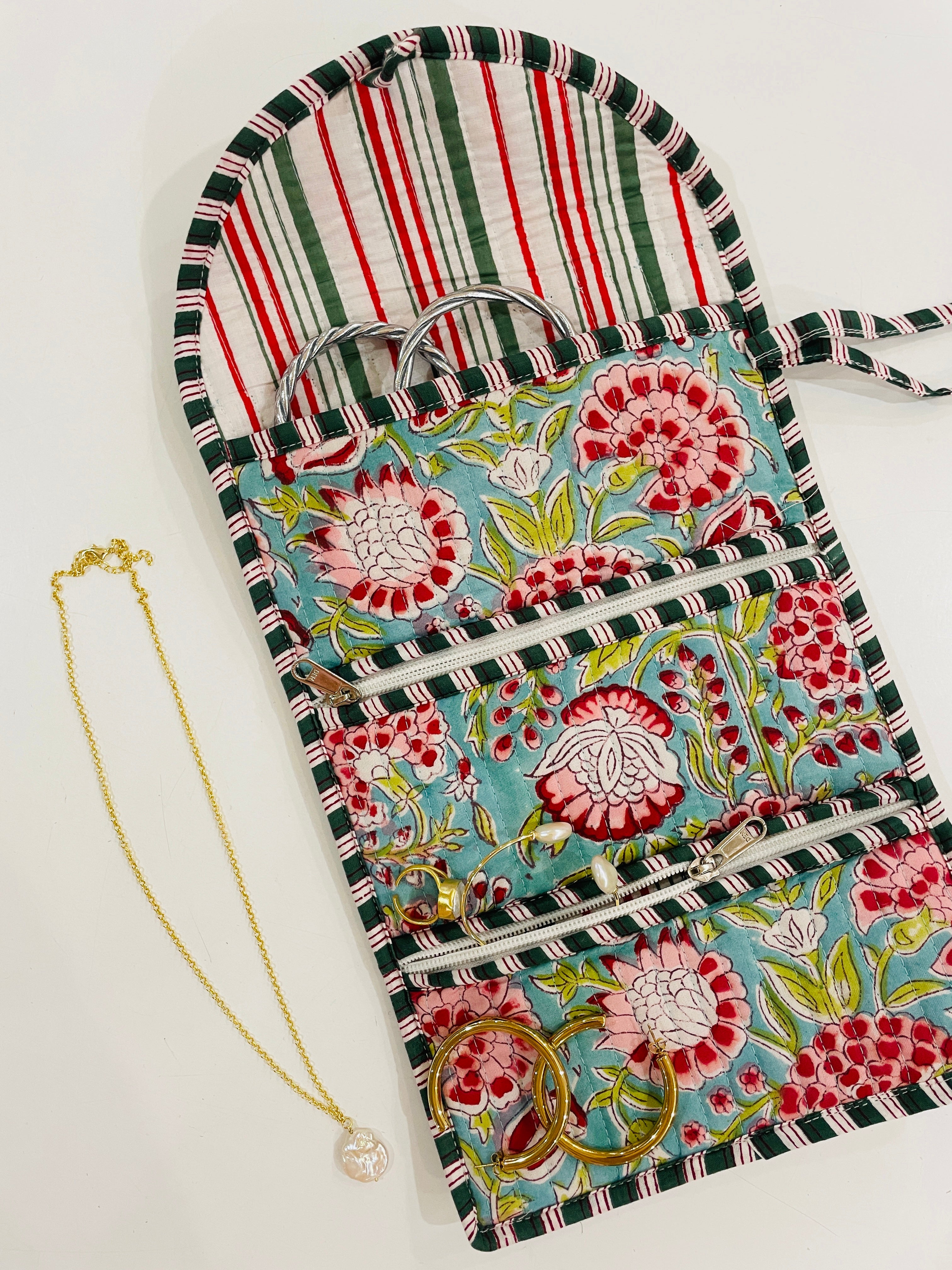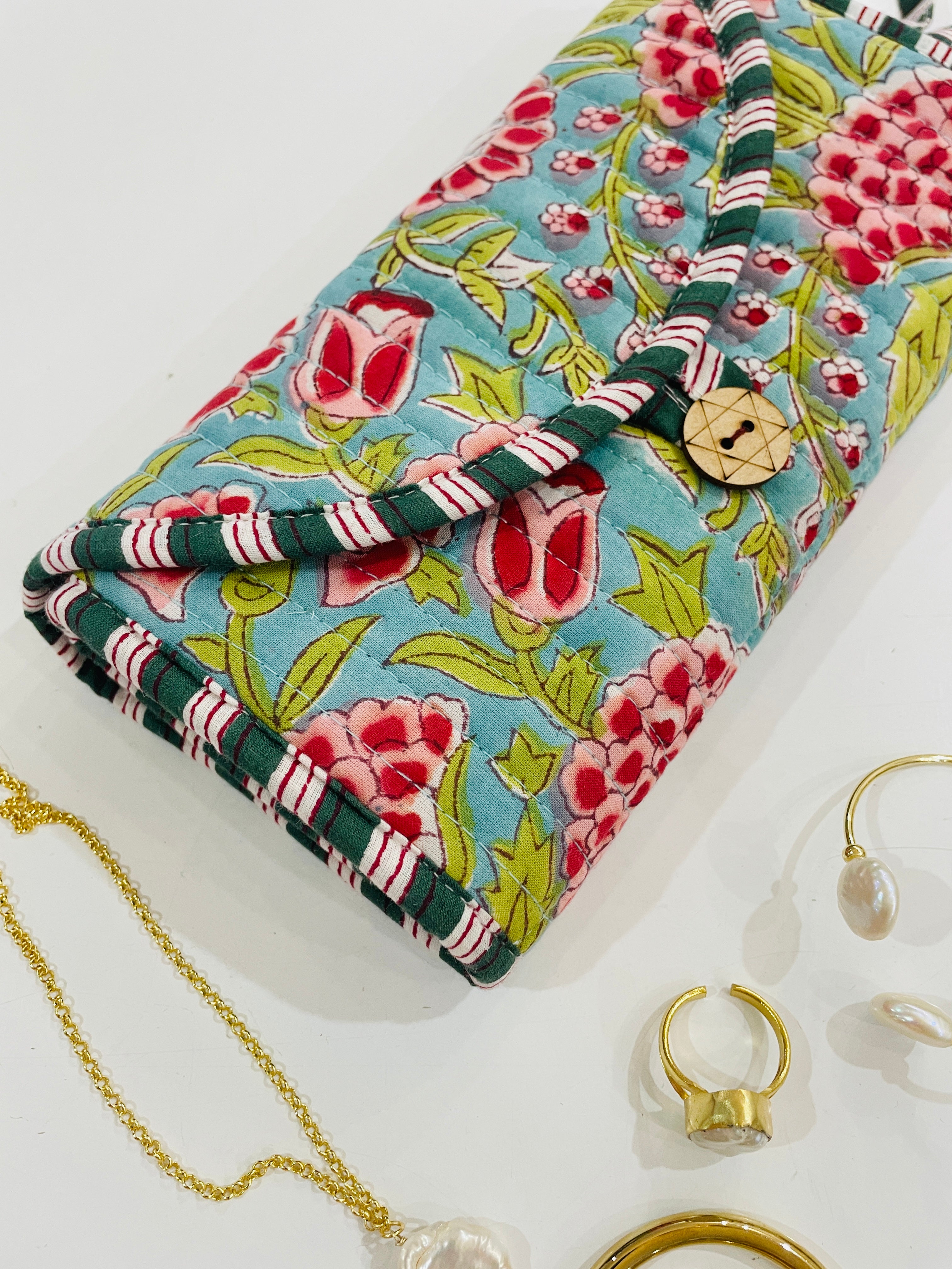 Embroidered Fabric Jewellery Roll