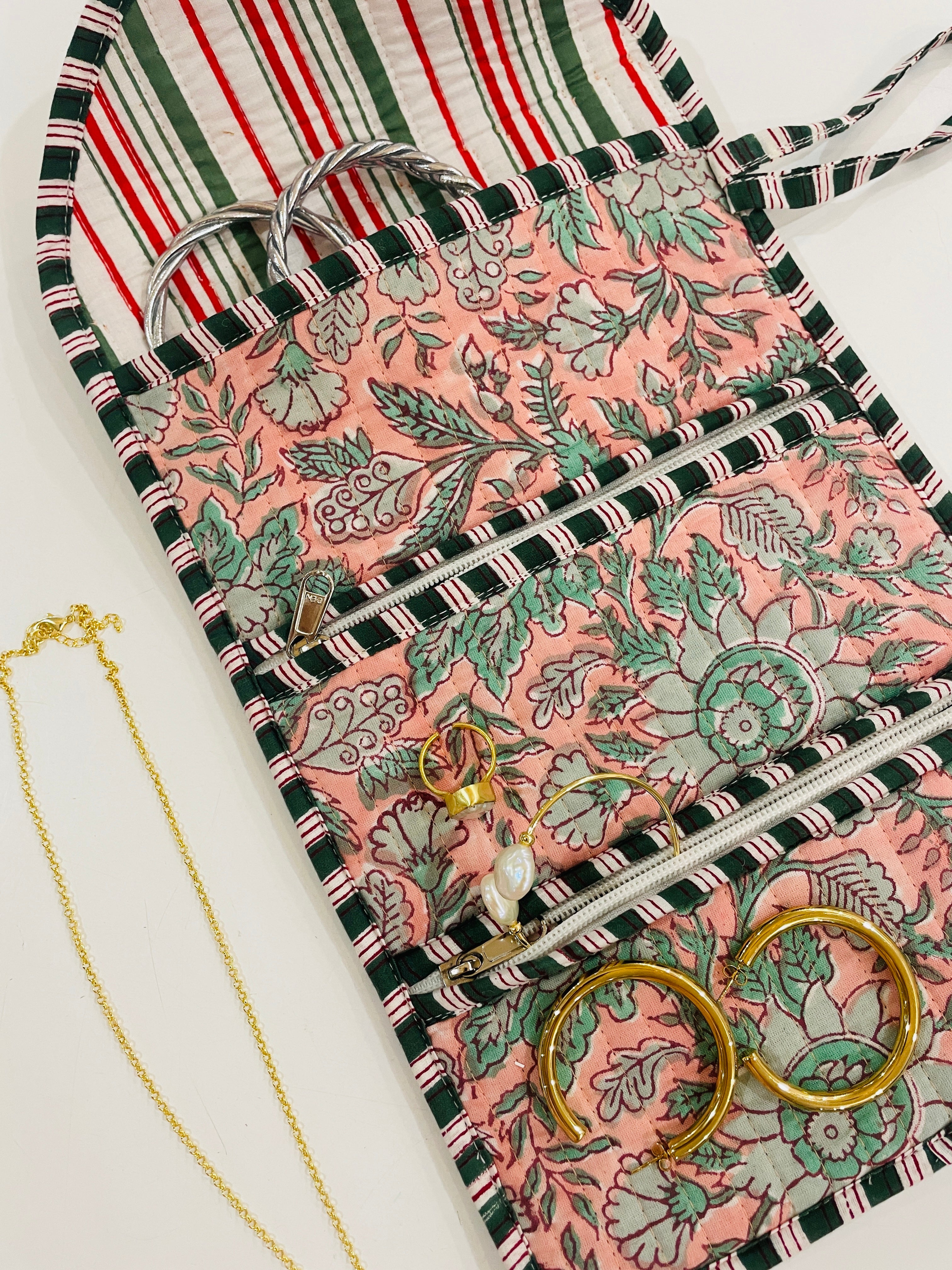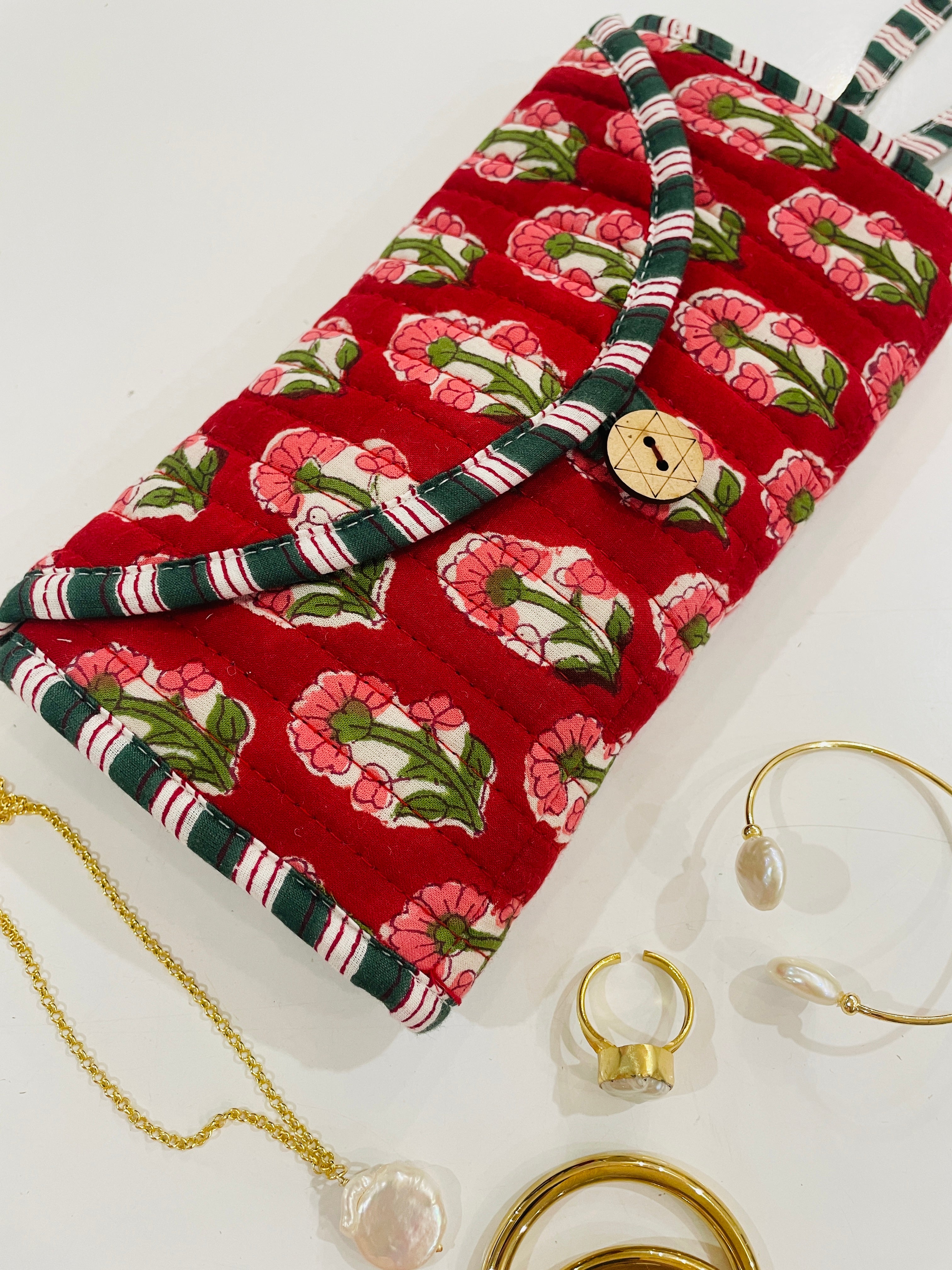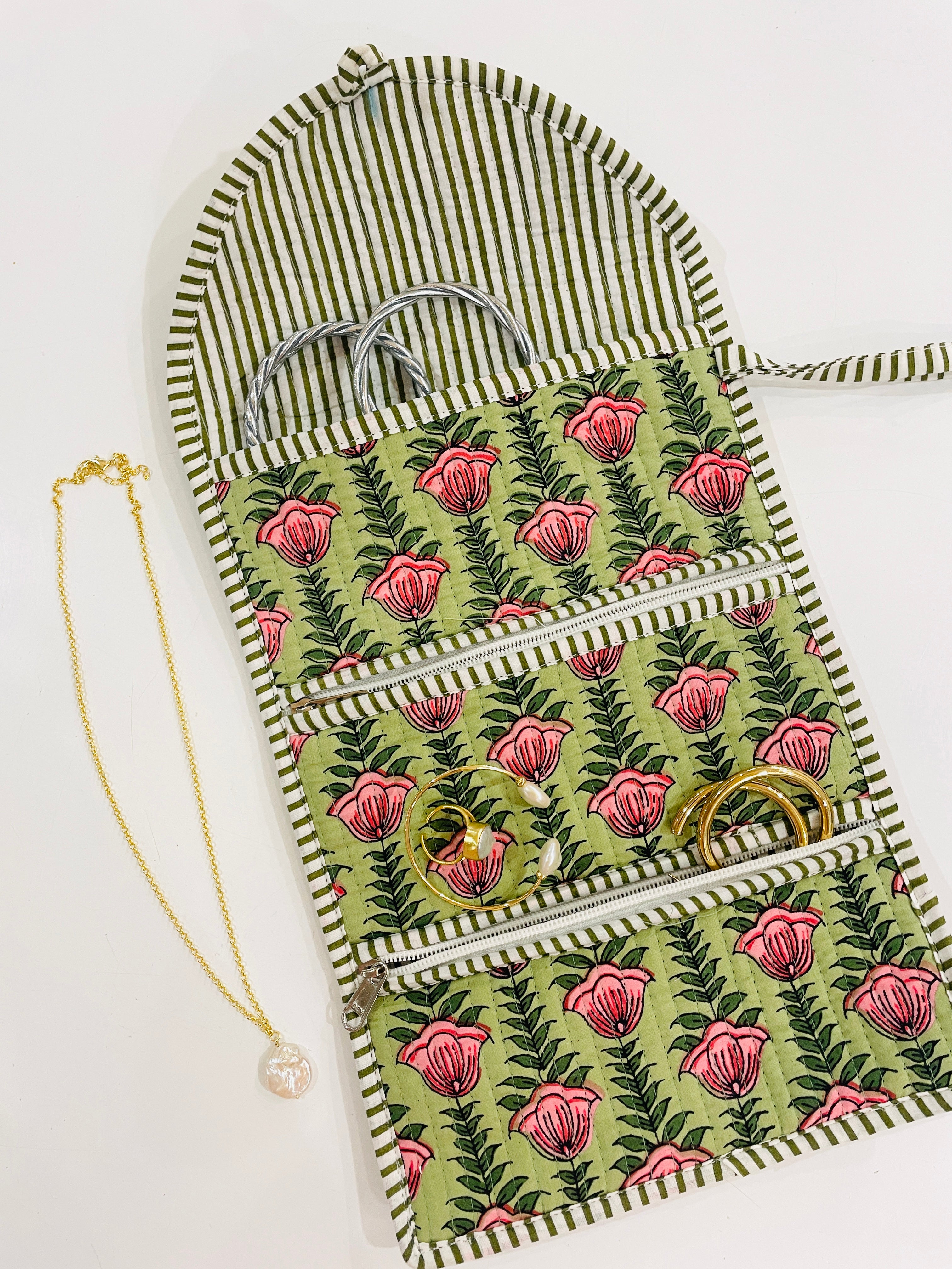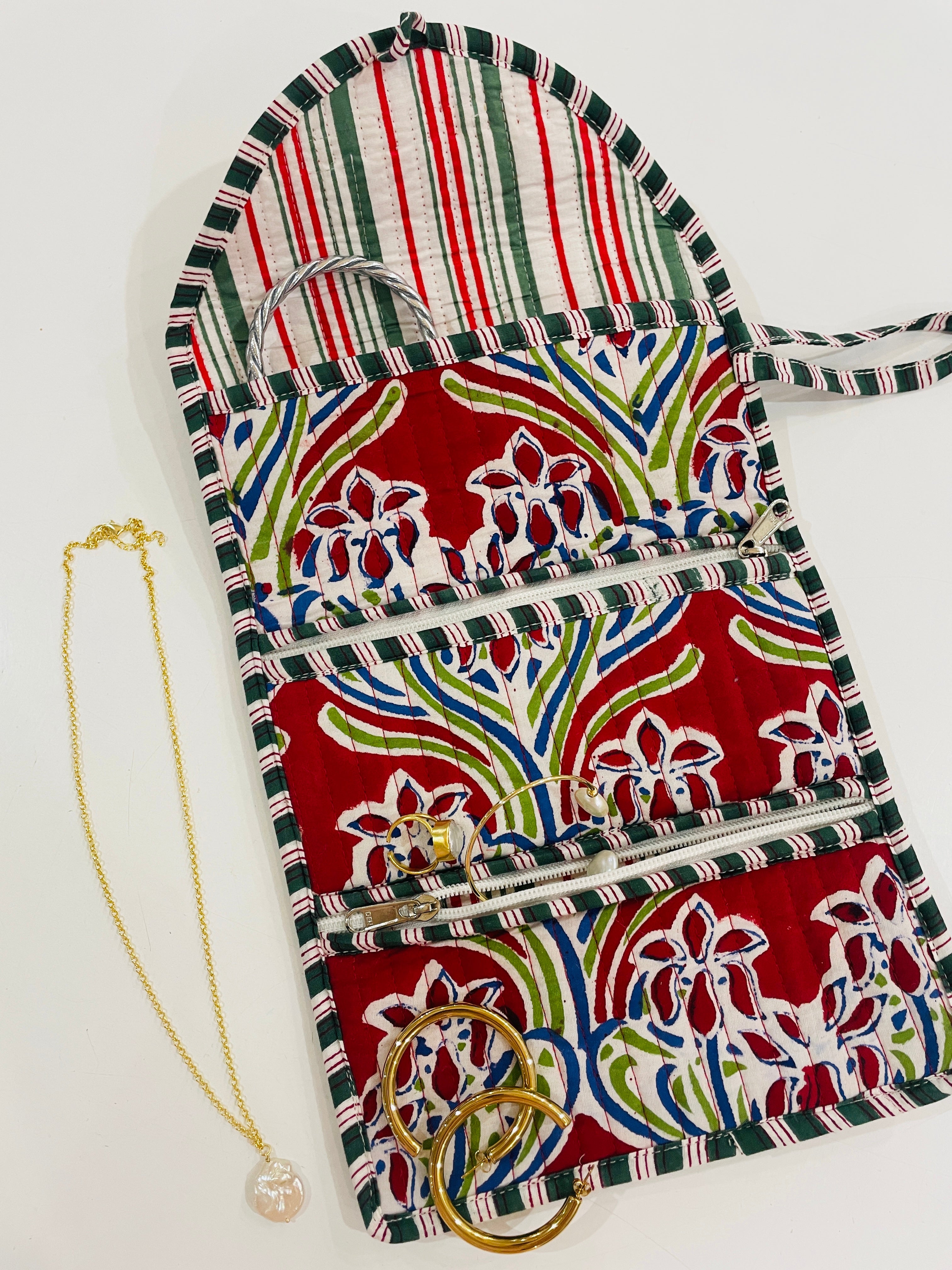 Embroidered Fabric Jewellery Roll