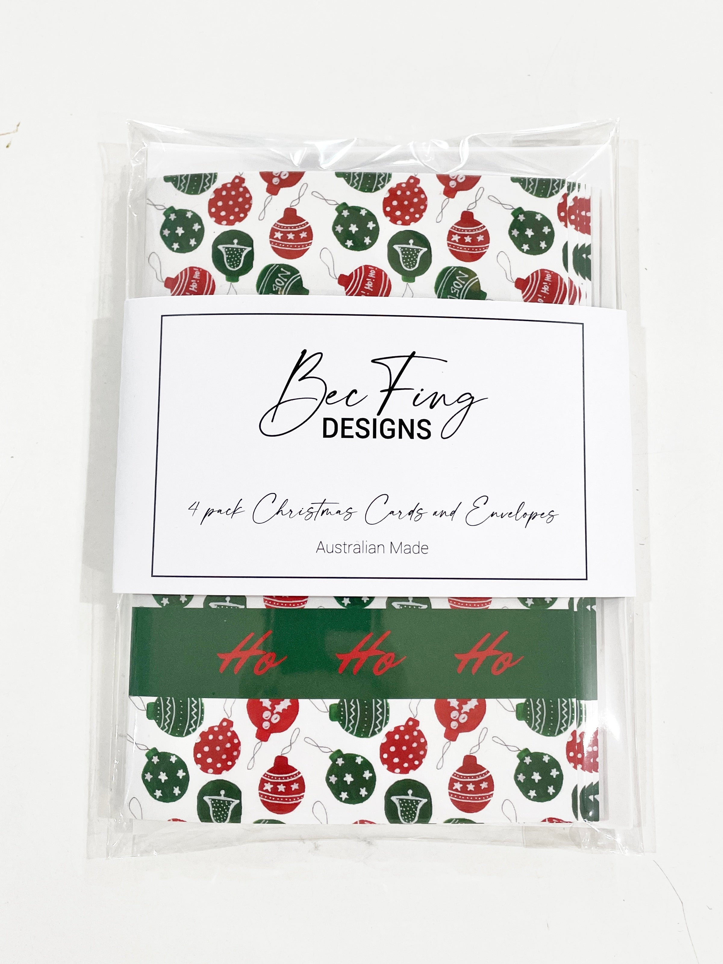 Christmas Cards Pack of 4 Baubles - Ho Ho Ho