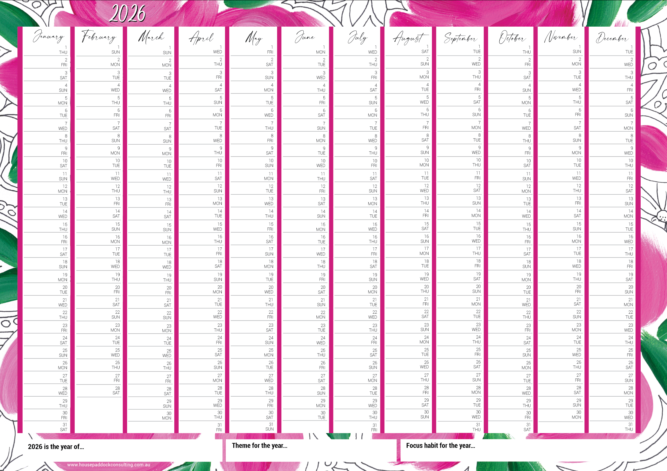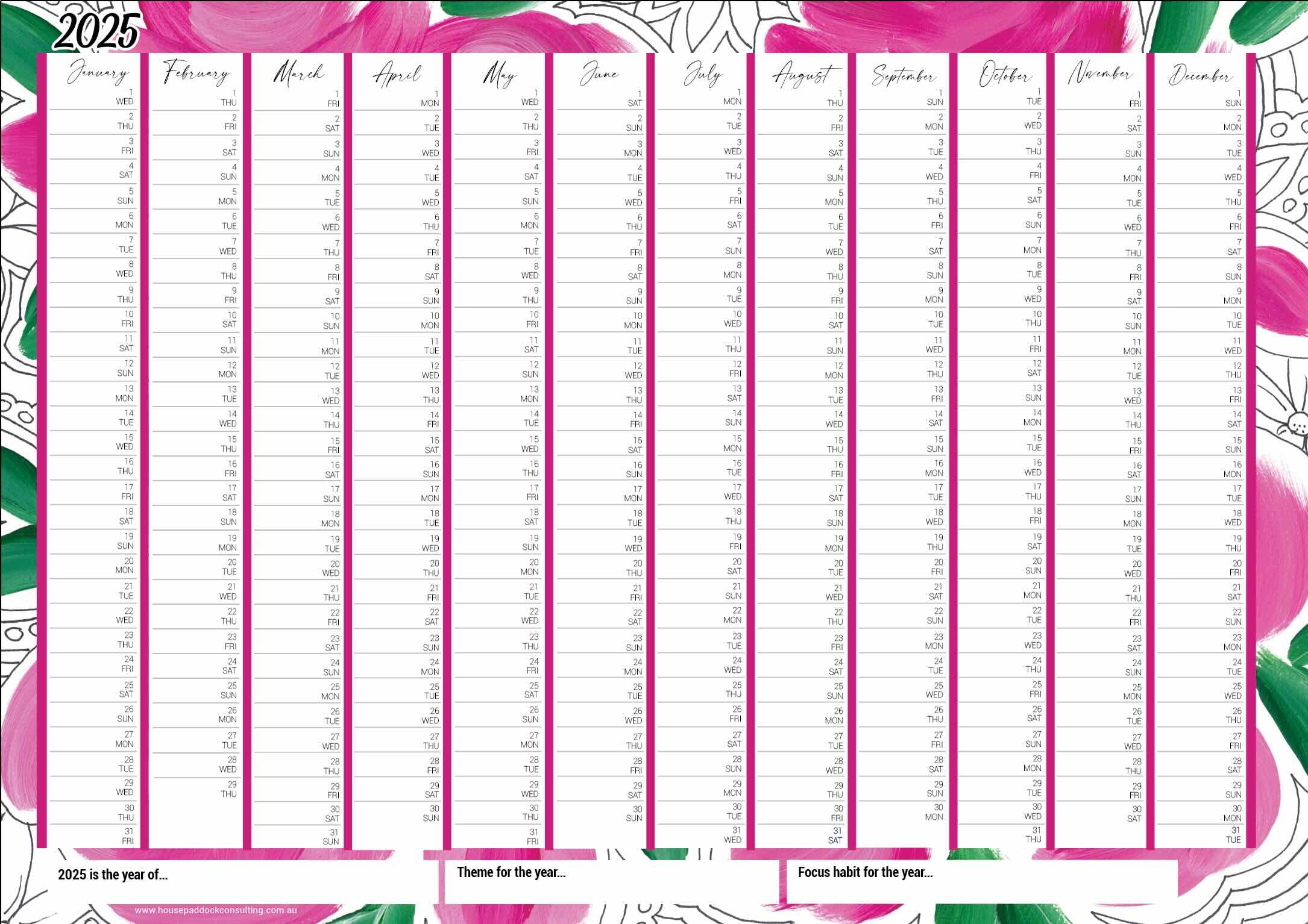 Be one of the first 50 buyers to buy 4, and receive a FREE A3 ANNUAL BI-FOLD 2025 FULL YEAR CALENDAR! If will effectively mean your planner has dates... tuck it in the inside of your planner for easy access.