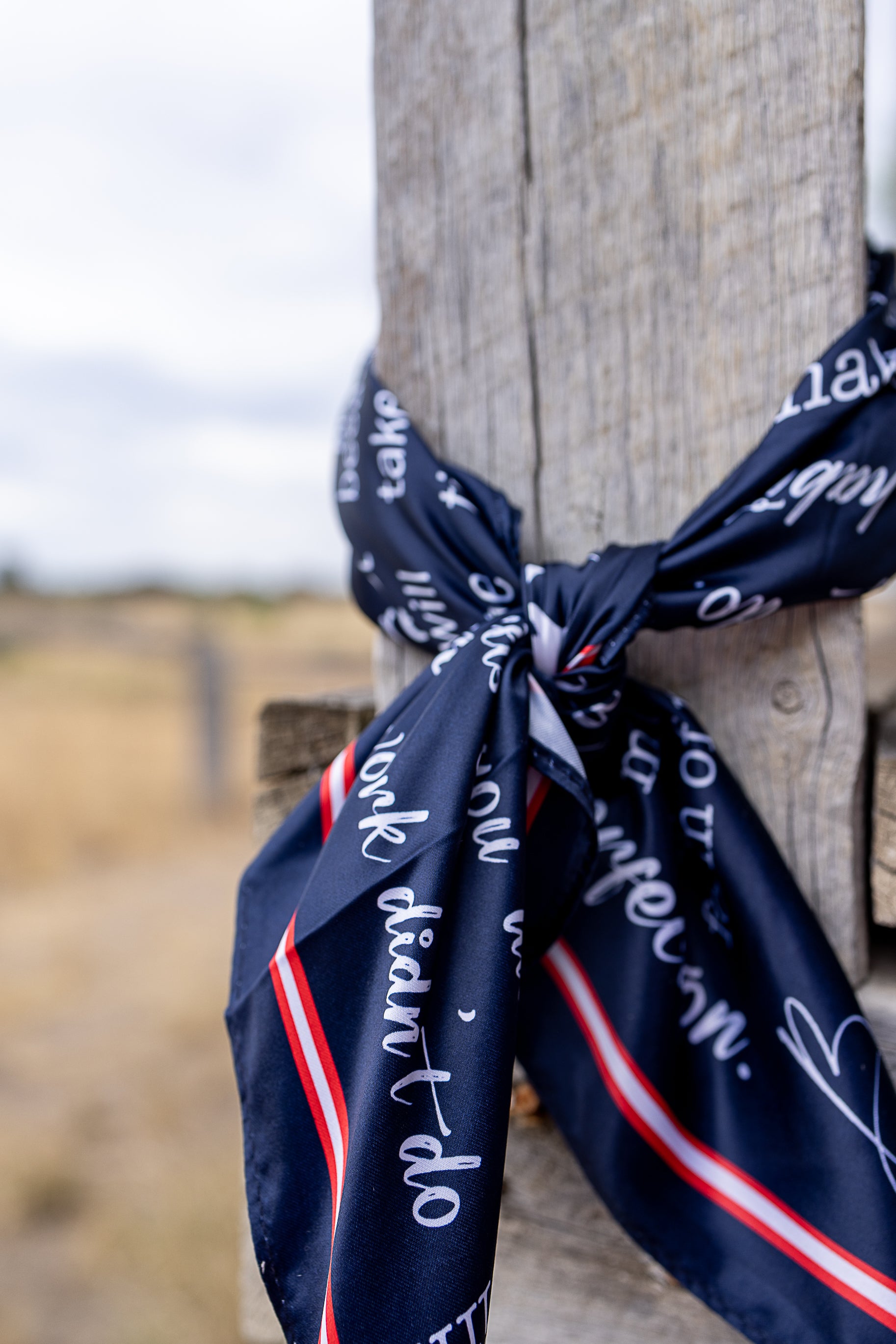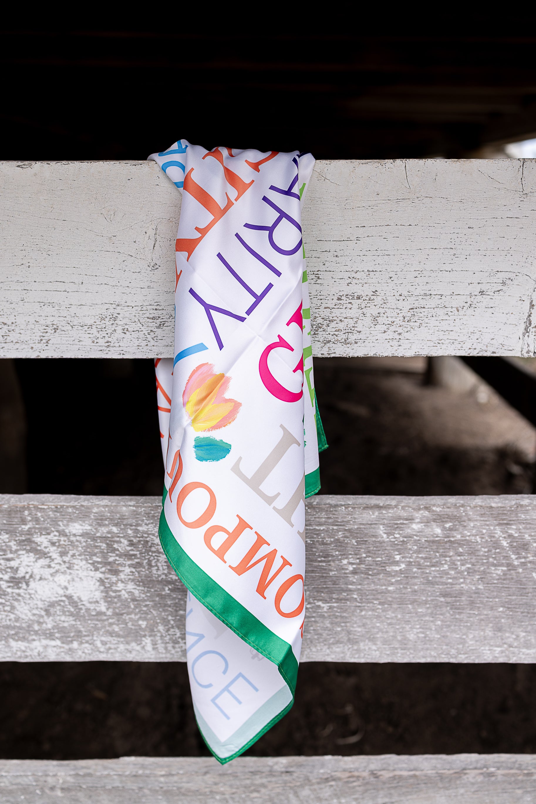 Around your neck, or tie on your hat, pony tail or bag; always aiming to be a gentle reminder that “you’ve got this”. Each scarf comes with a practical and pretty co-ordinated keepsake bag – which is perfect to store your scarf, or to keep other treasures safe at home or on your travels!