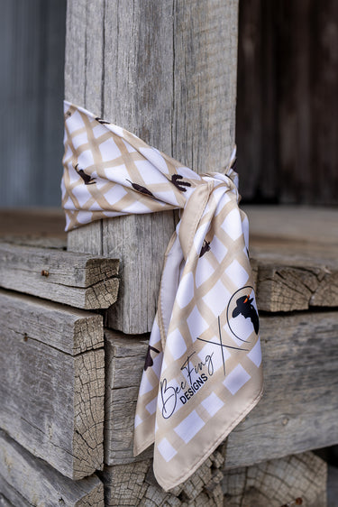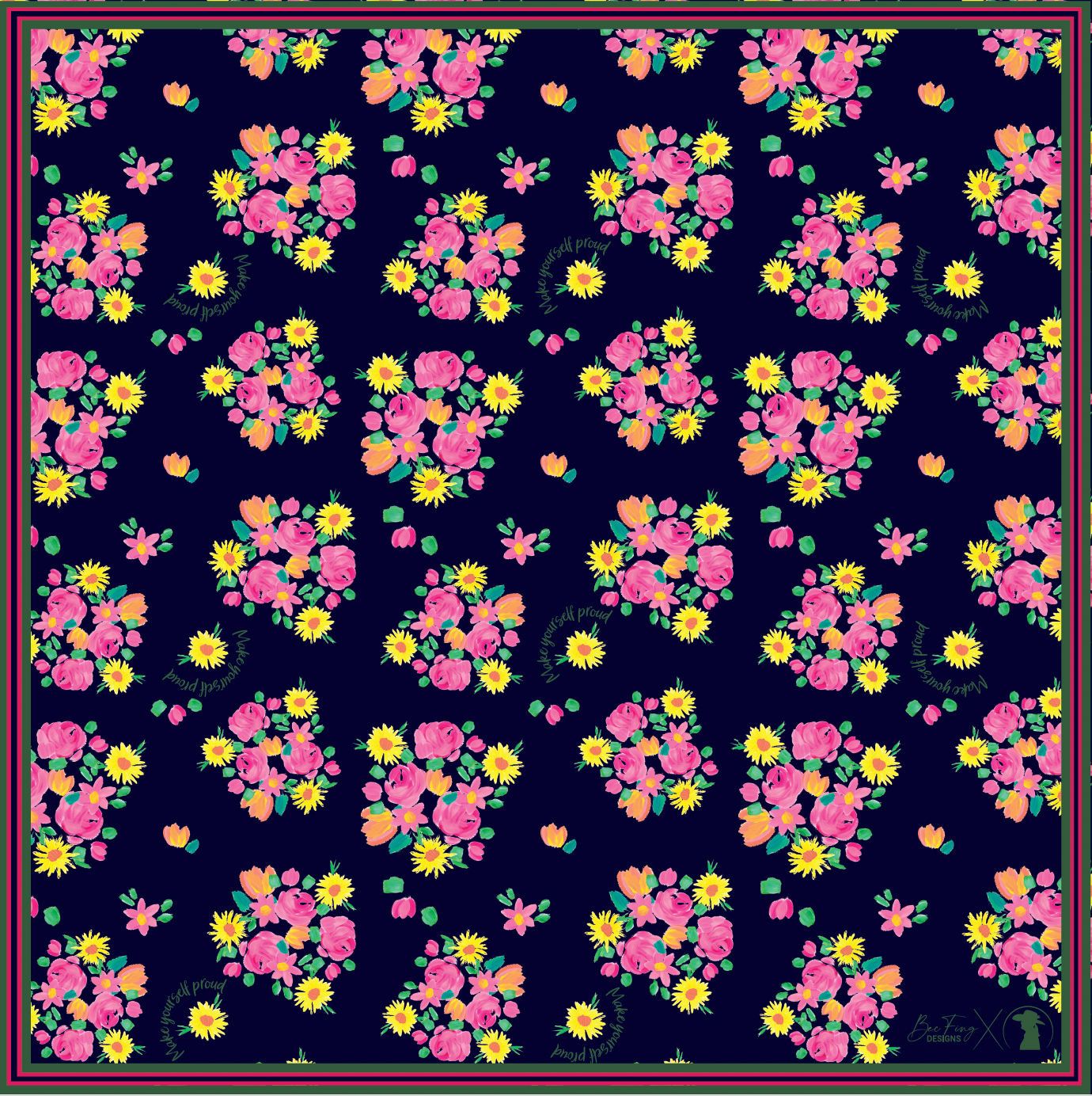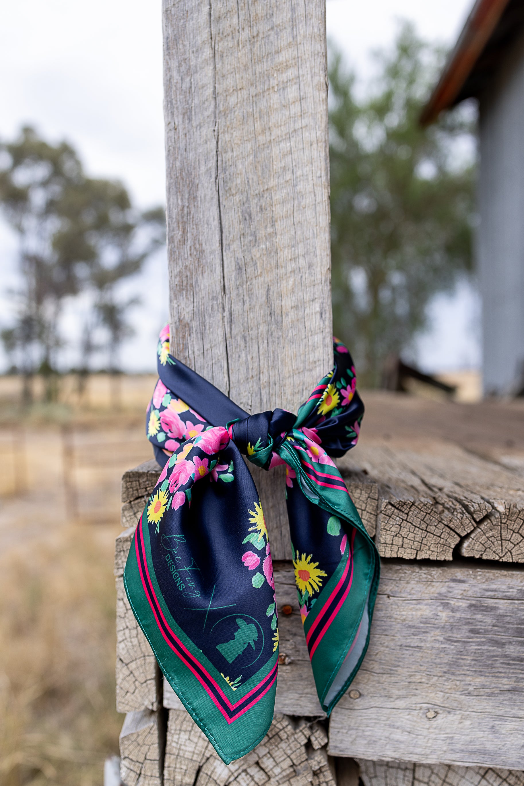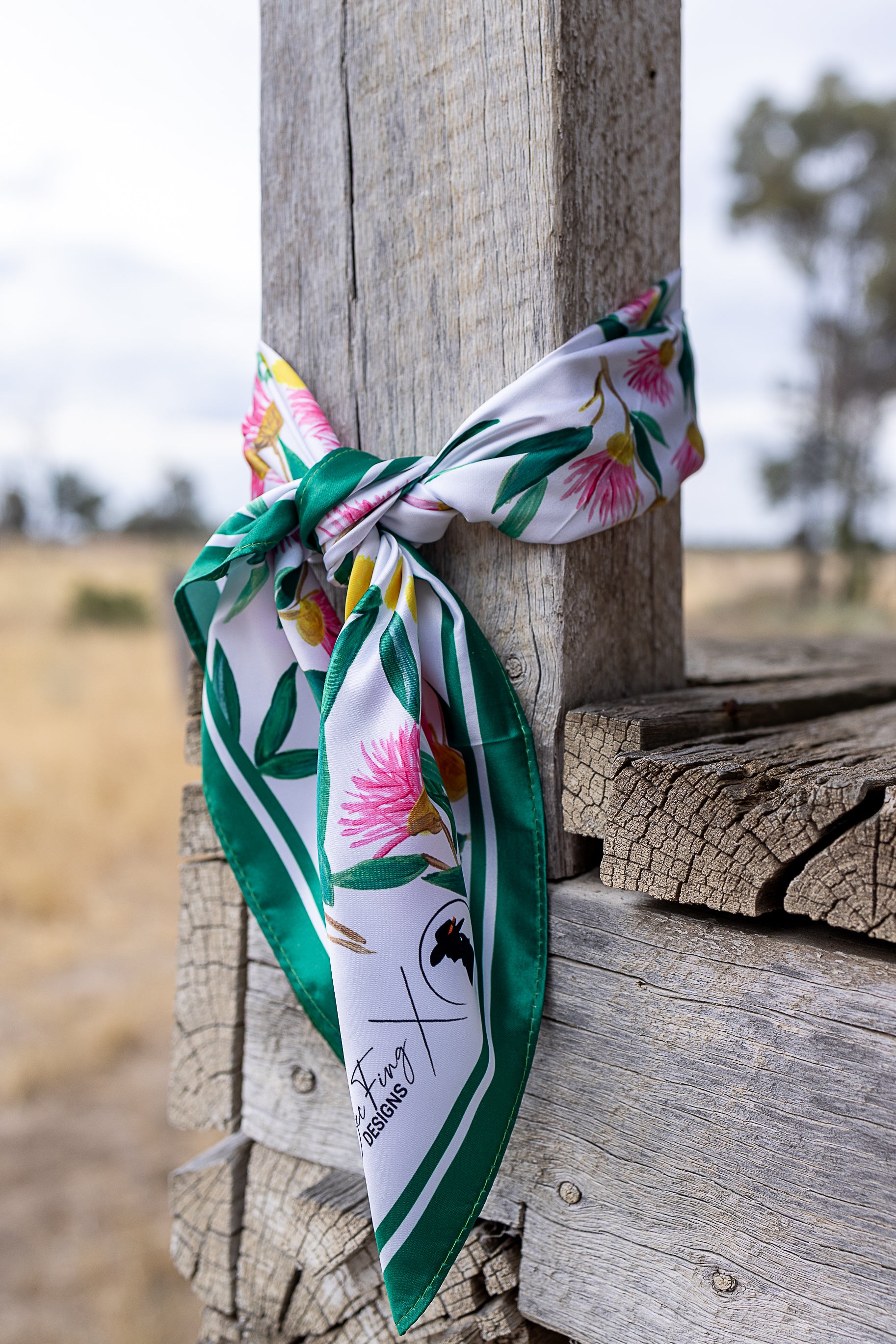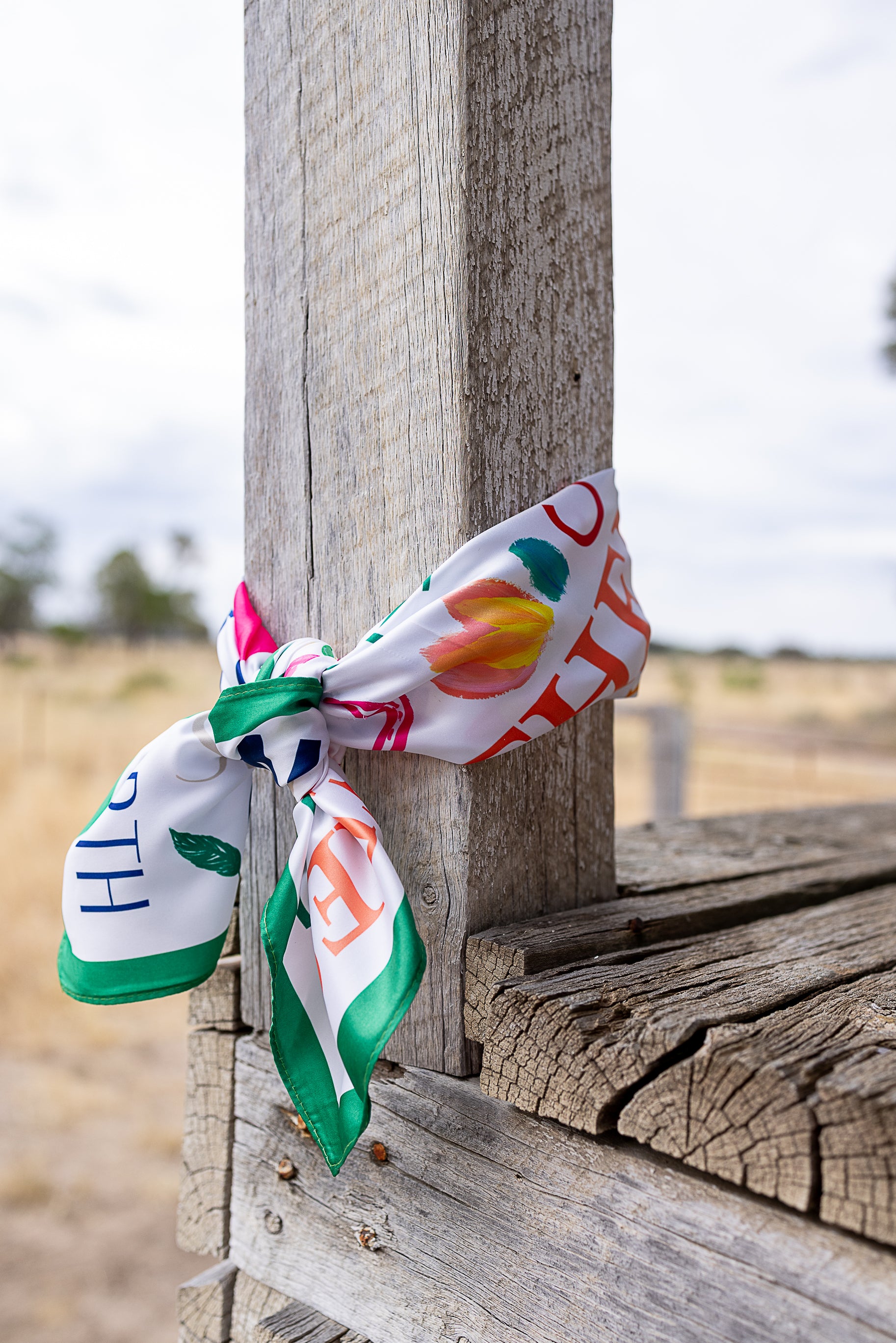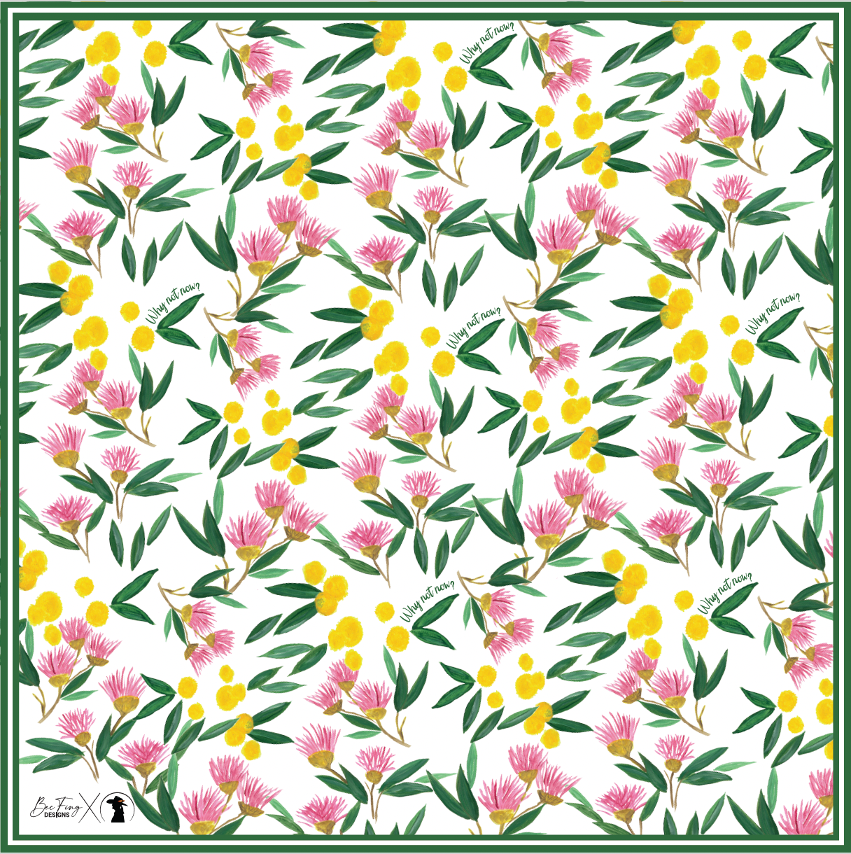 These beautiful 50x50cm scarves are a collab by Sisters Bec Fing and Heidi Smith.