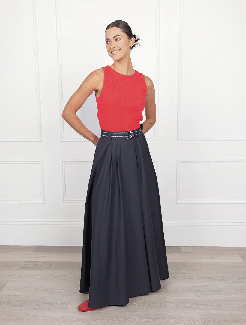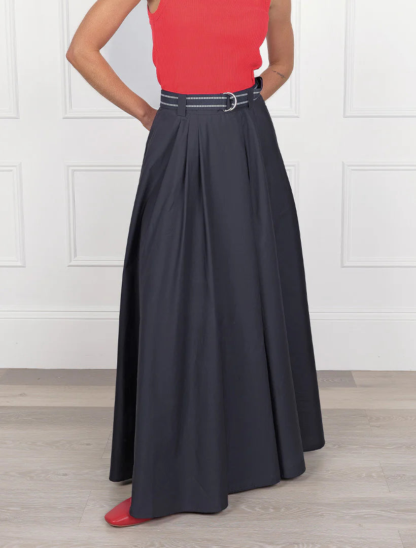 Crafted from soft, breathable cotton, this skirt drapes beautifully for a relaxed yet polished silhouette. In a timeless navy making it effortlessly versatile, pairing perfectly with your favourite tops for day or elevated for event wear.