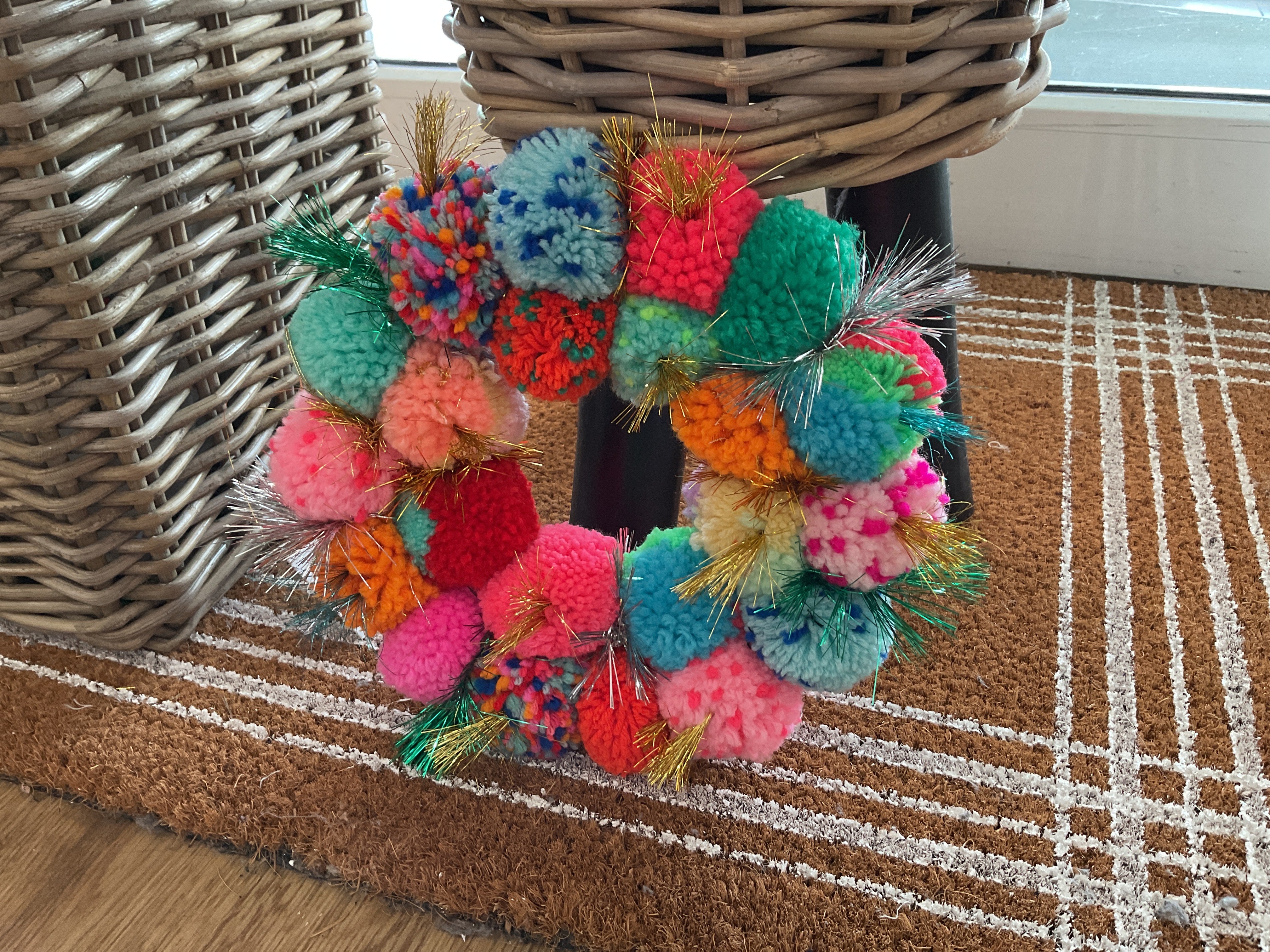 A rainbow made from pompoms! Hanging Cord Tassel hem Dimensions - W32 cm x H25cm
