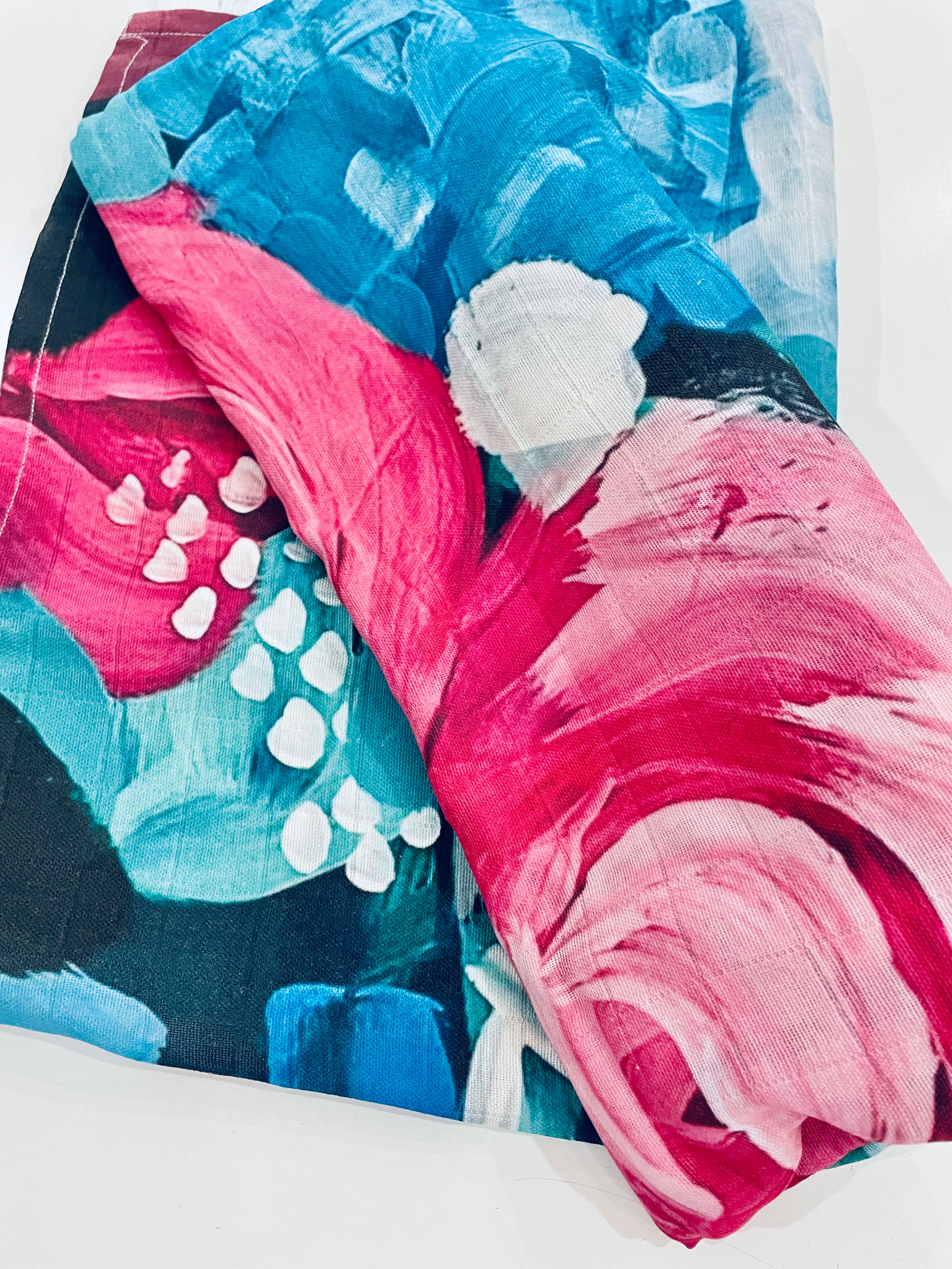 Signature Mural - Muslin Swaddle, Burp Cloth, Towelling Wash CLoths x 2, Dummy Clip