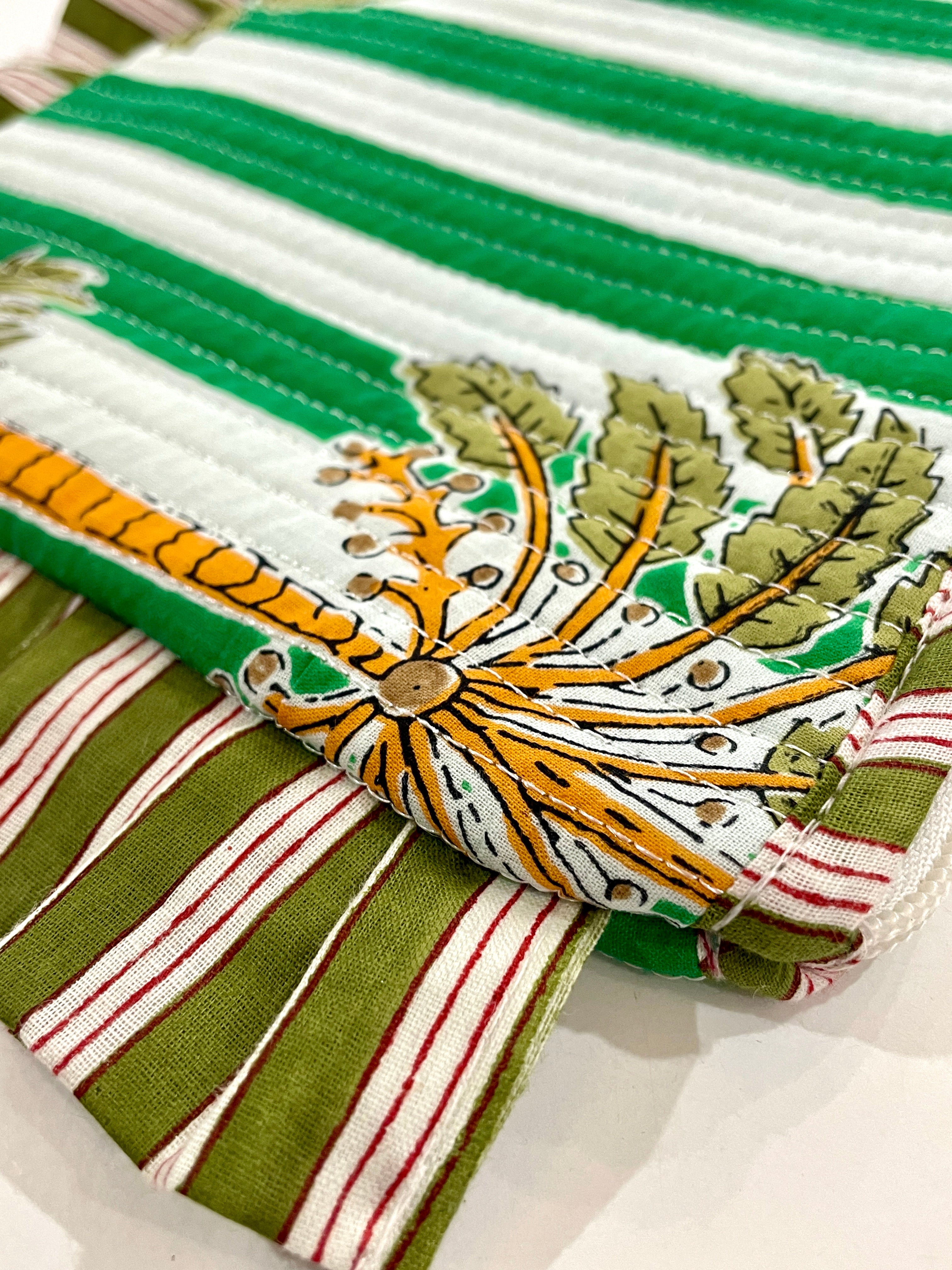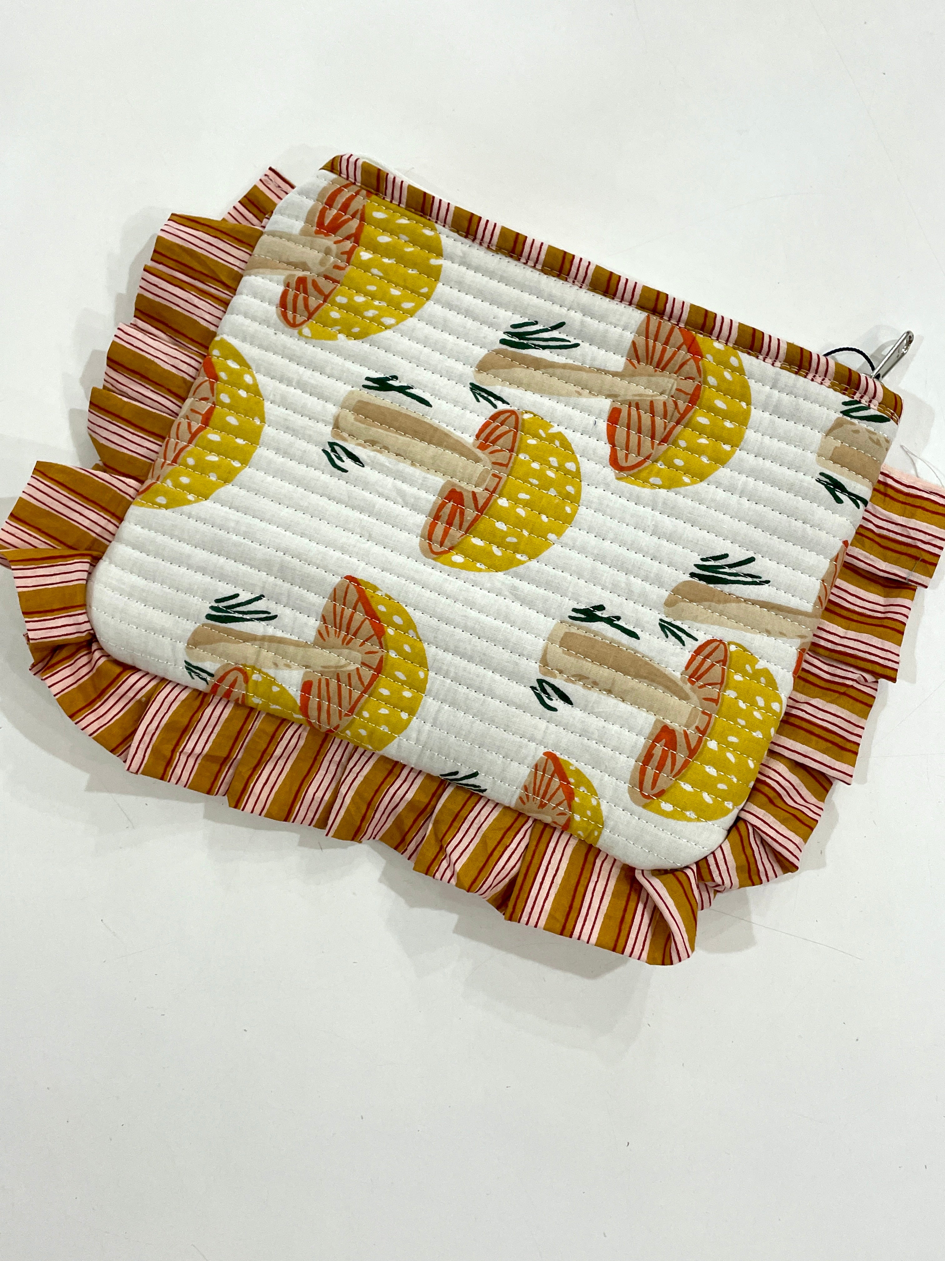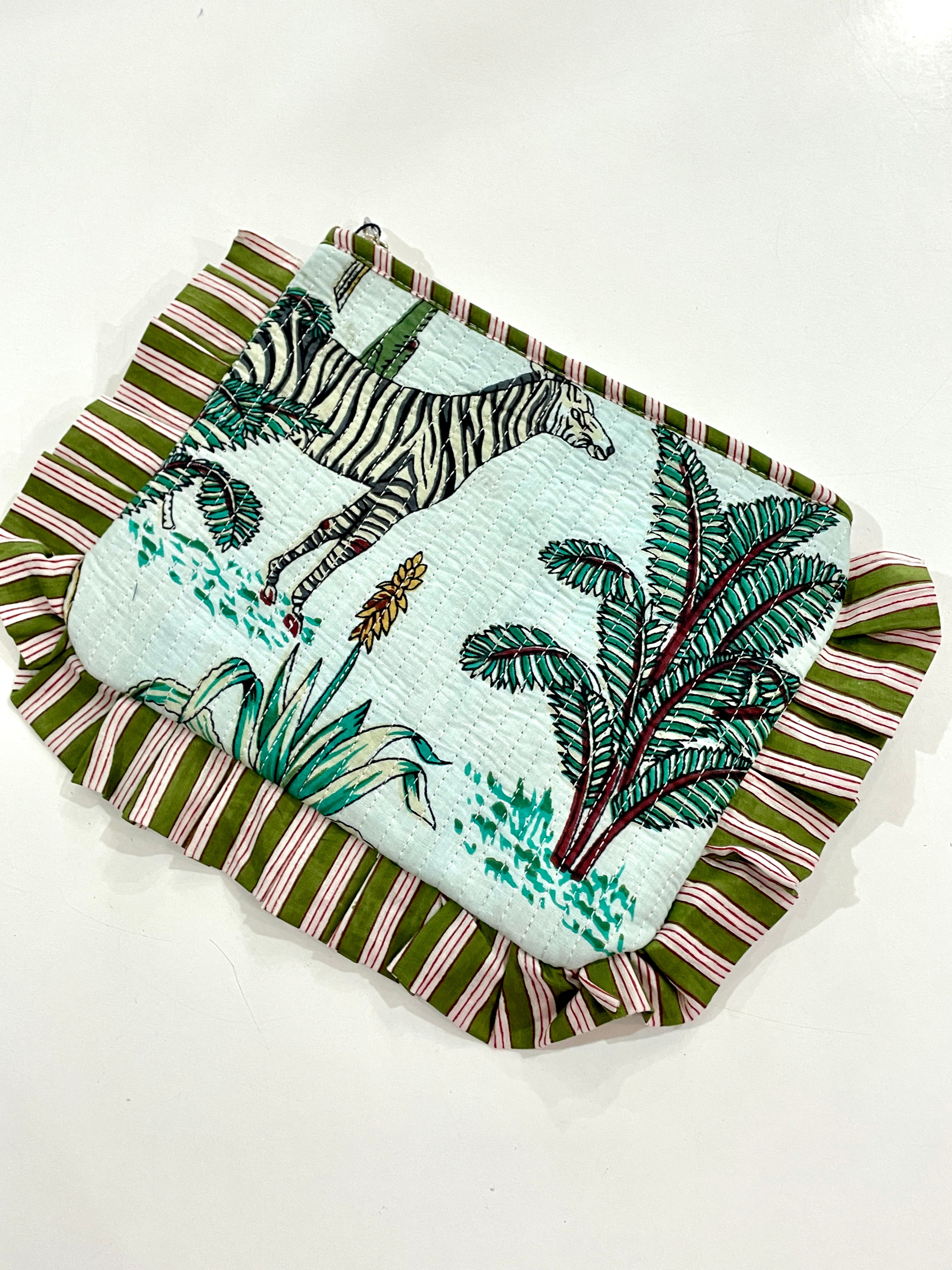 A versatile and unique handmade pouch to set you apart in a crowd. These fabulous pouches are equally perfect for your cosmetics or a clutch for some colour and fun to any outift.