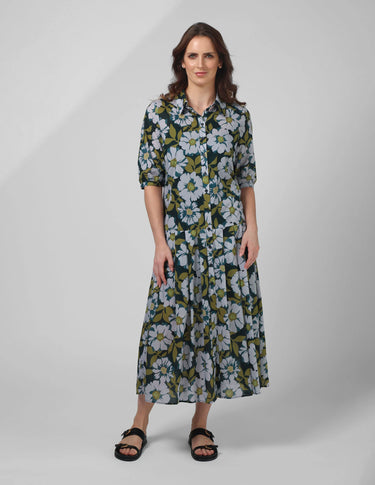 Maxi Dress Button front dress with collar. Elbow length sleeves with self fabric cuff bands