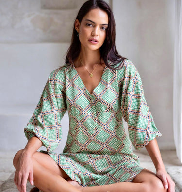Midi Length Dress V Neck 3/4 Sleeve with elasticated hem Button Open Boodice A Line Shape Skirt Side Splits