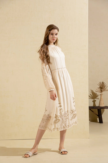 Oliviane Embroidered Dress Beige