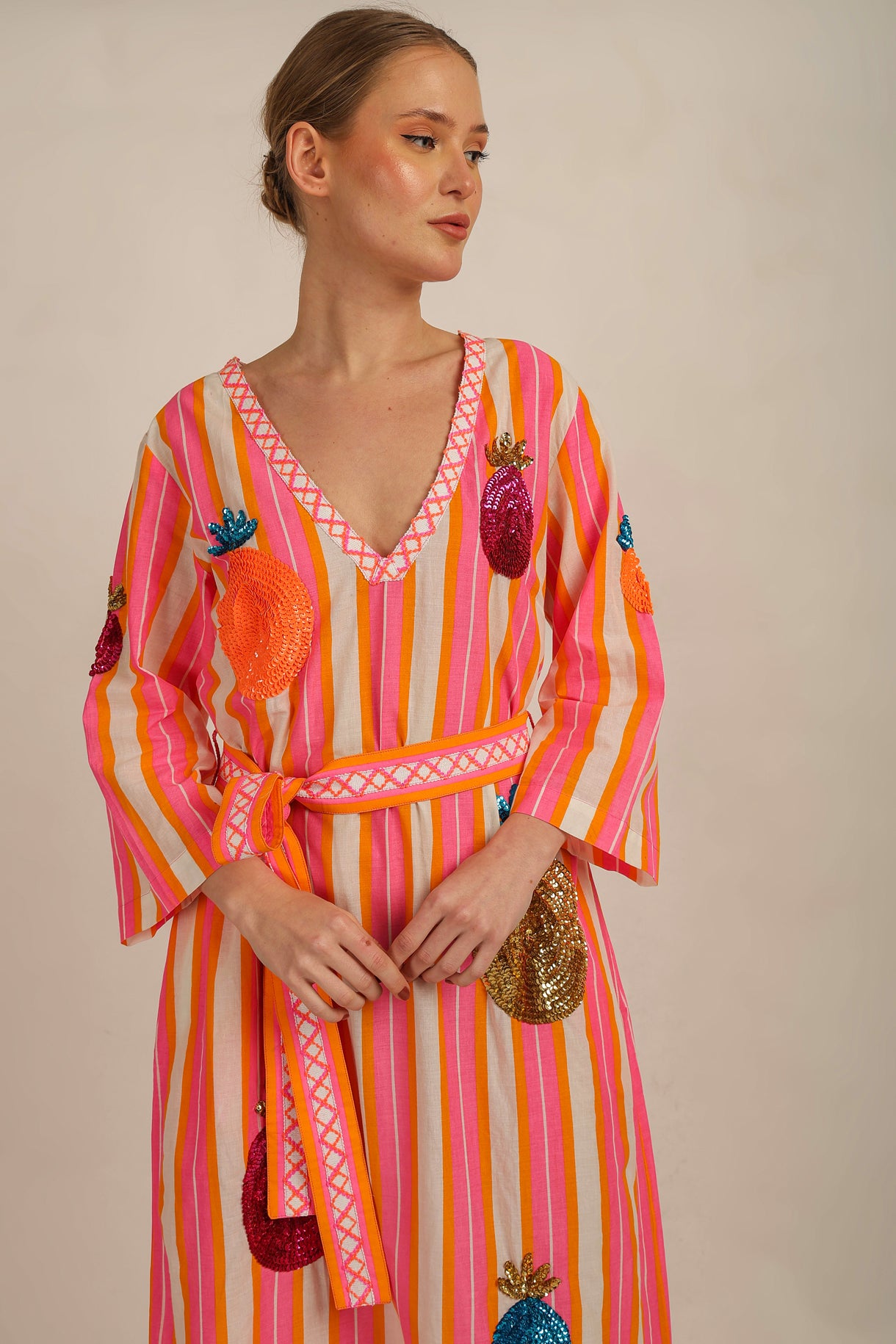 What a showstopper! This is the neon and sequin party dress that, from the minute you pull it out of your robe, will have you dancing and smiling!