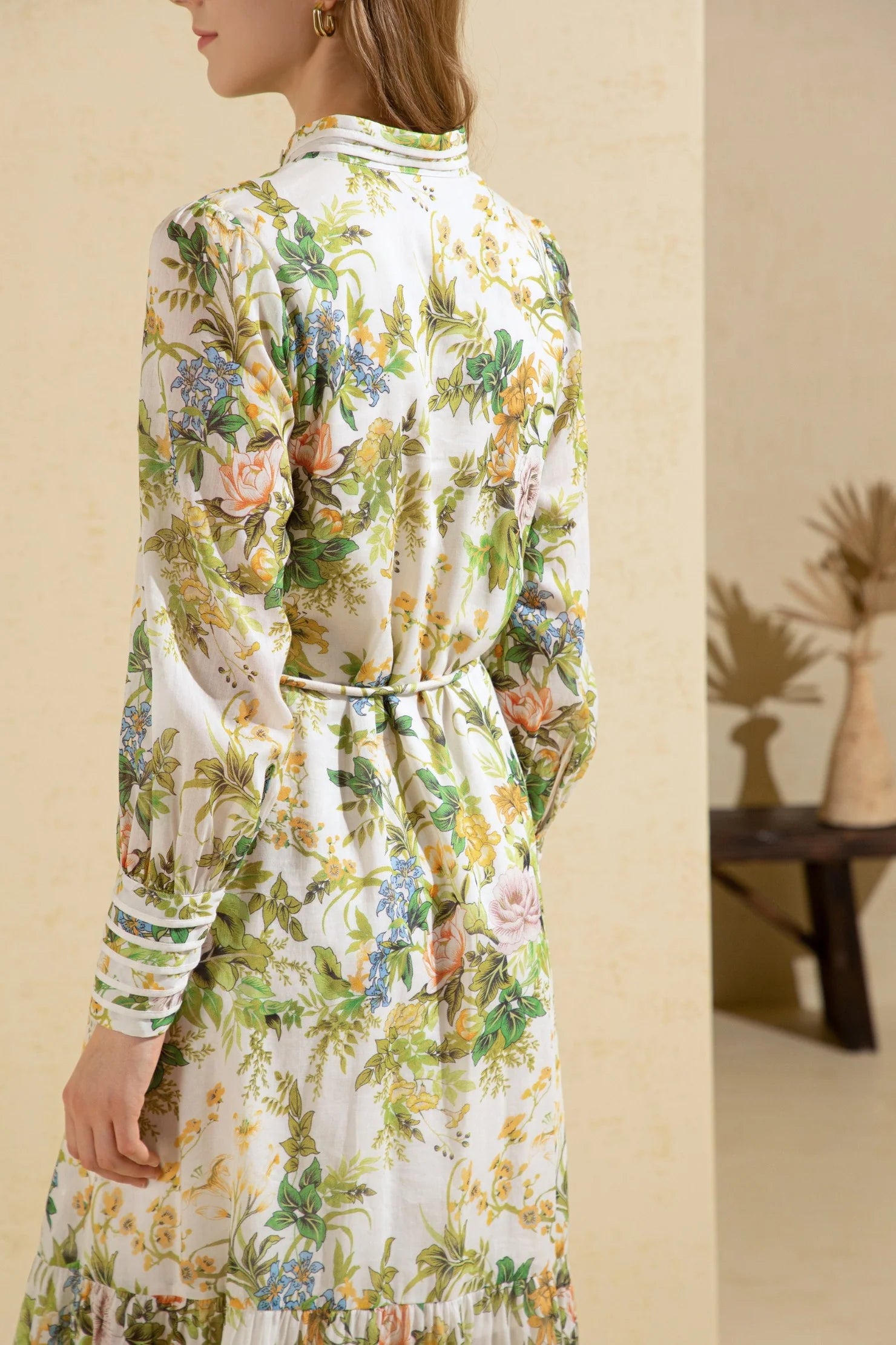 The dress is adorned with a stunning all-over print, it is rustic and playful creating a beautiful balance of sophistication and casual flair.