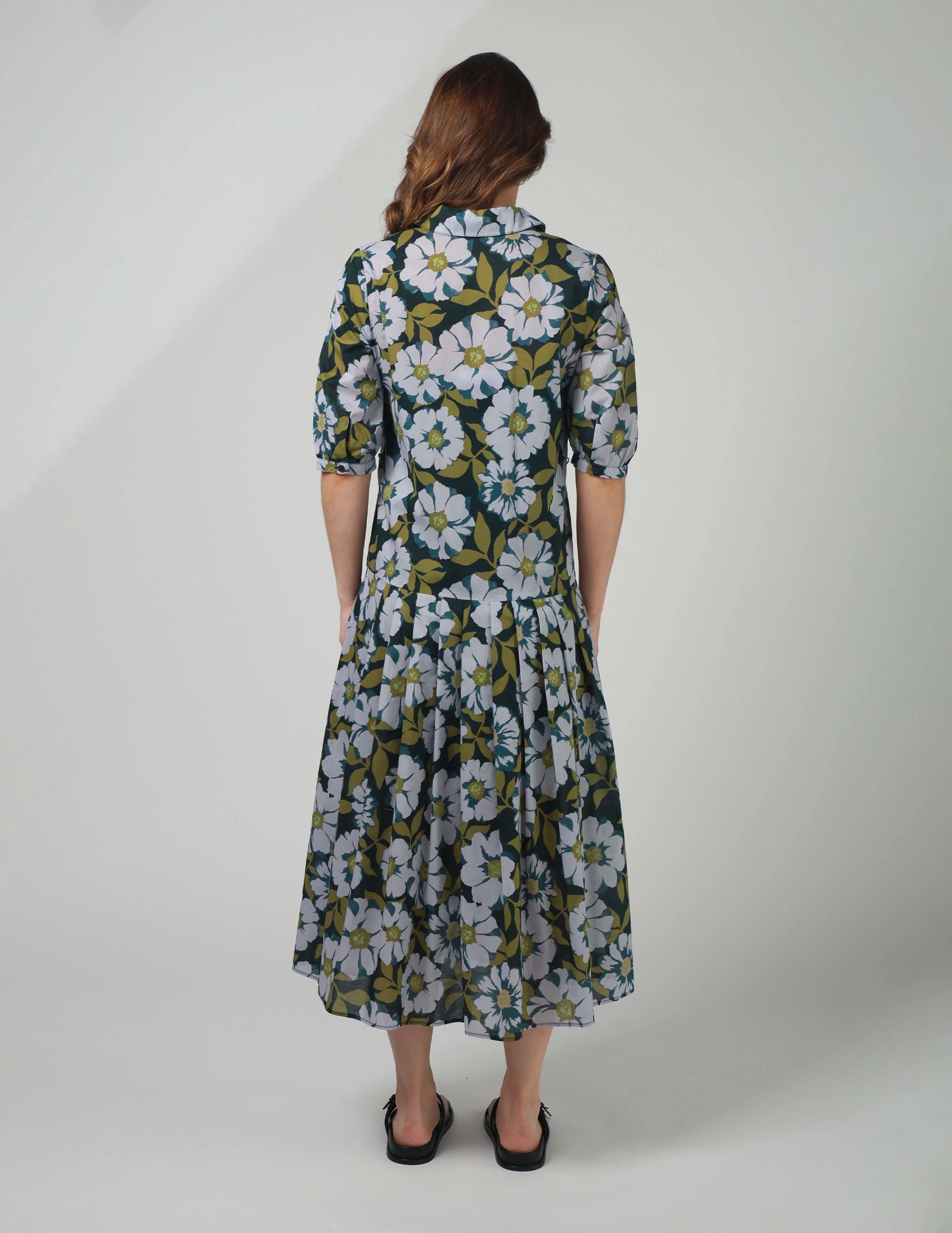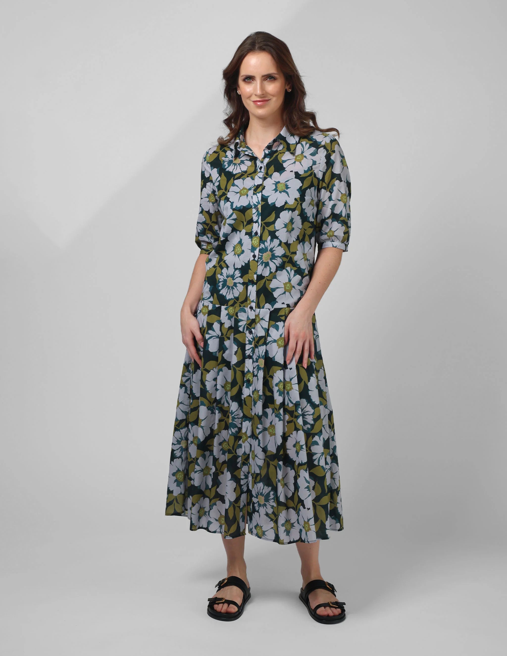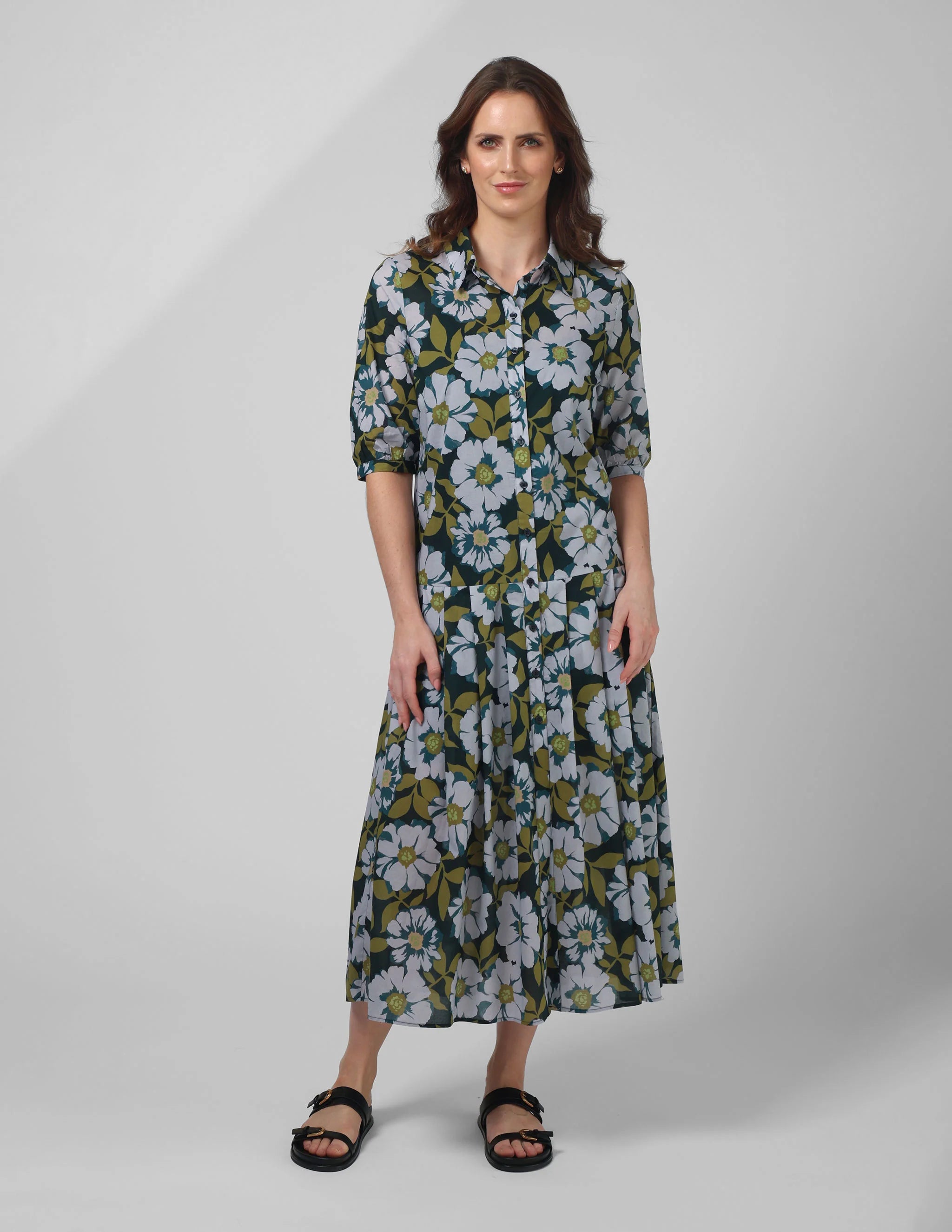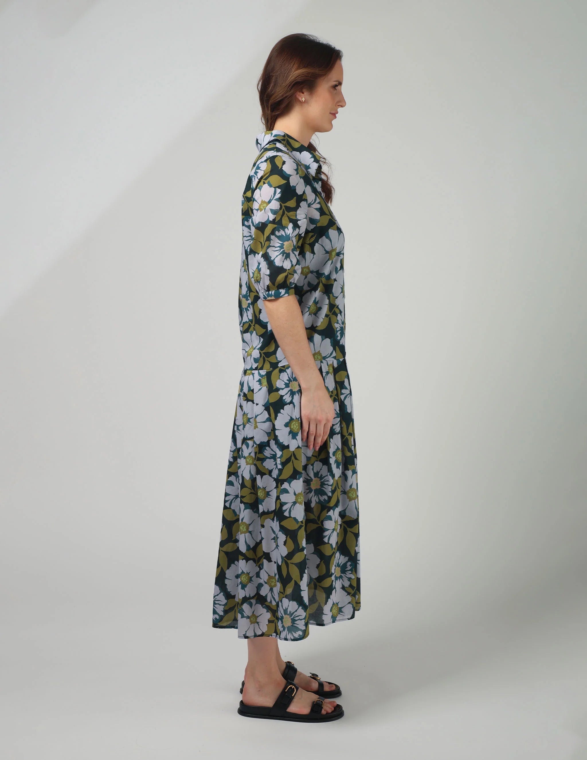 Maxi Dress Button front dress with collar. Elbow length sleeves with self fabric cuff bands