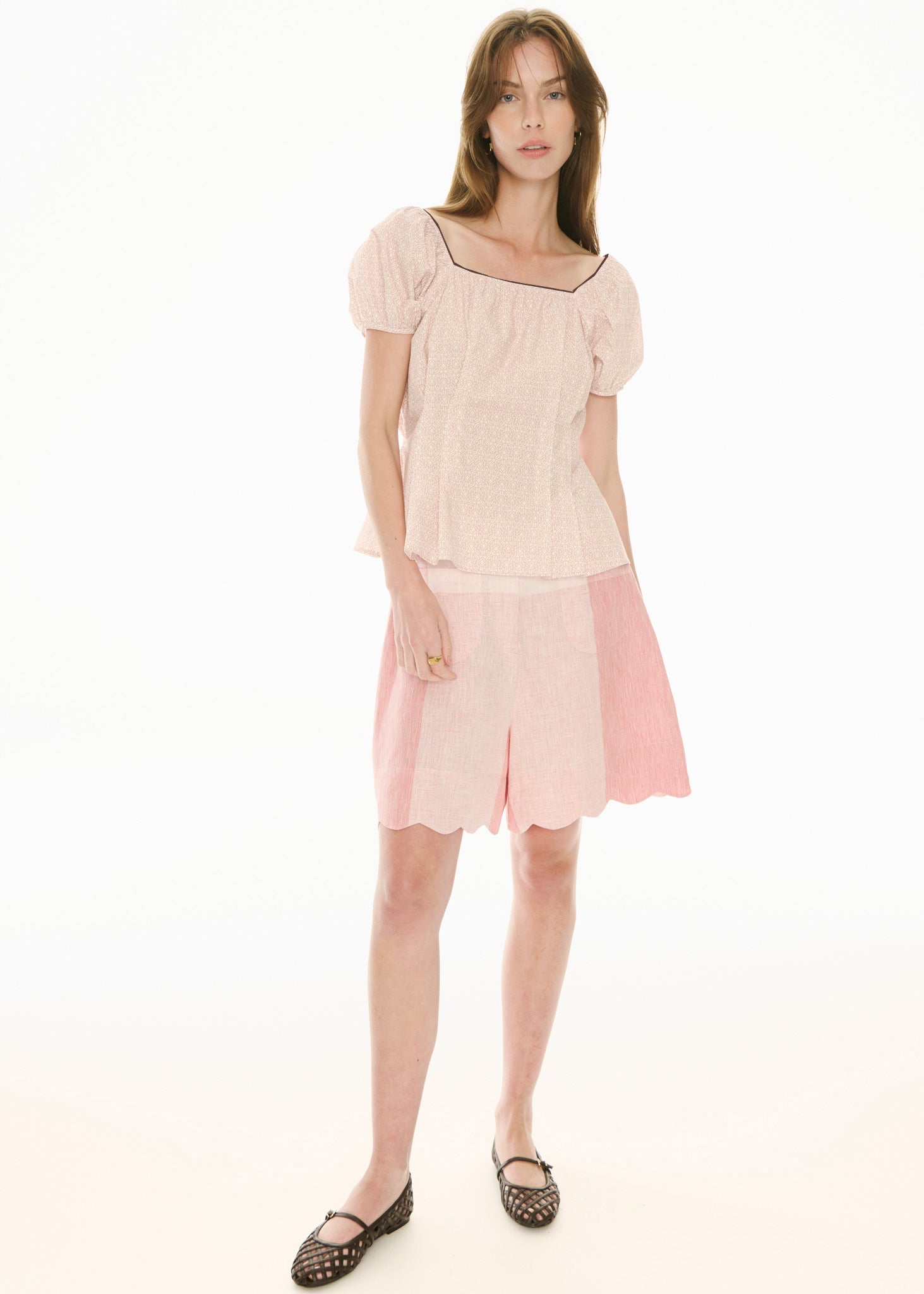 These shorts are absolutely stunning! We love everything about them, the length, the pink gingham colour combo and the sweet scallop hem!