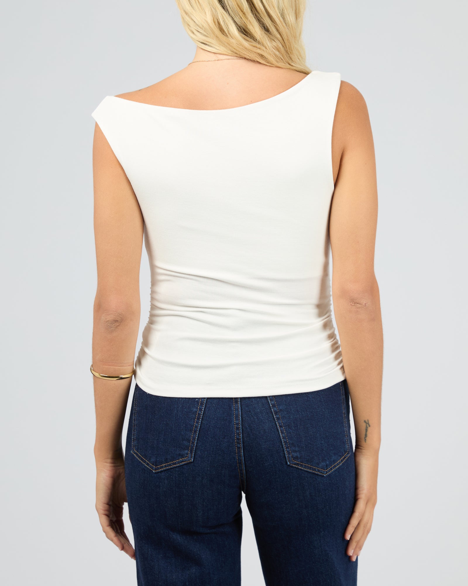 This off-shoulder stretch top combines effortless style with a comfortable fit. Crafted from a soft, stretch fabric, it hugs the body while the asymmetric off-the-shoulder design adds a touch of elegance to any outfit.