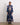 A stunning navy event dress featuring the delicate whisper of baroque-inspired florals, creating a celebration of romance, enduring style, and a bold statement of sophisticated grandeur.