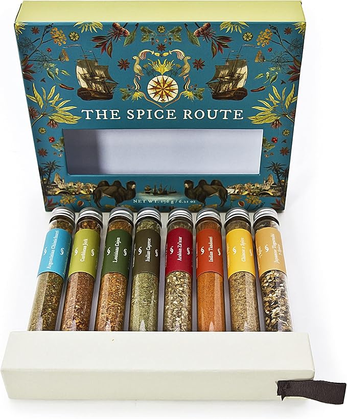 A gift box of 8 exotic spice blends - a collection allowing you to add the heat of Indian Tandoori or the freshness of Mediterranean Italian Caprese.