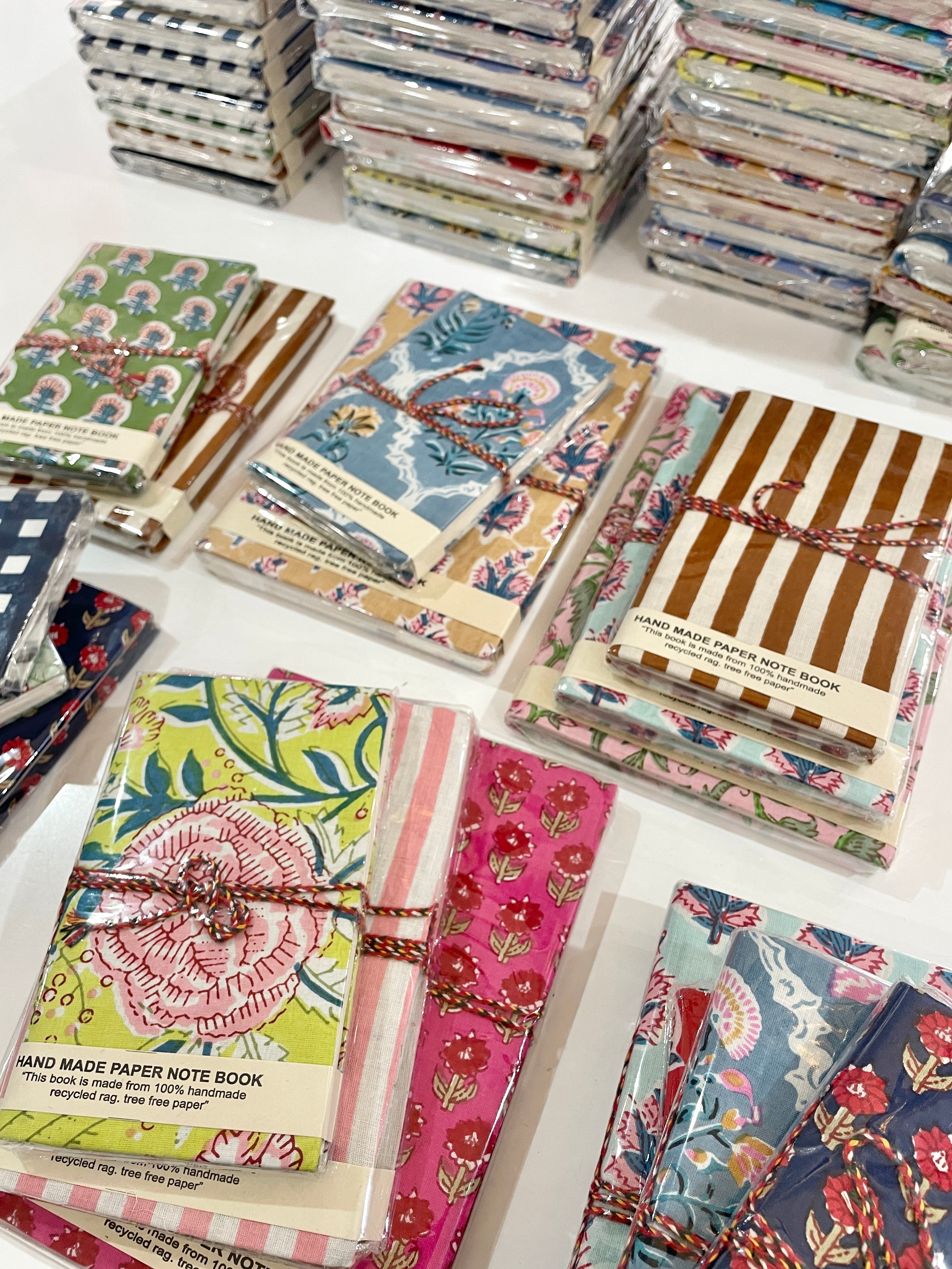 Our gorgeous fabric covered tree free -note books are here!