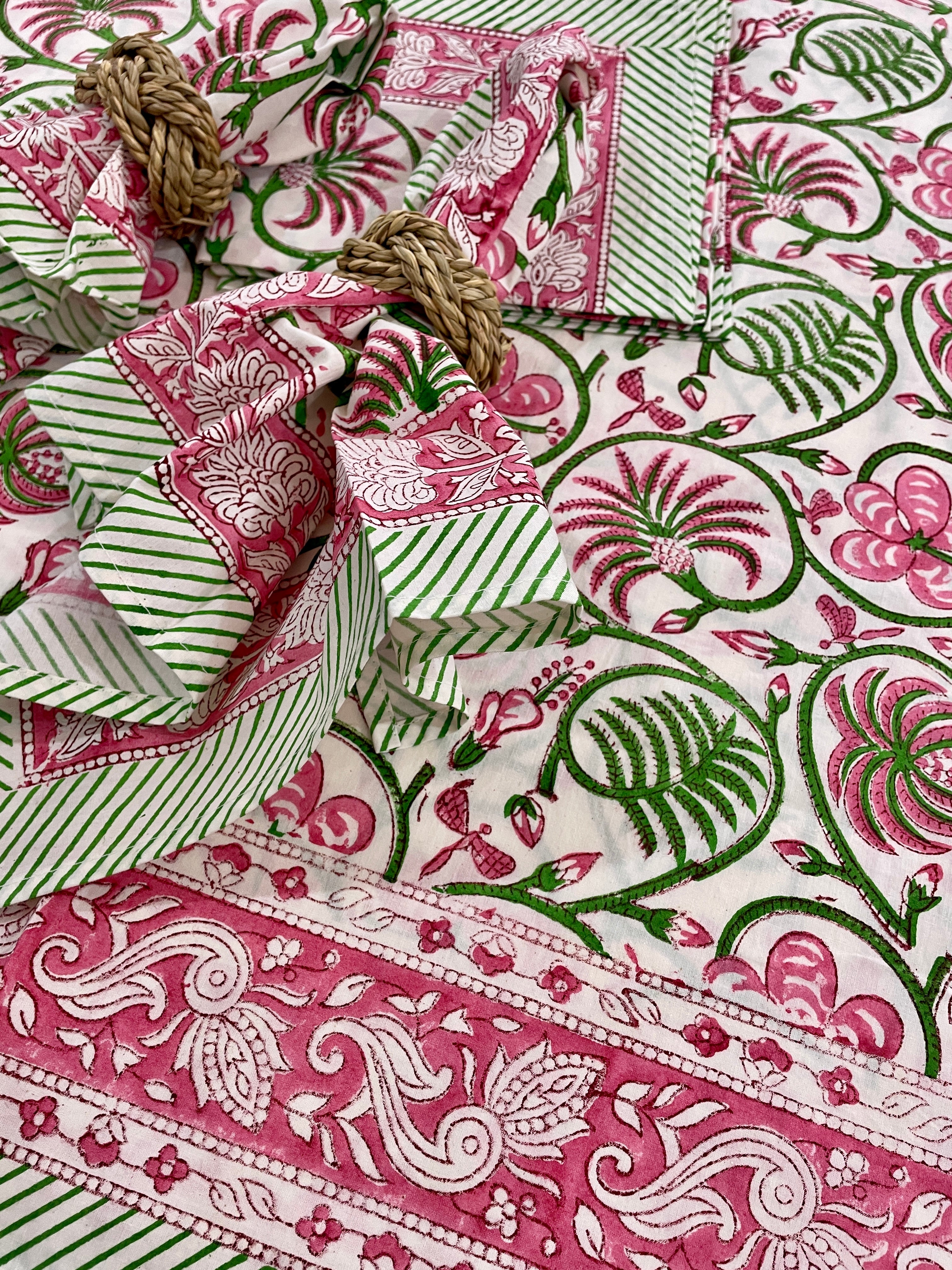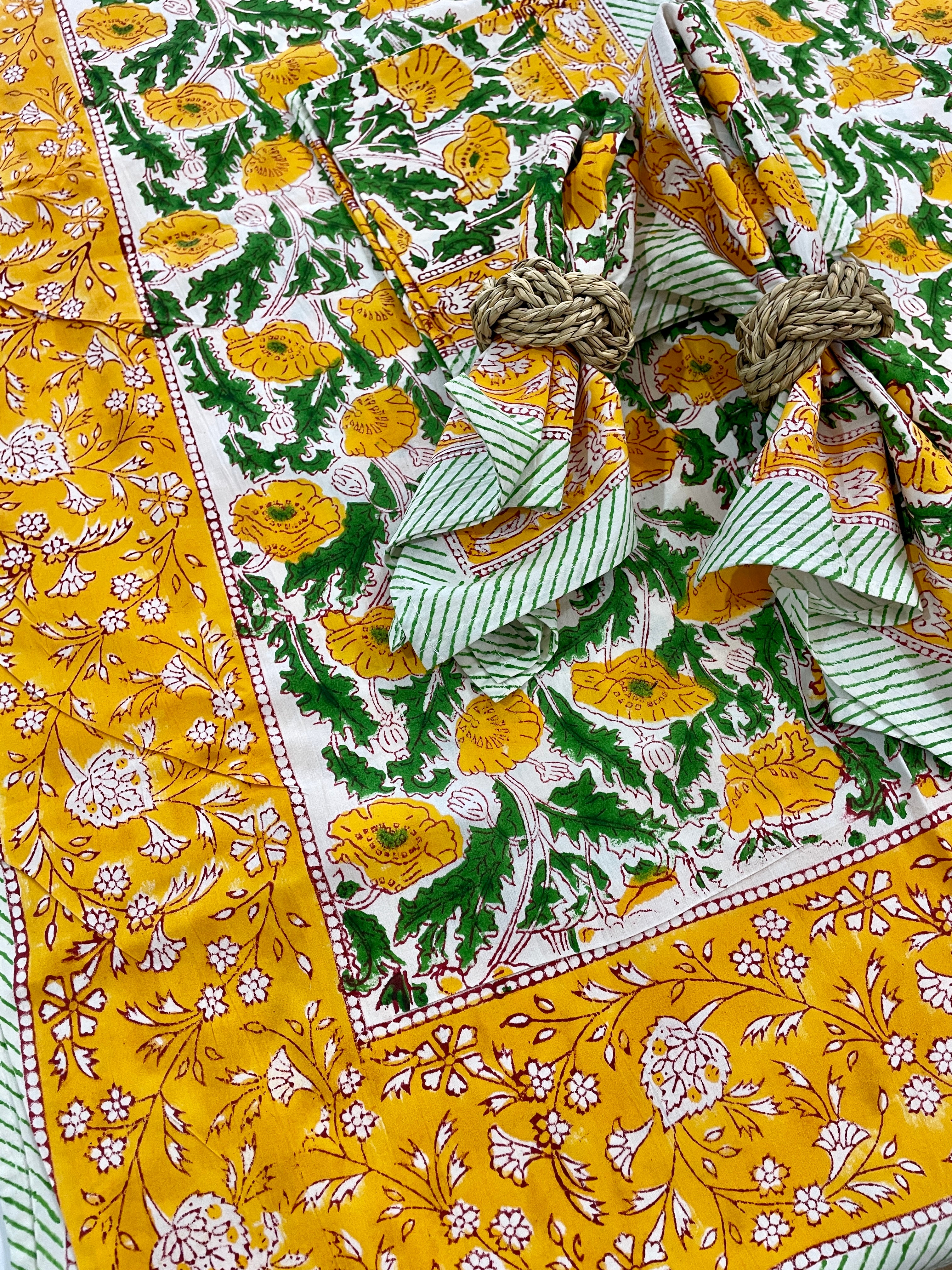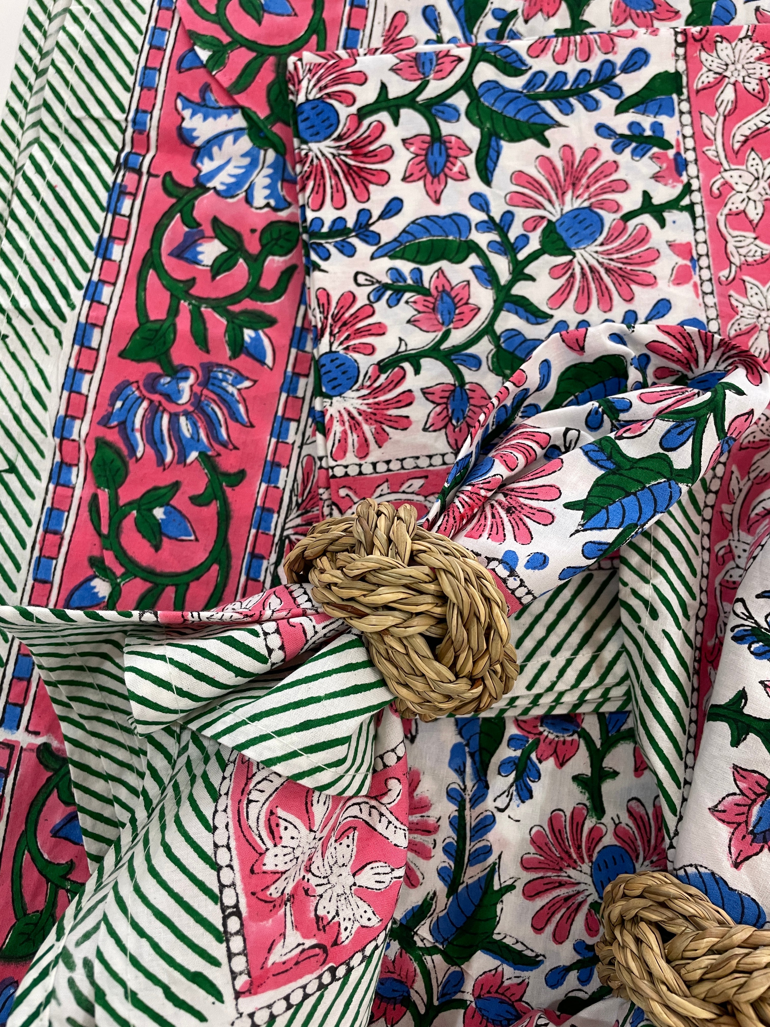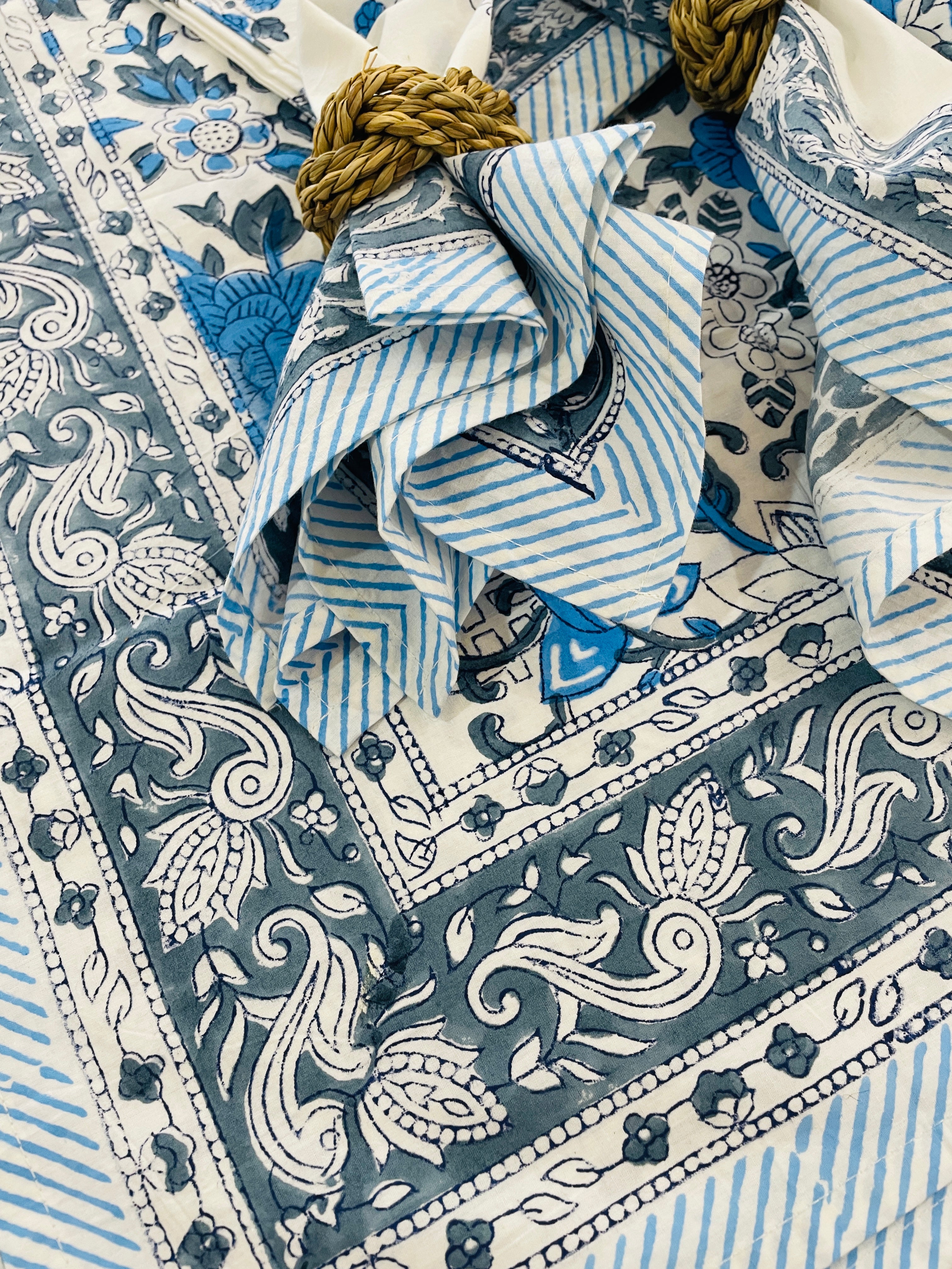 Introducing our new tablecloths, crafted from a beautiful midweight cotton and featuring unique block print designs, they are as unique as they are practical!