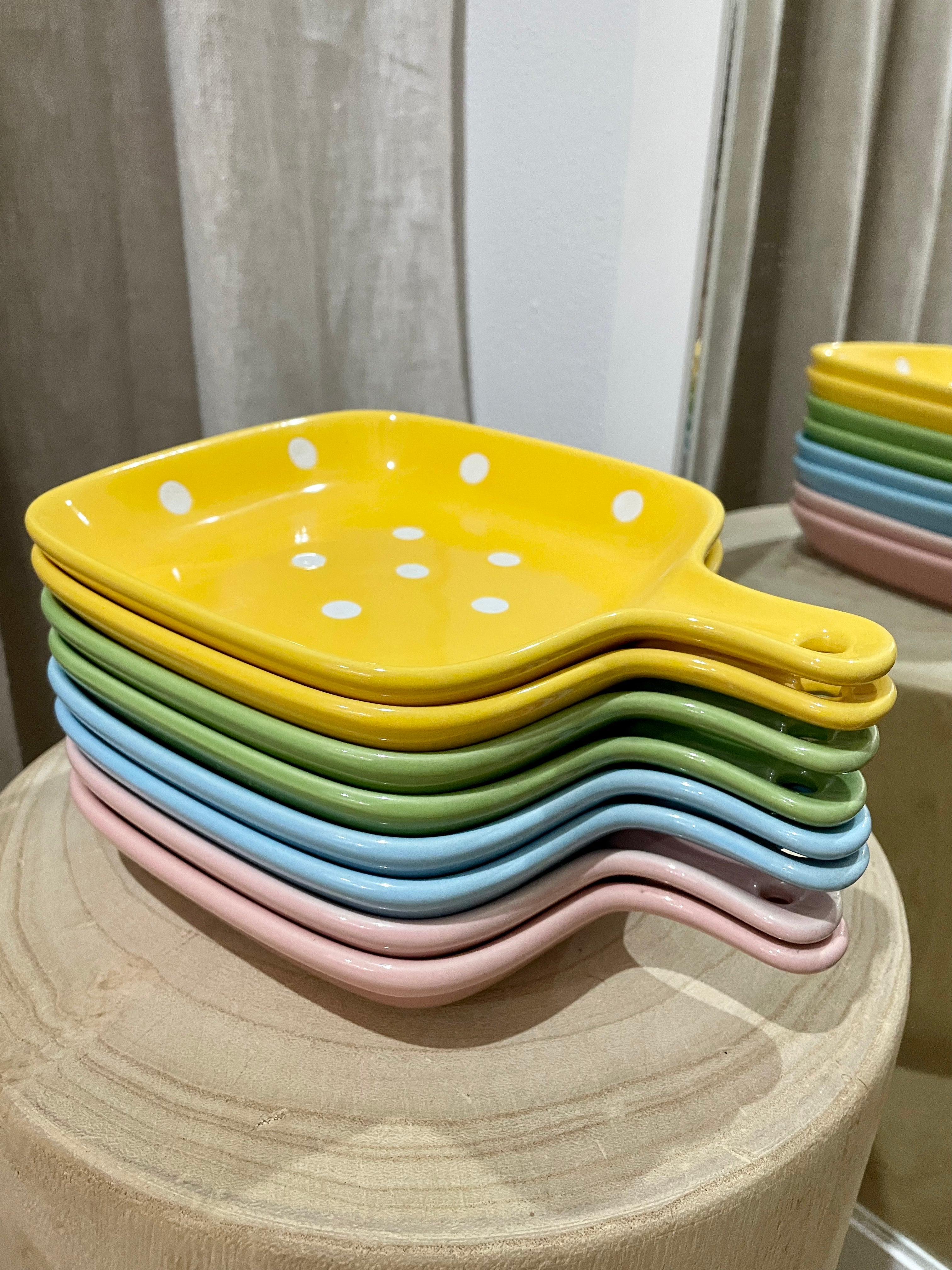 These cute, modern square tapas plates are perfect for serving small bites, appetizers and sharing plates. We love them piled with mini sweet treats too!