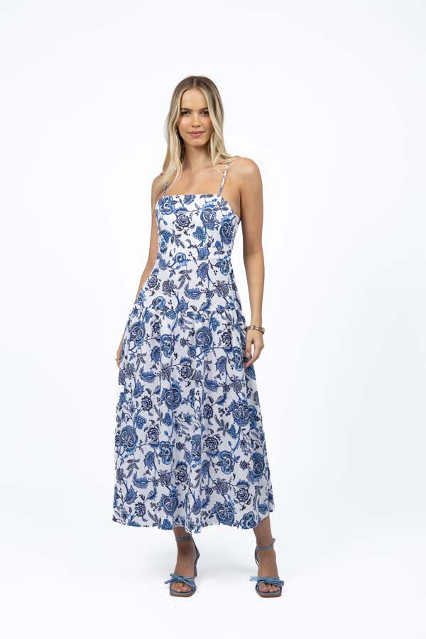 Midi Length Dress Adjustable straps Back elastic panel for comfort fit Invisible Side Zip Under Bust Panel A Line Skirt