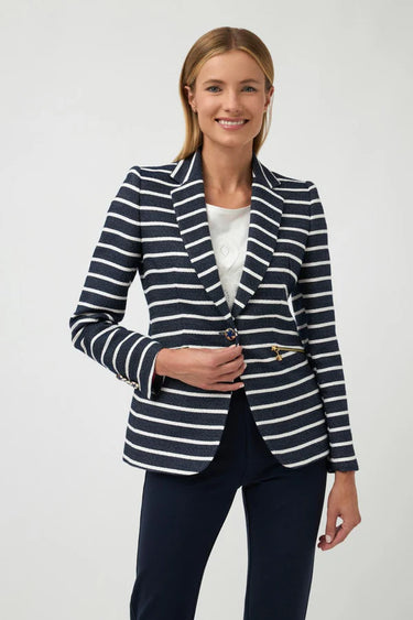Made In Spain Mid Weight Blazer Long Sleeve Navy White Stripe Size Guide These jackets are a small fit. Size 40/8, 42/10, 44/12, 46/14, 48/16