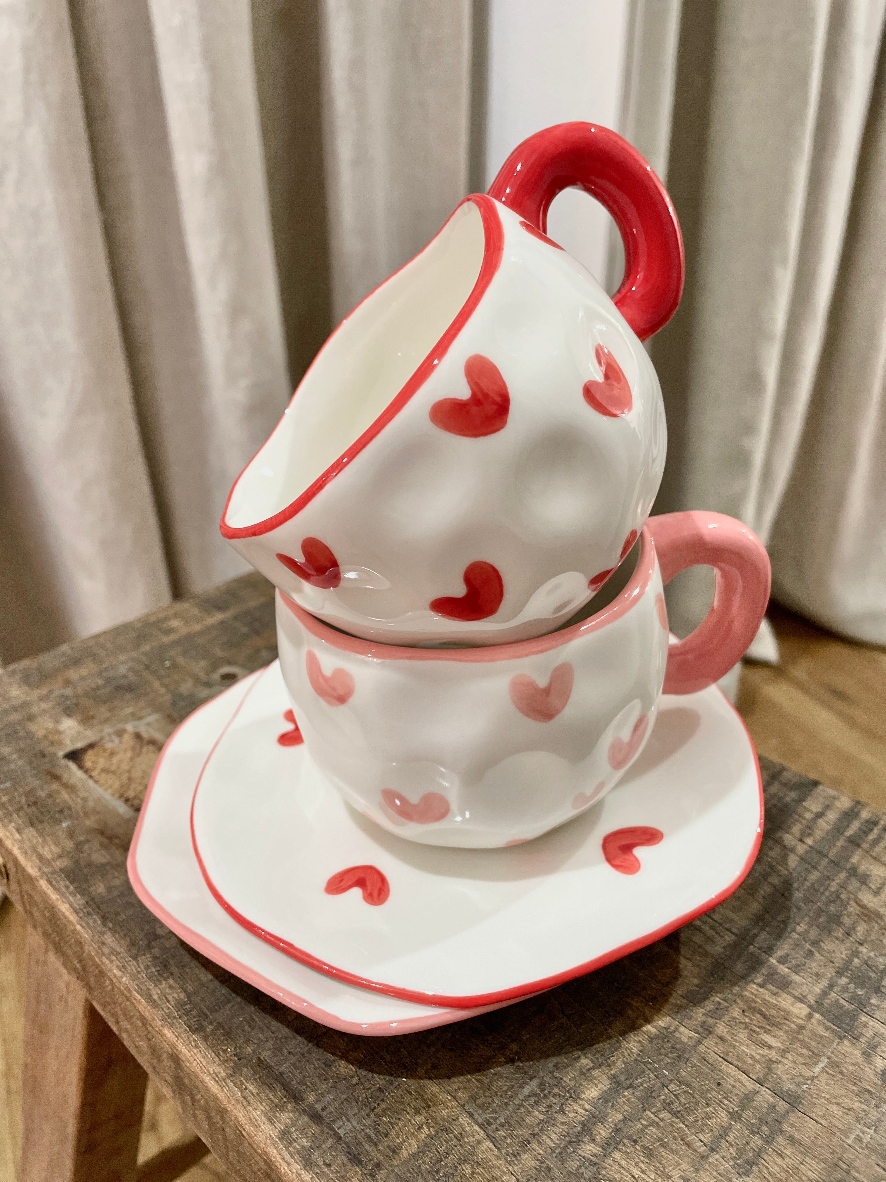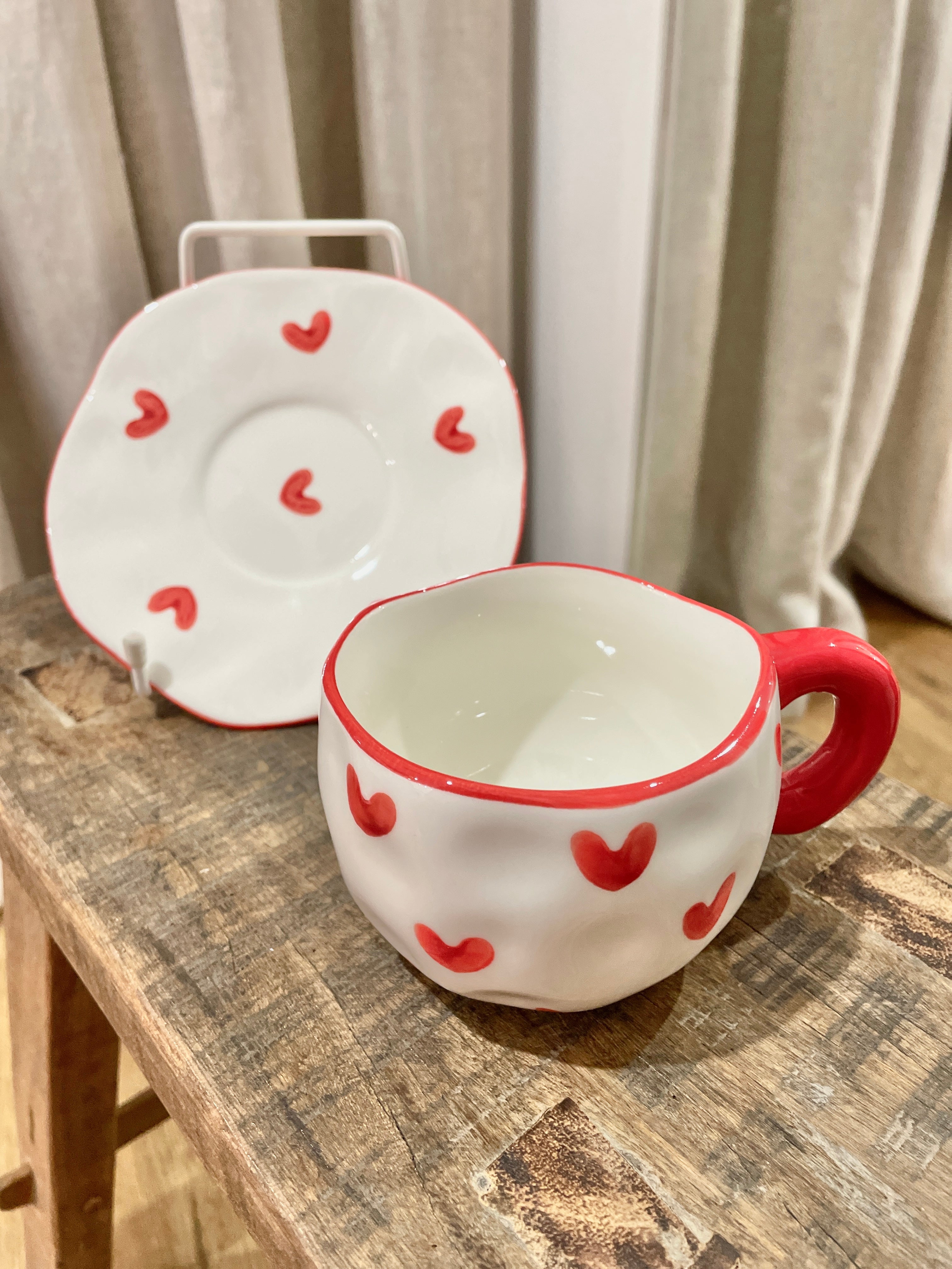 Organic Handmade Shaped Mug Capacity 250ml Handle 15cm Saucer
