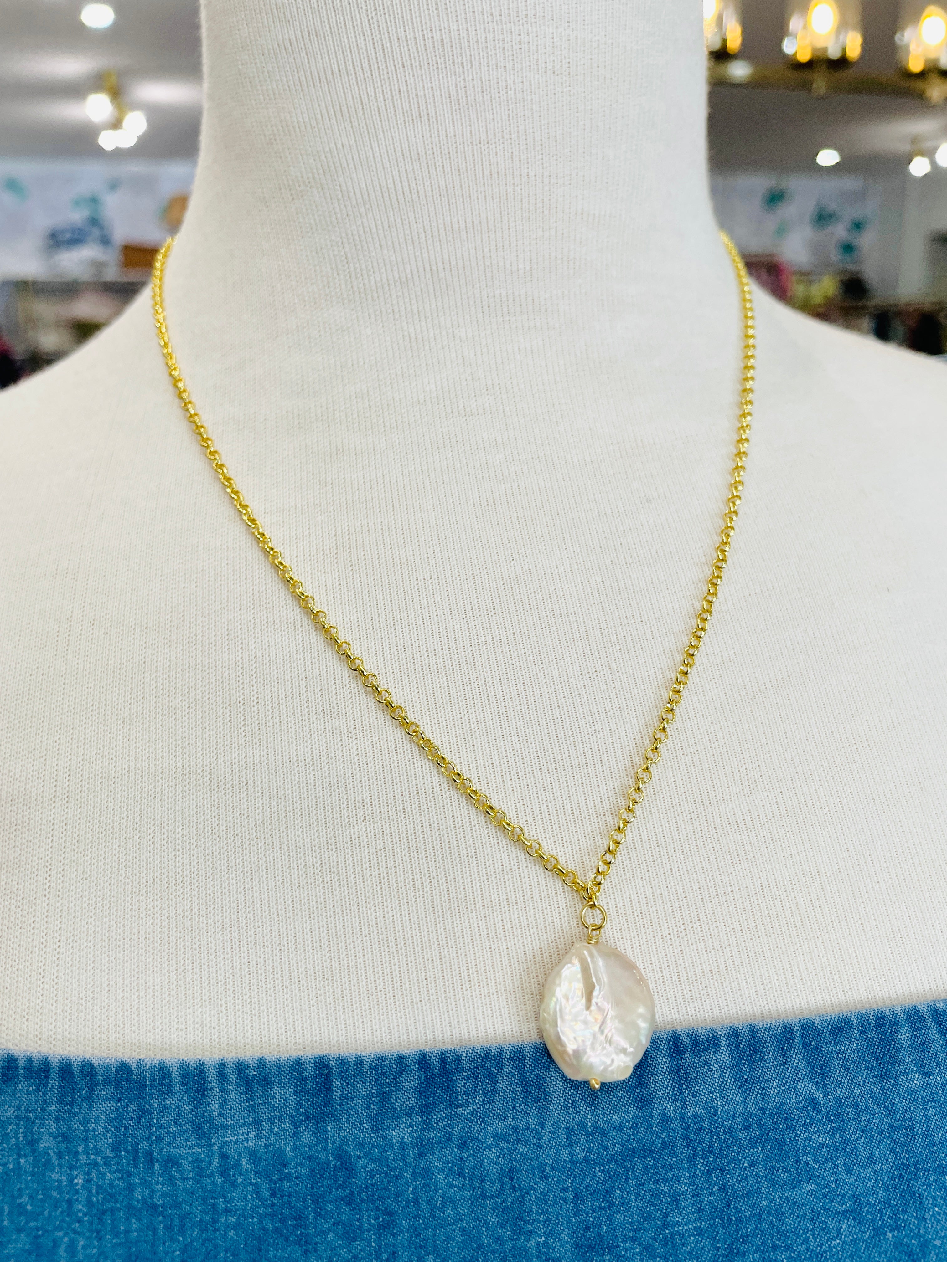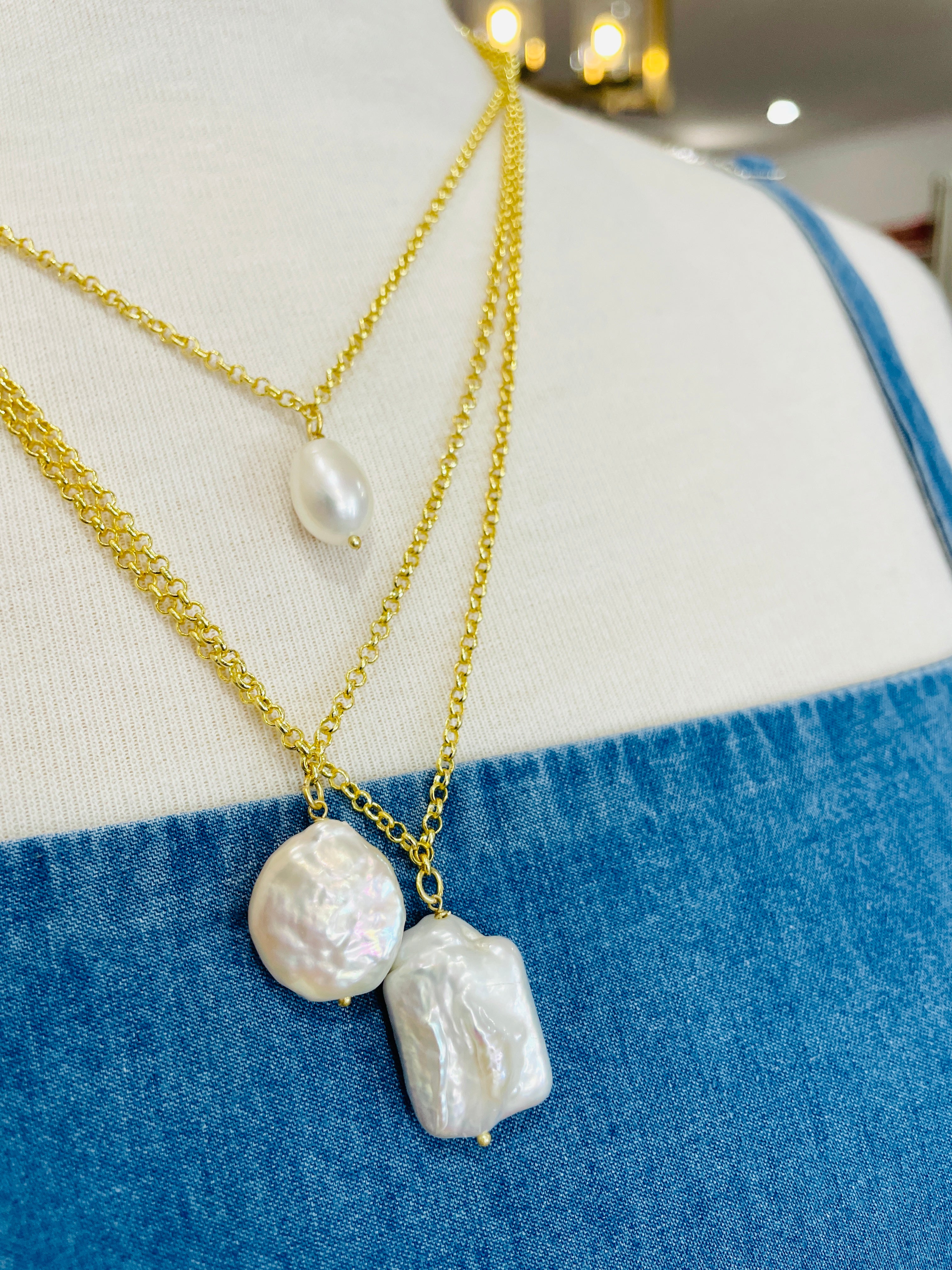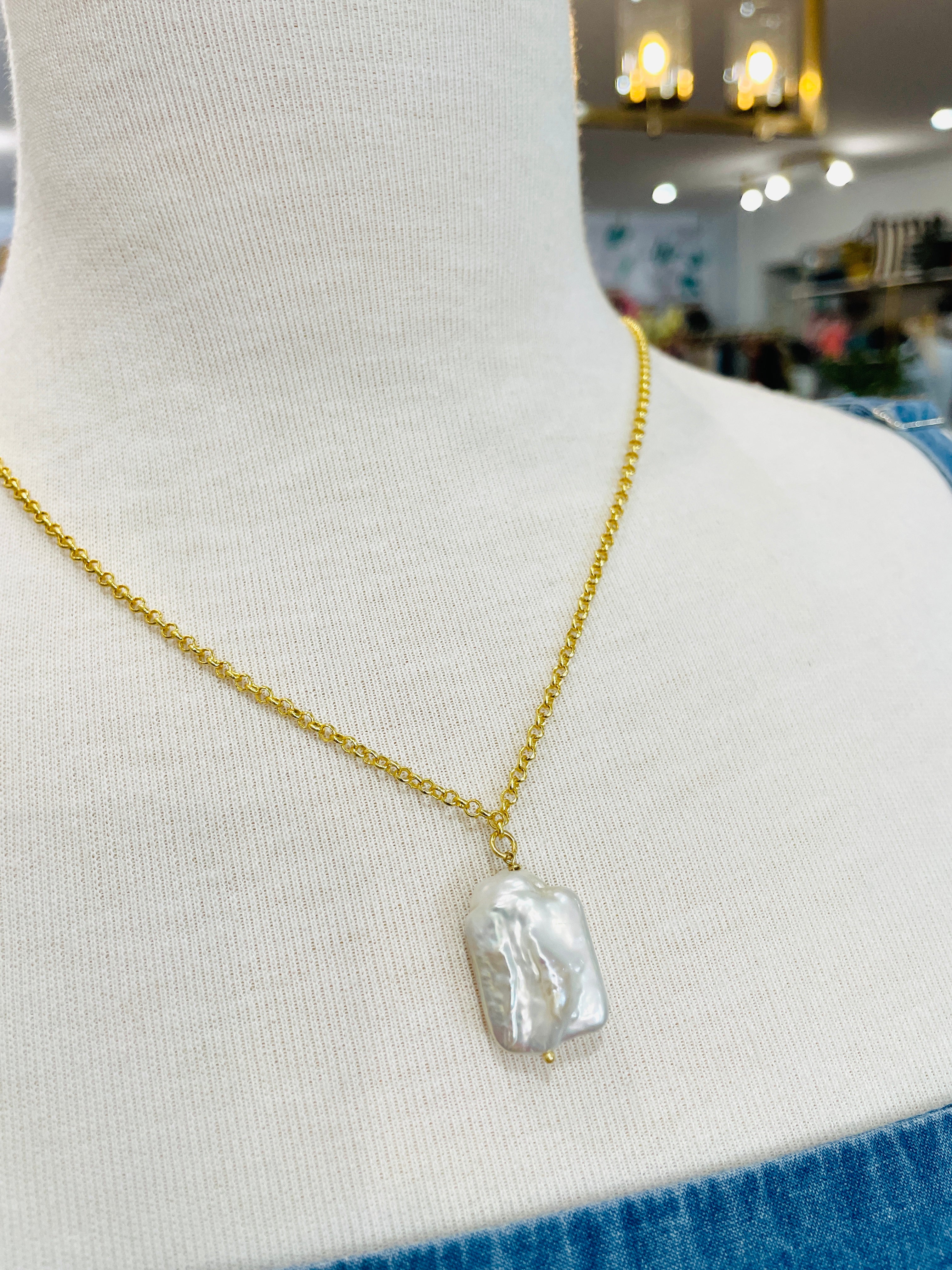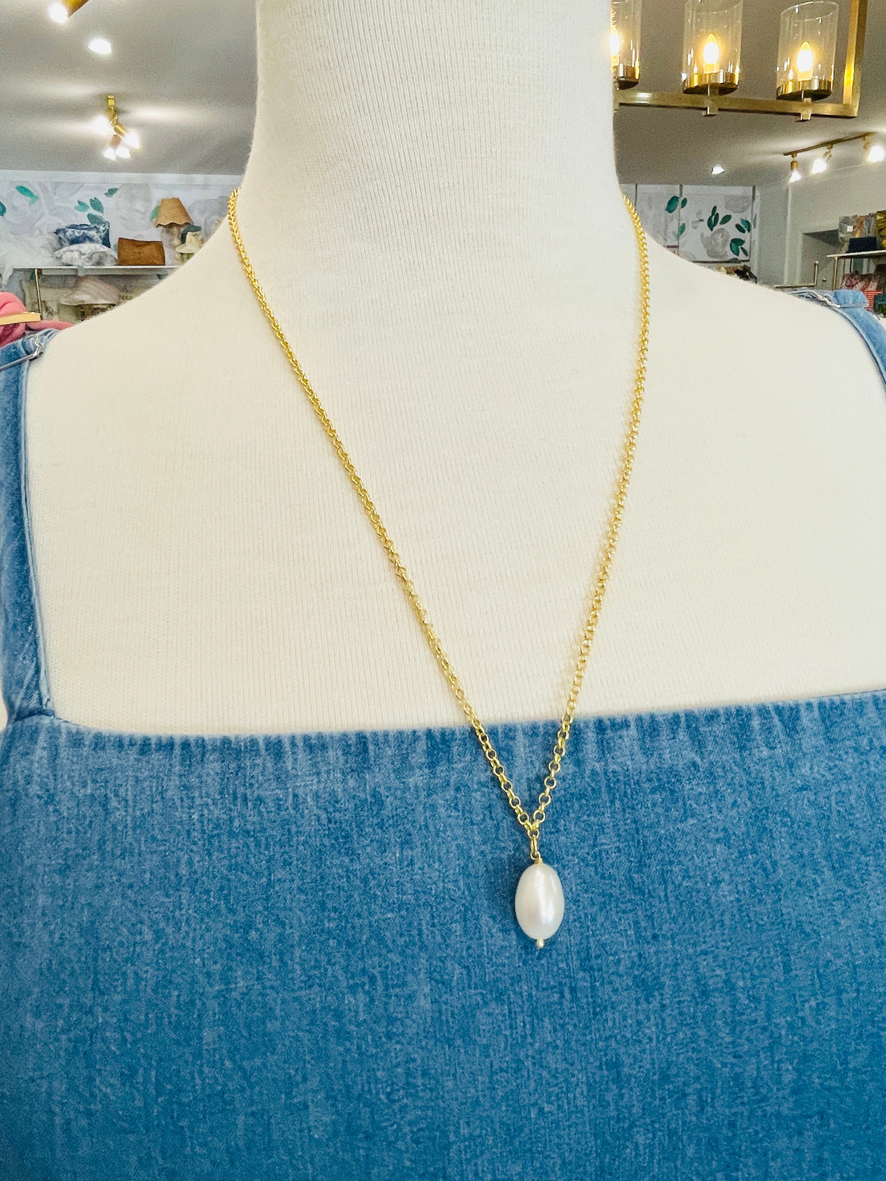 Pendant Style Pearl Necklace Can be worn at a length between 51cm - 57cm Approx Size Guide Each Pearl is genuine and therefore variations will occur. Oval - 13mm x 11mm Round - 17mm Rectangle - H20mm x W13mm