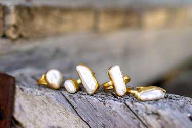 These individually unique rings are crafted from genuine freshwater pearls. They make a gorgeous gift, they have been set on an adjustable band to ensure the perfect fit for any finger.