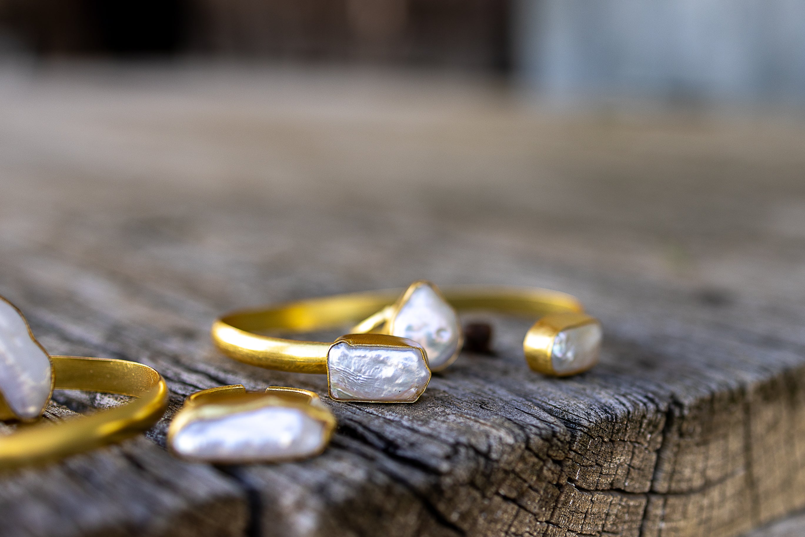 A unique pearl cuff that is minimal but makes a maximum impact for your day or evening outings.