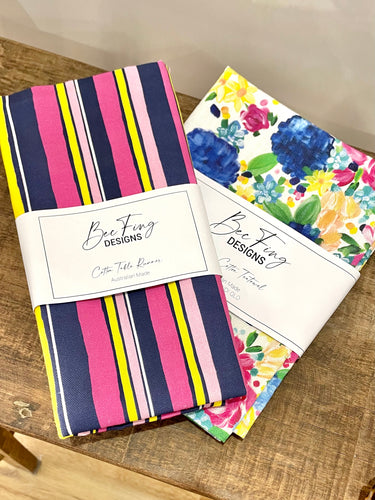 Bec Fing Designs Table Runner Navy Pink Stripe