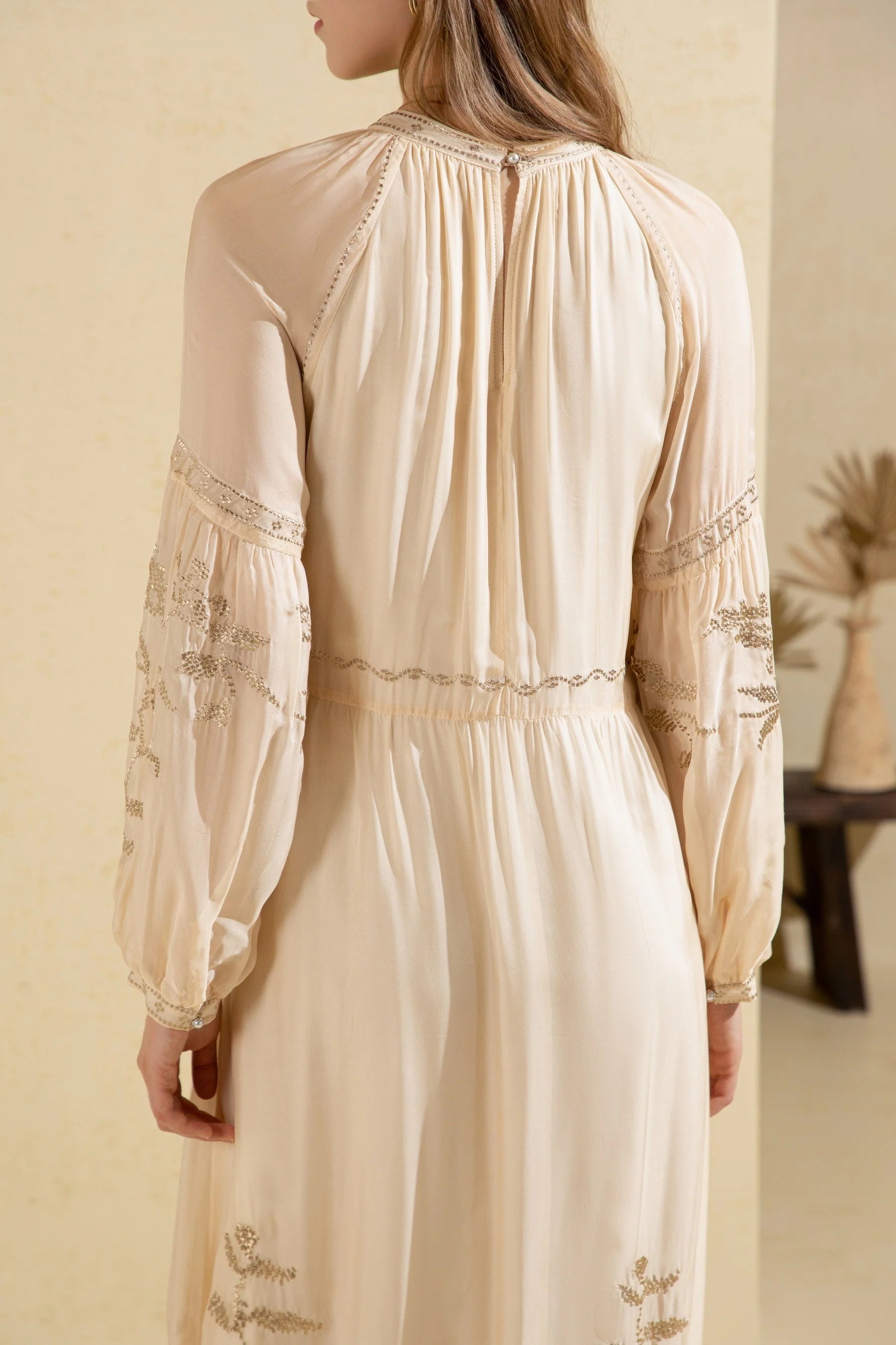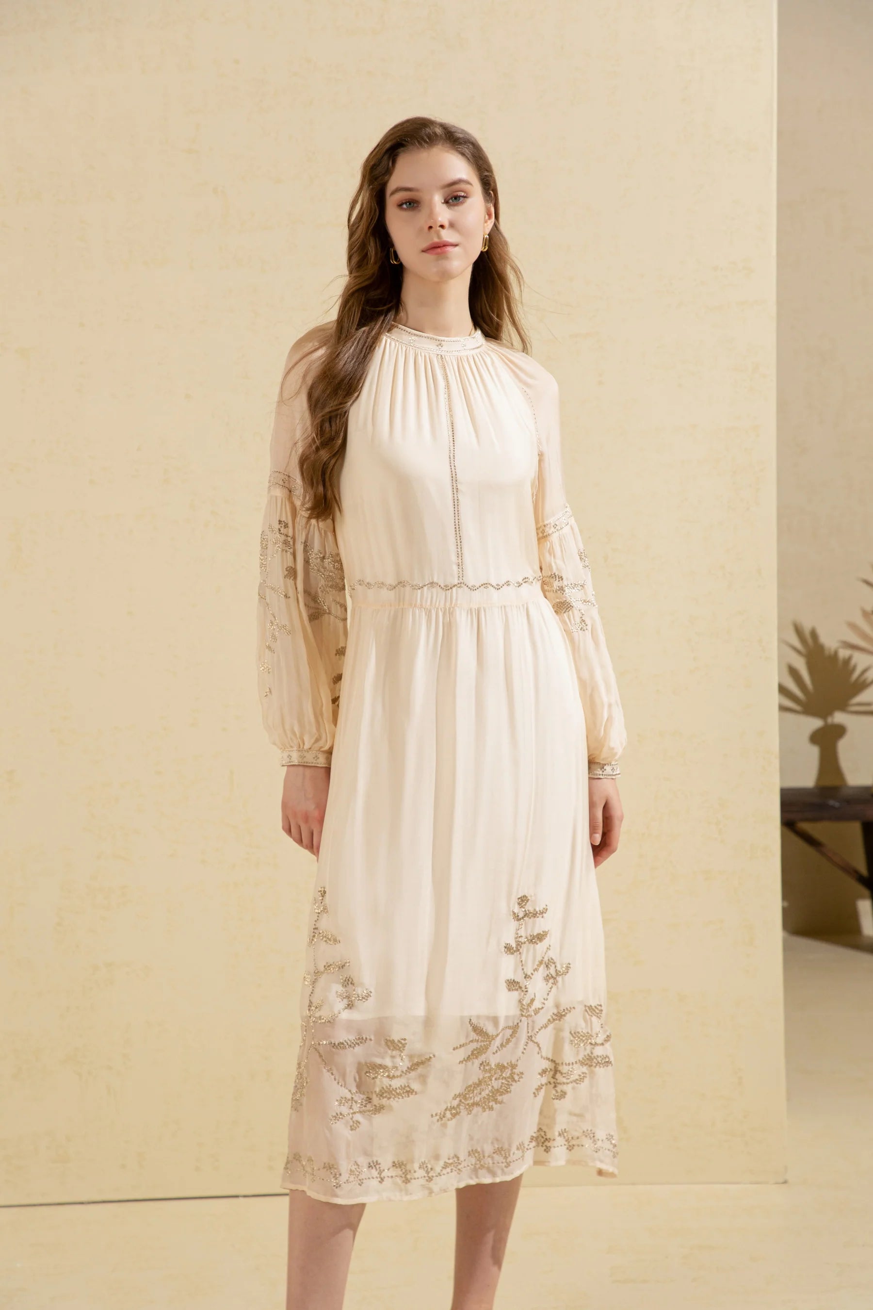 Oliviane Embroidered Dress Beige