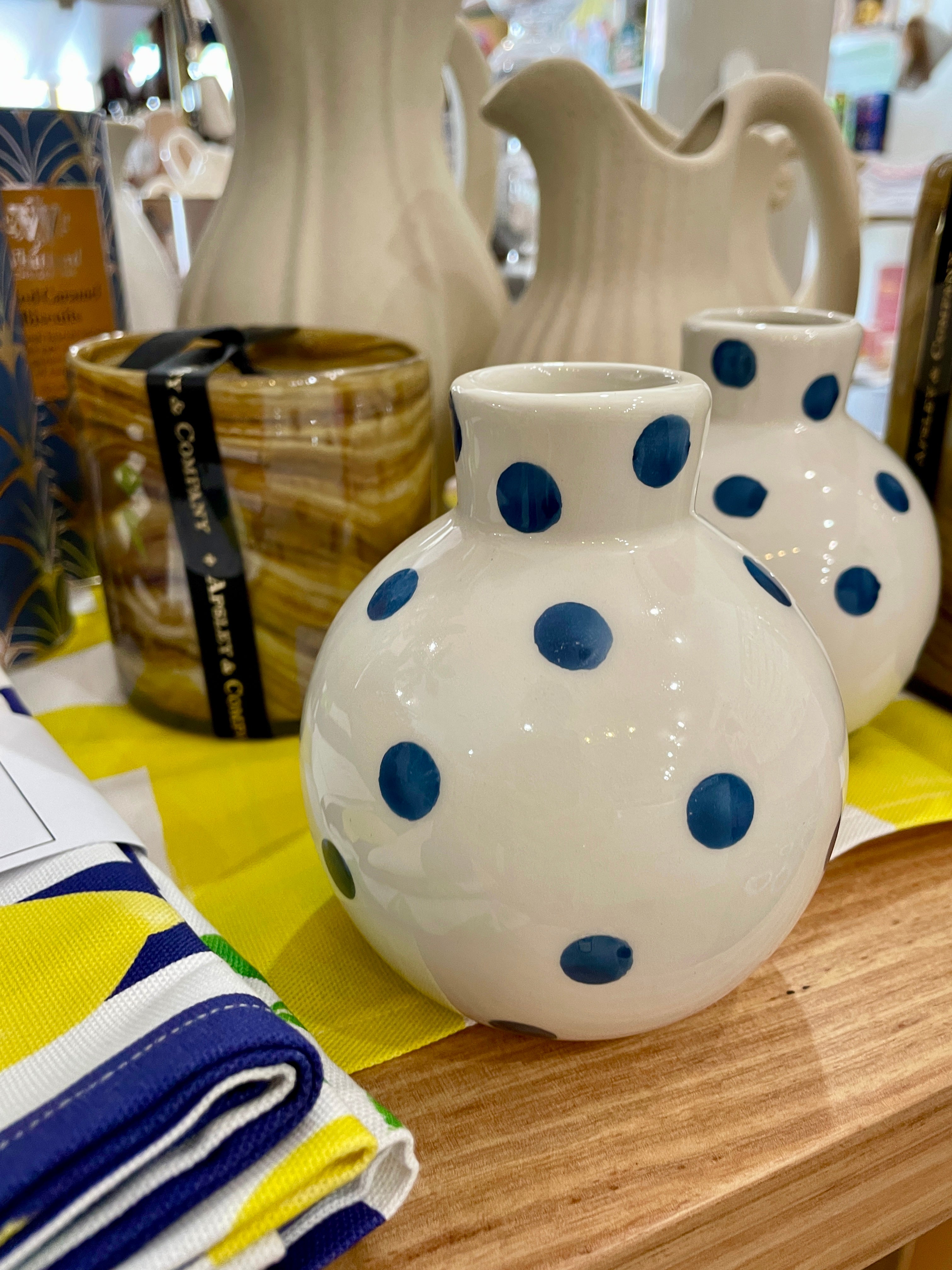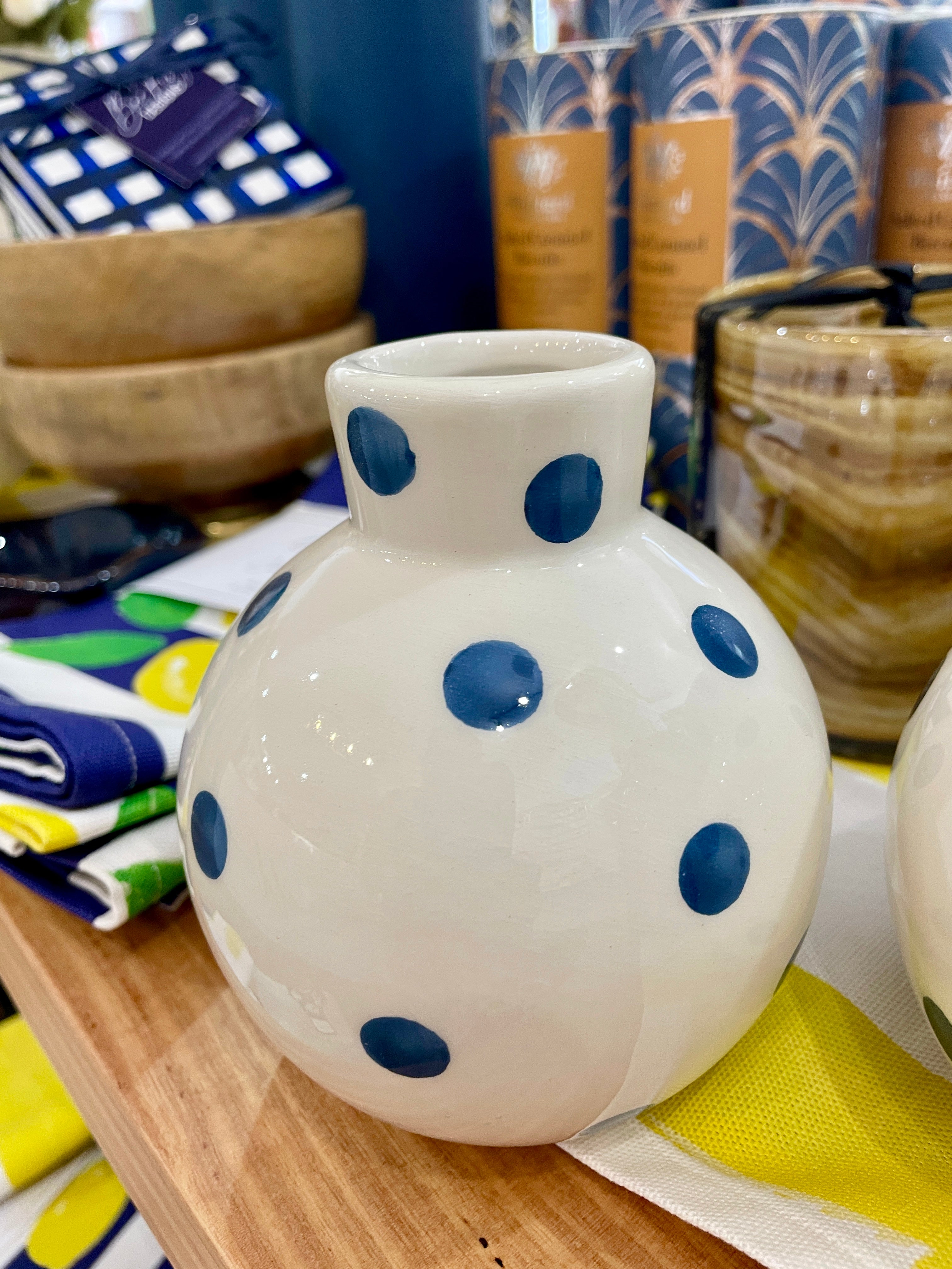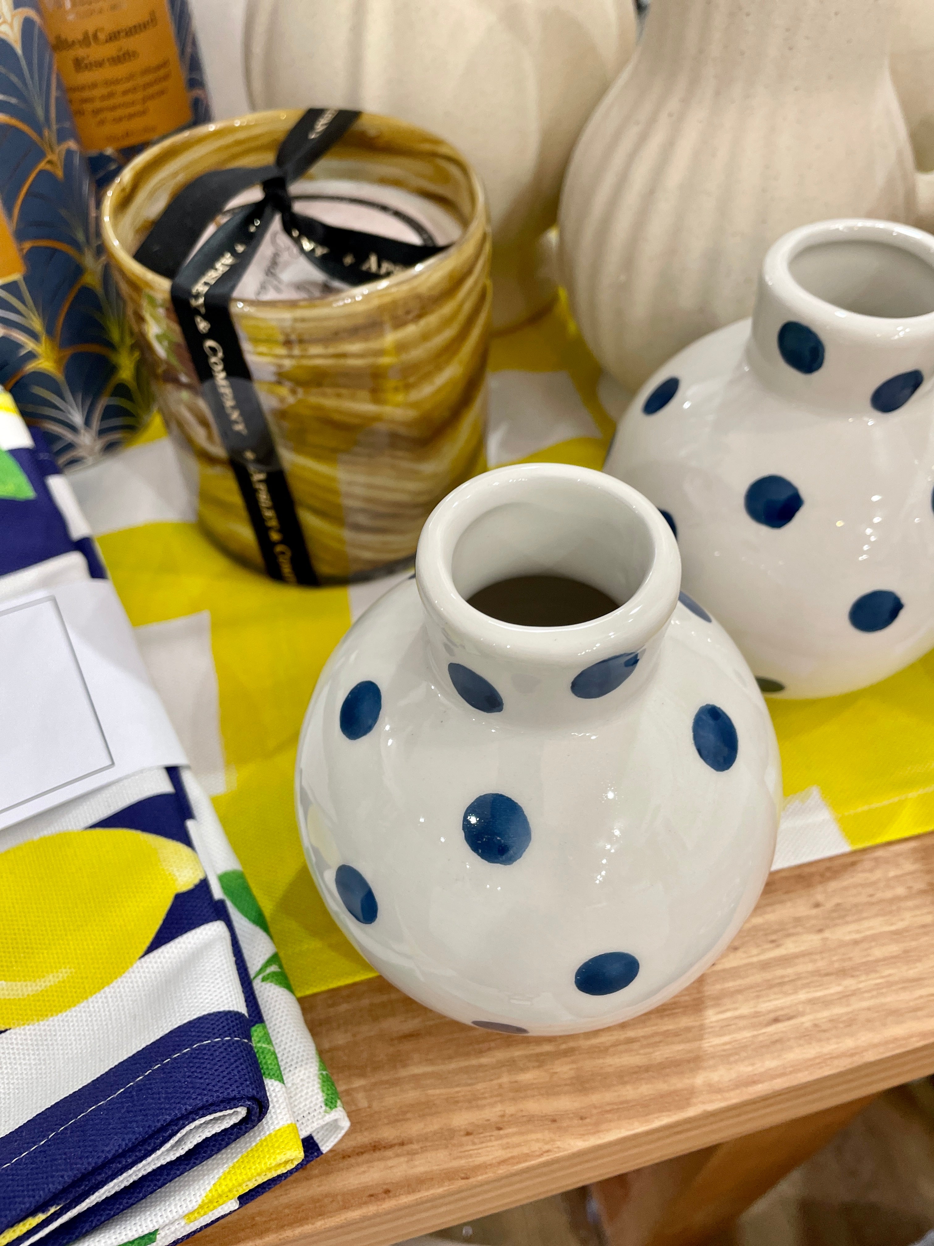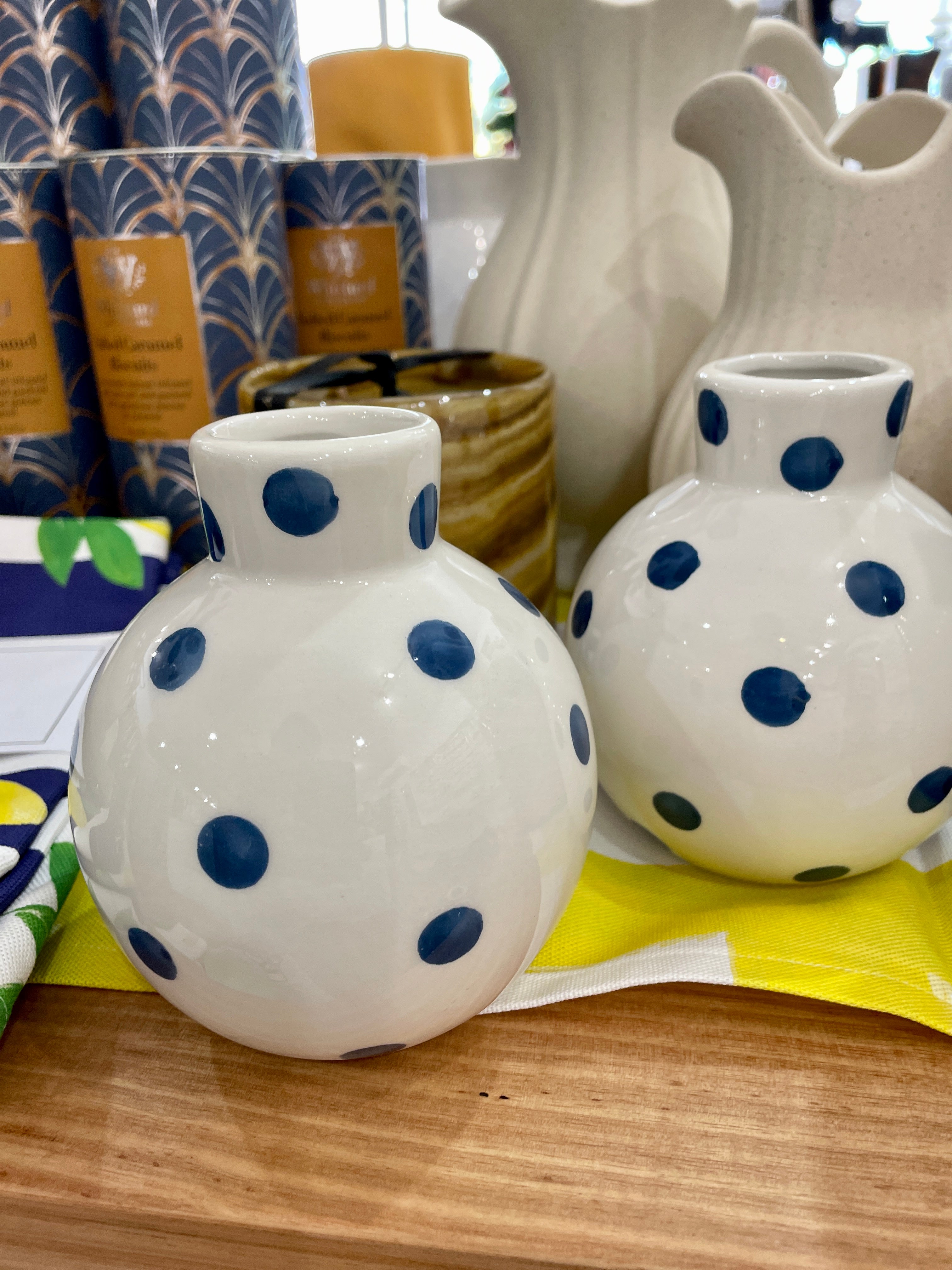 Hand Painted Blue Spot vase Height 11 cm approx x W10cm approx Neck Opening 4cm