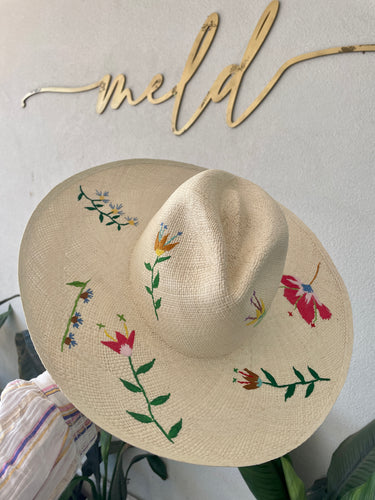 Made in Ecuador Size M (58cm) Adjustable Band Fedora Panama Embroidered Floral Feature Individually Unique 12cm Brim - approx