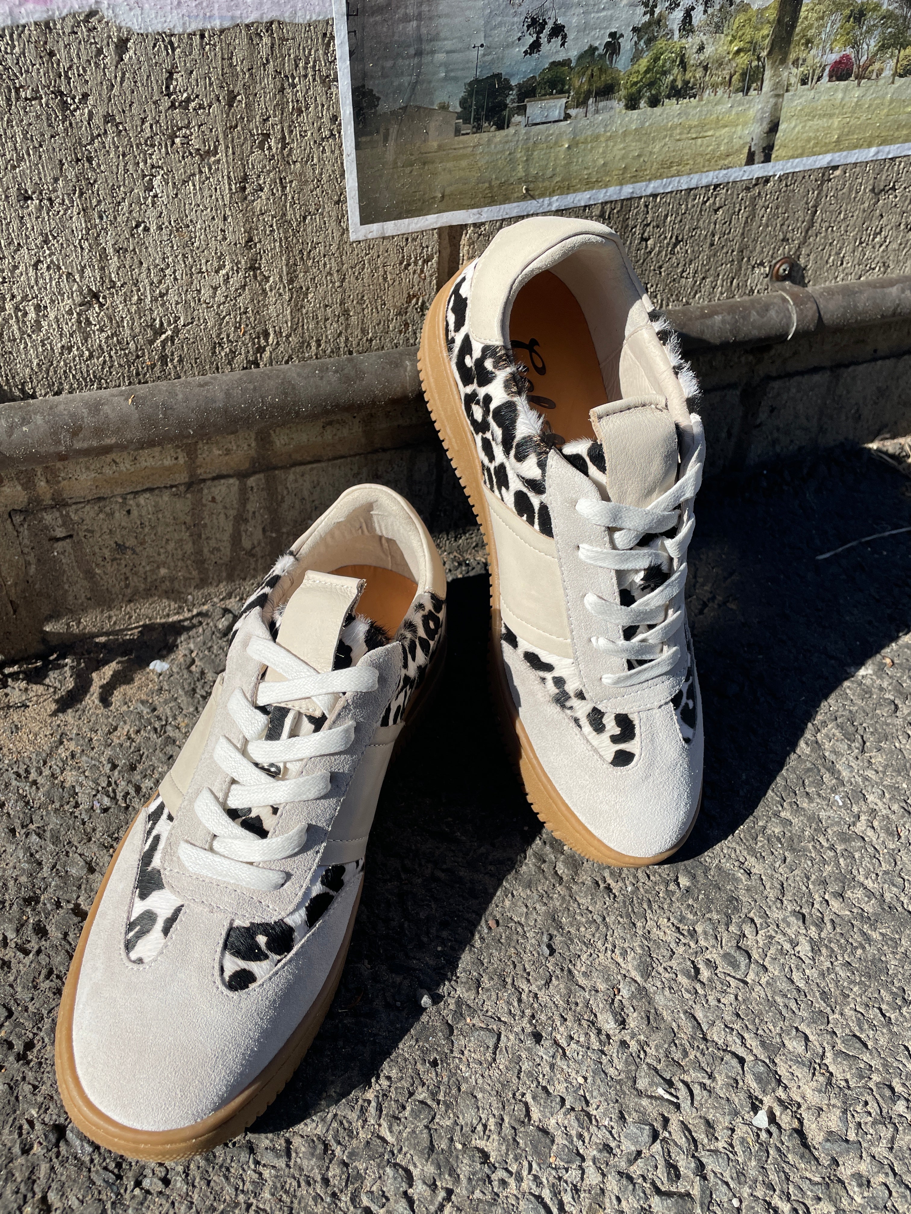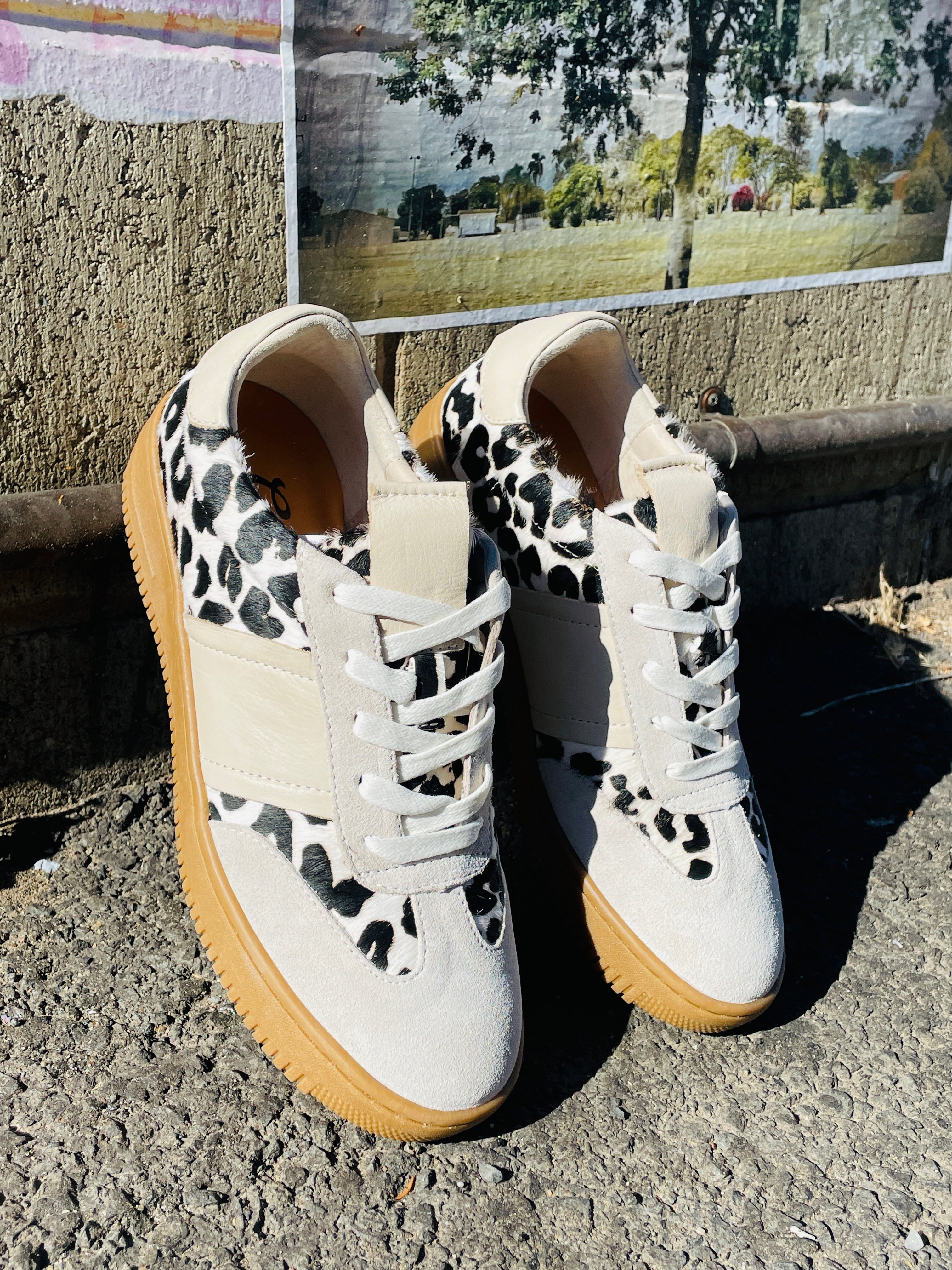 Hair On Leopard Print Lace Up Leather Sneakers Cushioned, Comfort Support Non Slip Sole