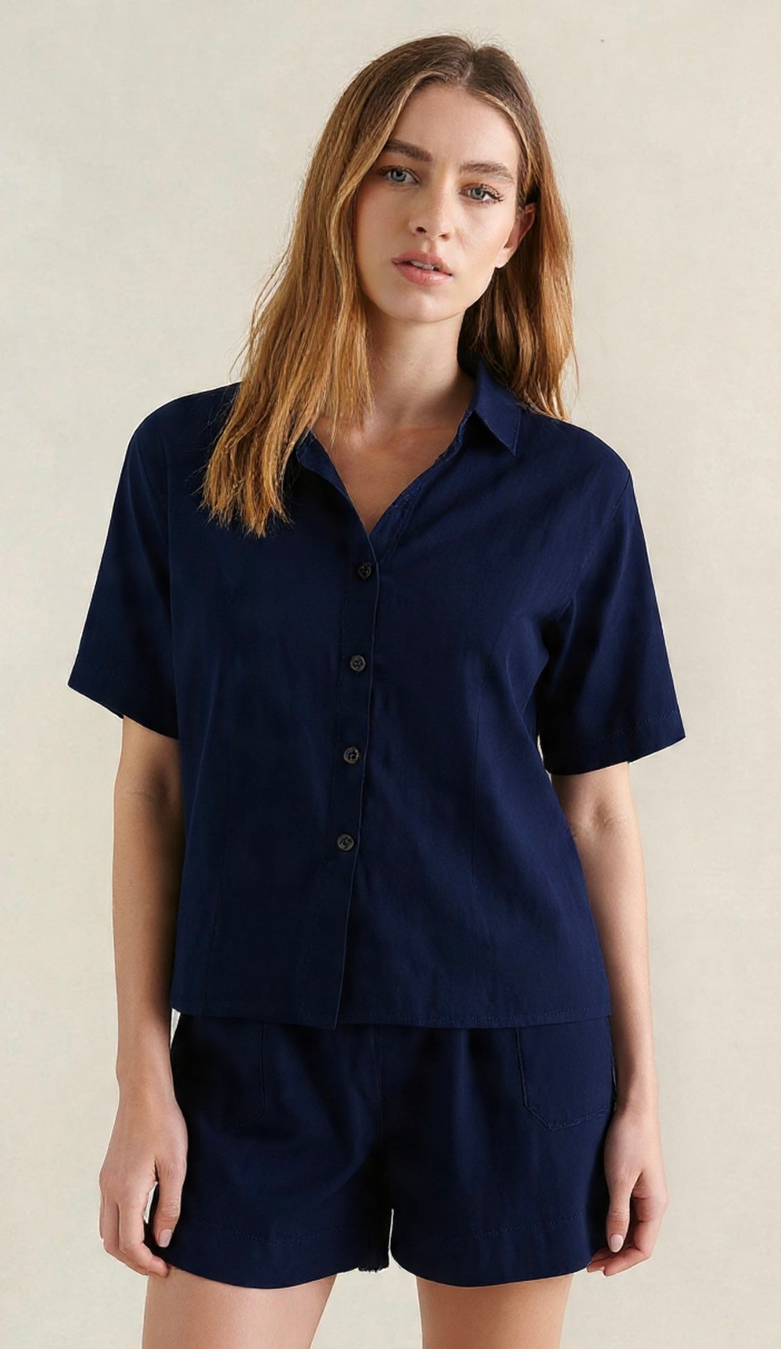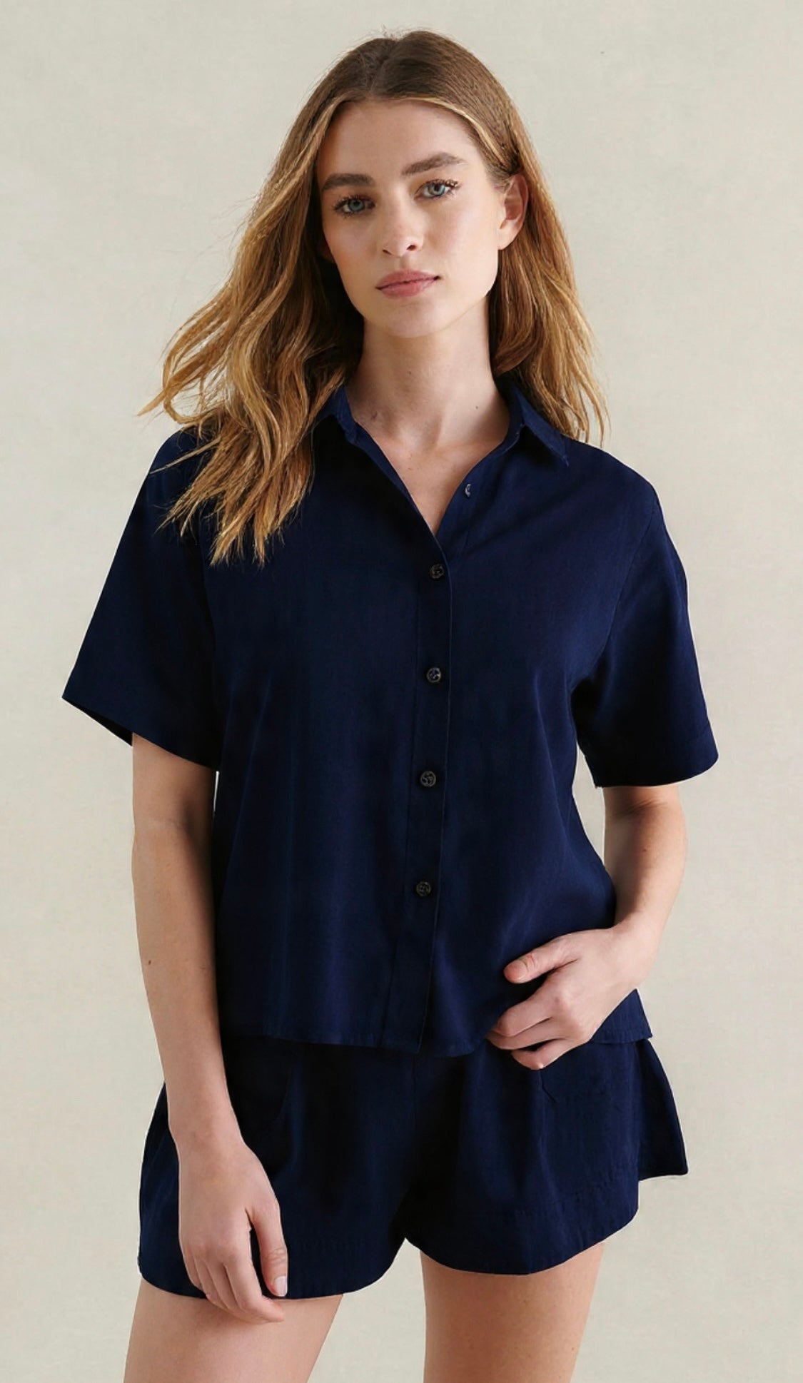 This little linen shorts and shirt are a must have - they quickly become a go to and in navy it is sure to be a favourite yet again. They are sold as separates make the perfect pair when worn together.