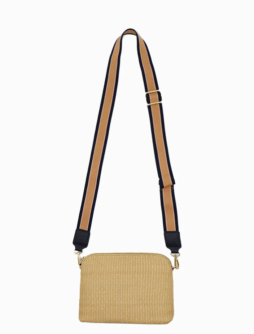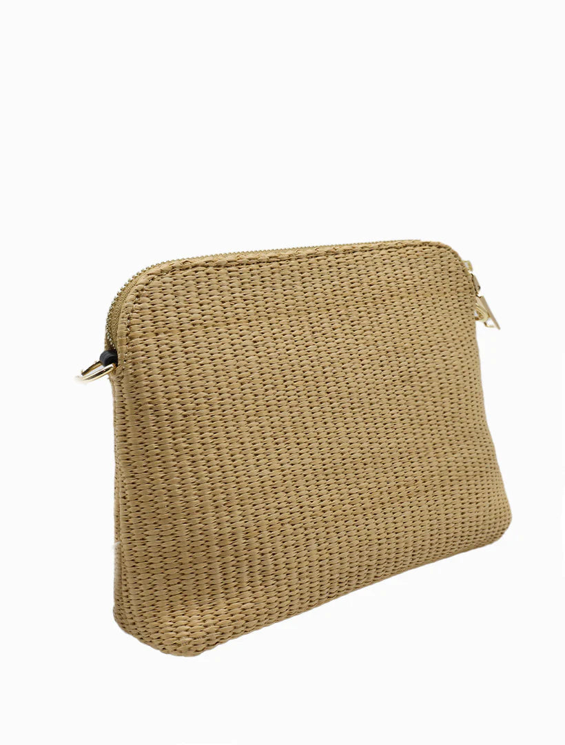 Sleek, but roomy enough for your daily essentials, this woven clutch can be converted from day to night for your evening events.