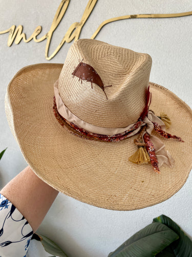 This striking cowboy chaos hat is just waiting for its forever home. With no boring bits, ad a strong unique presence, this designer hat is a one of a kind individually made to stand the test of time and our ladies love them and wear them year after year.