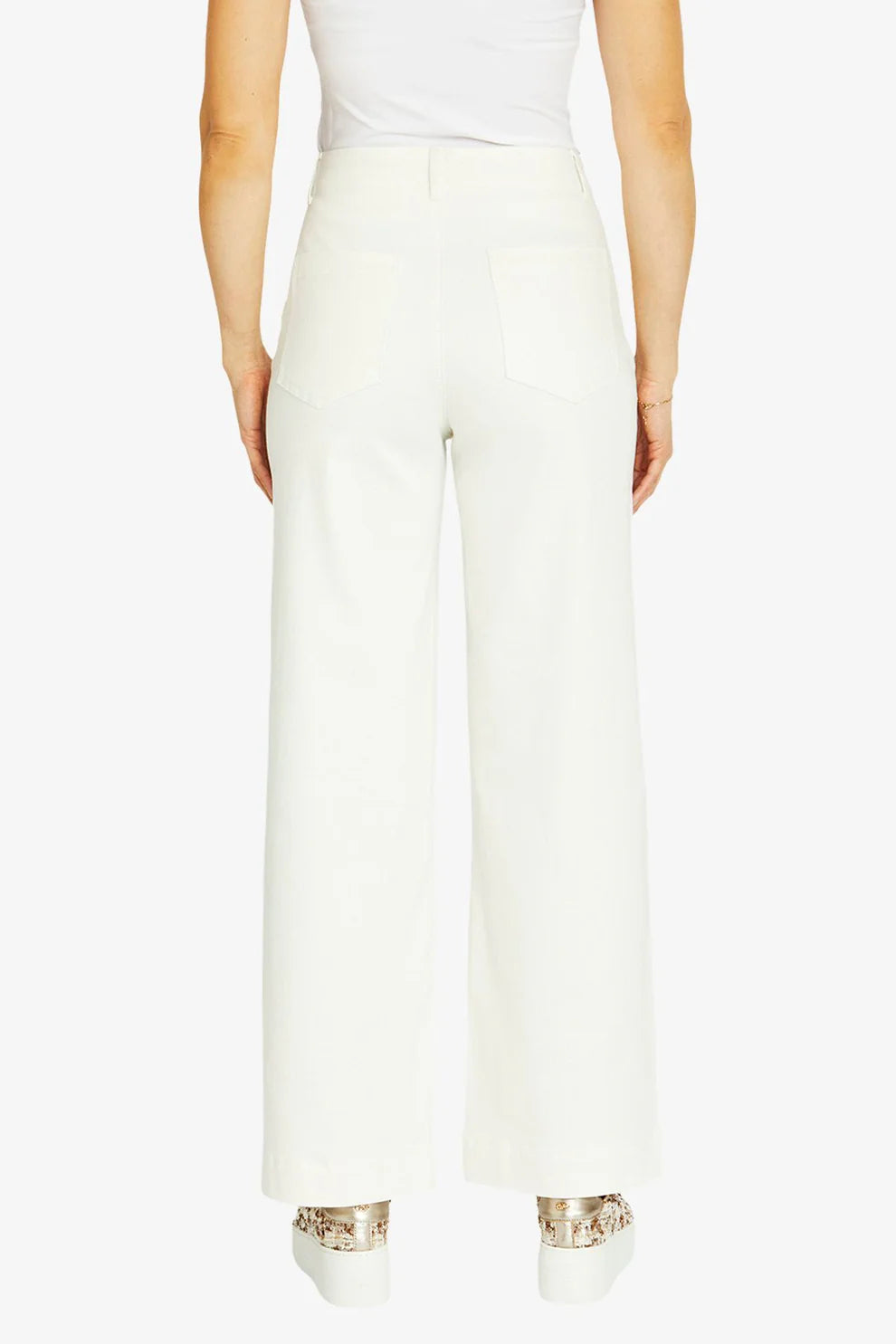 Fresh and contemporary, the Ivory Pocket Jean elevates your denim collection with its clean wide-leg silhouette. Finished with a classic zip-fly front and silver button closure, this versatile style pairs seamlessly with tanks, knits, and tailored tops alike.