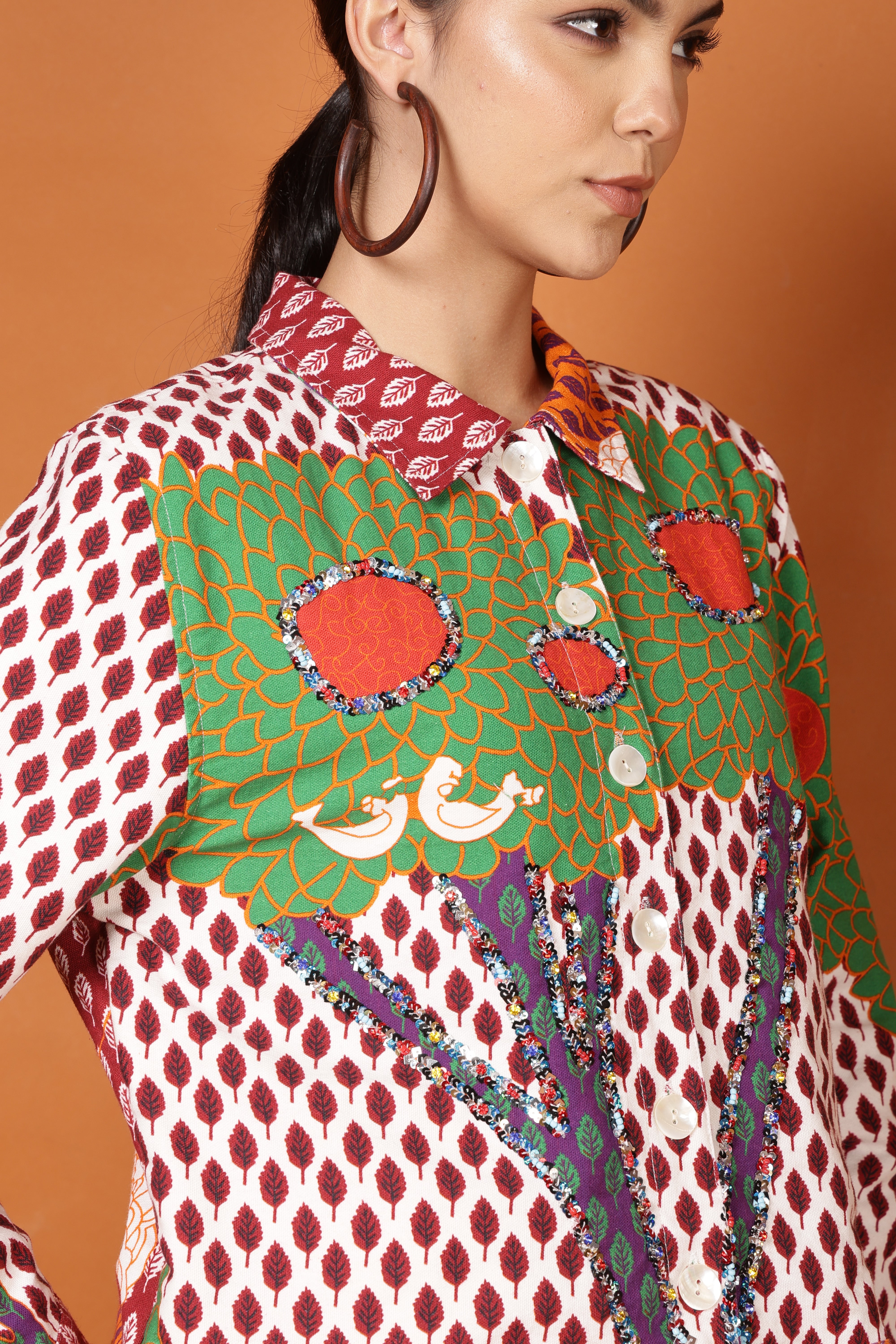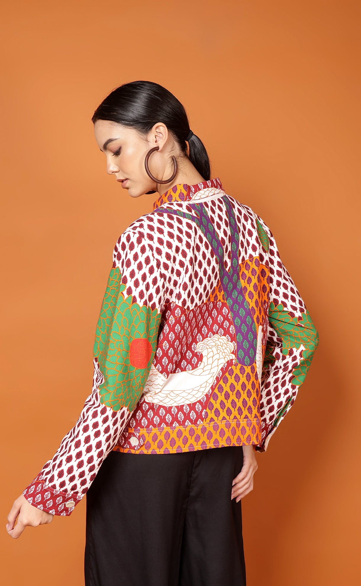 Long Sleeve Waist Length Jacket Button Cuffed Sleeve Button Through Waist Band Sequin trimmings - multi coloured