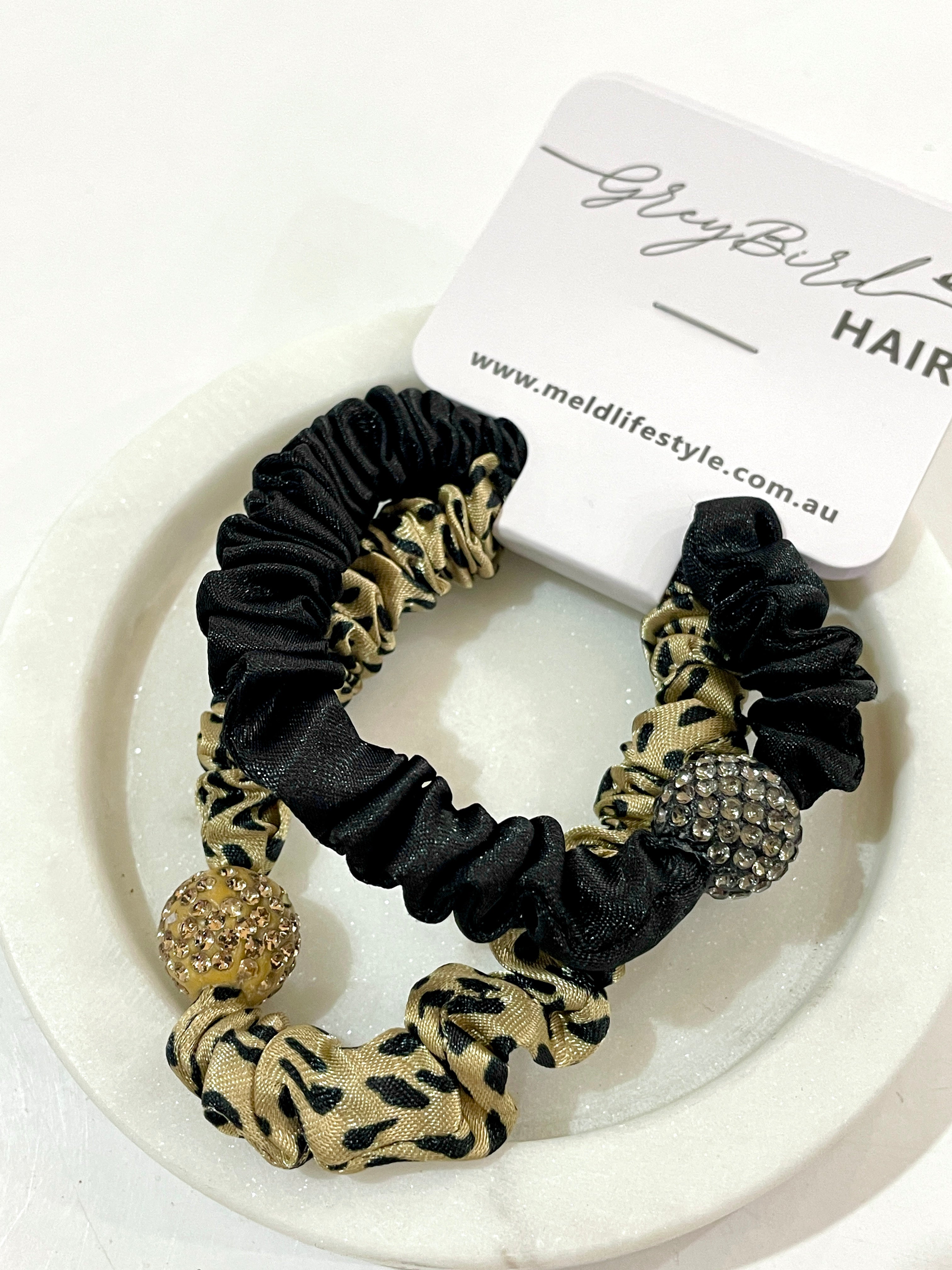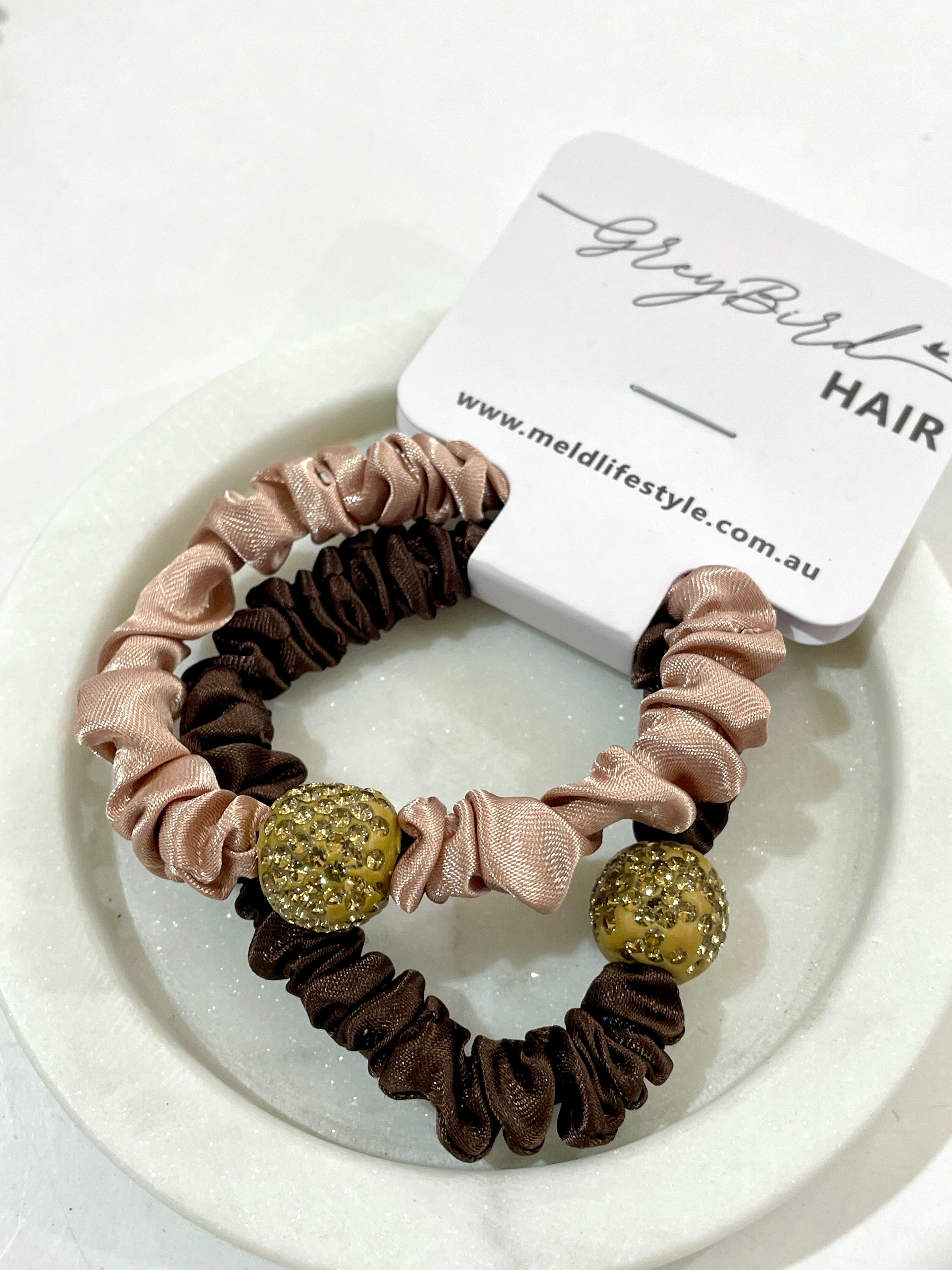 2 Pack Satin Hair Elastics Crystal adorned Bead Feature W 9mm approx
